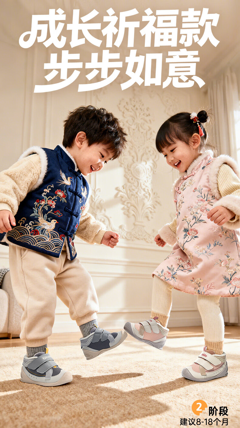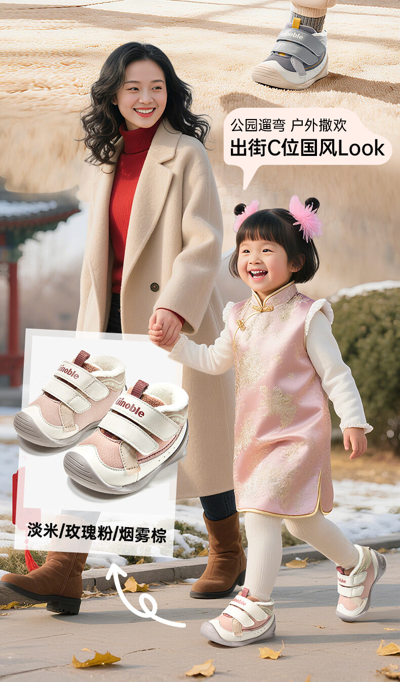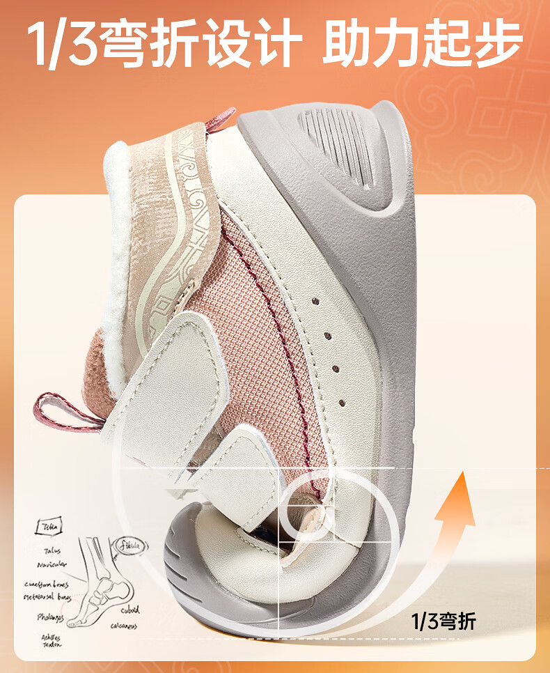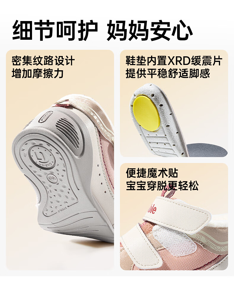 基诺浦(ginoble)机能鞋2025冬新款童鞋婴儿步前鞋宝宝鞋子GB2497淡米