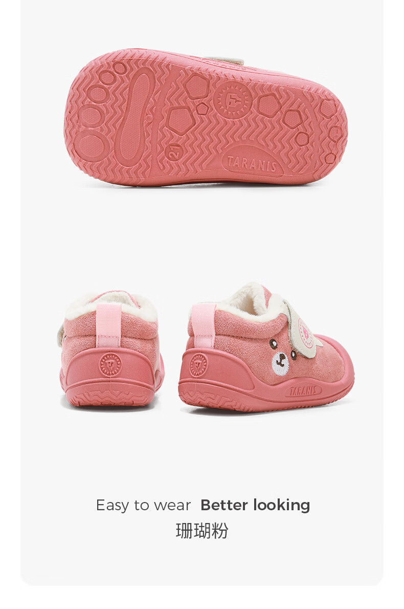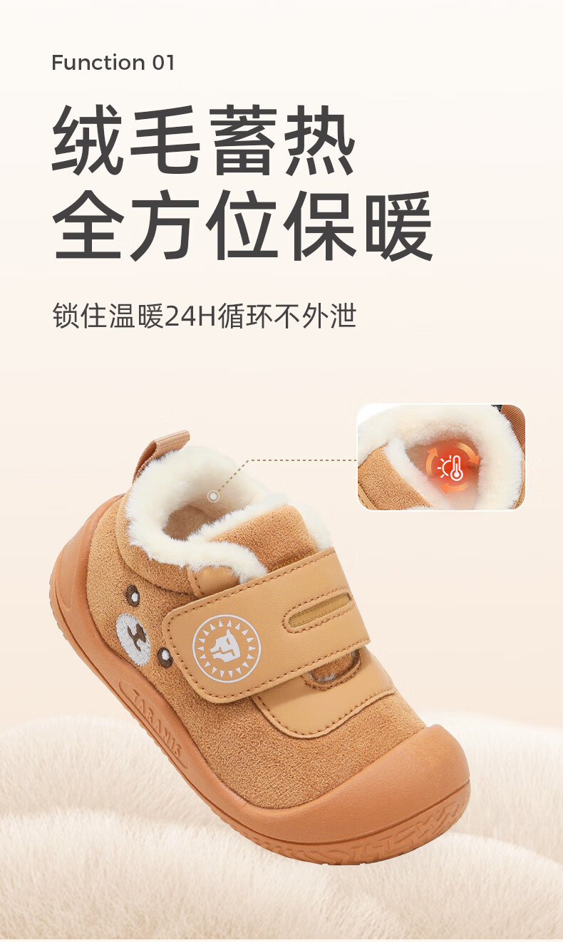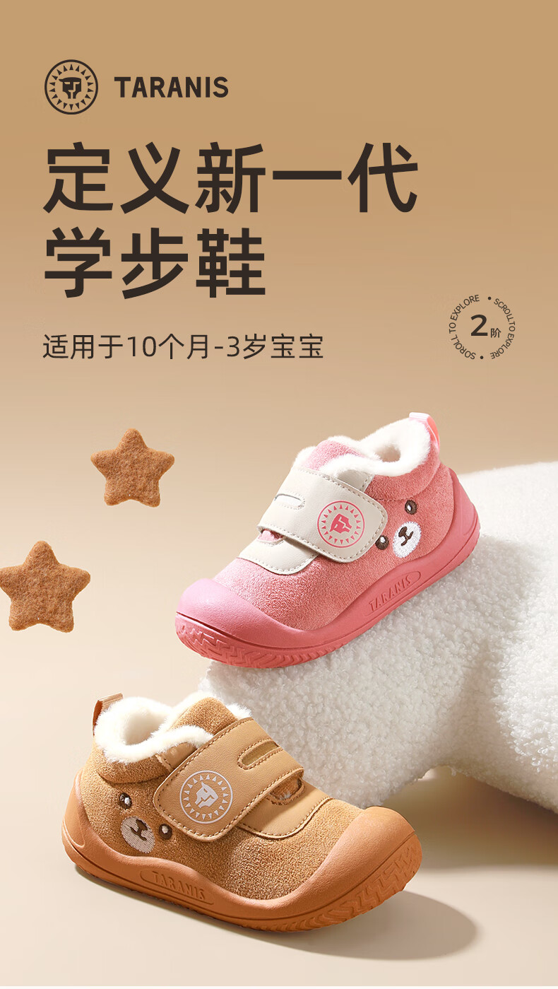 泰兰尼斯冬季婴儿学步鞋男童女宝宝加绒保暖雪地靴软底儿童棉鞋 黄色25