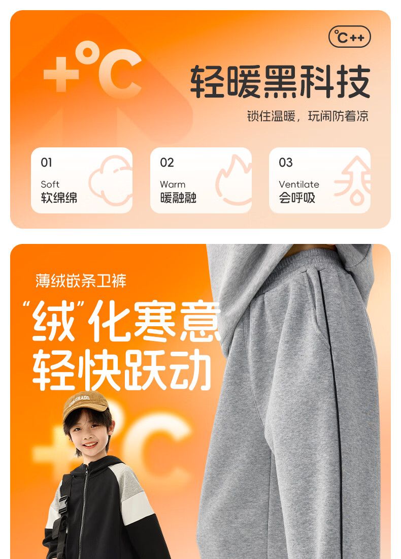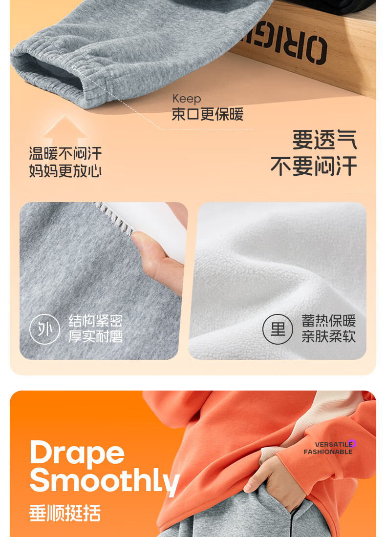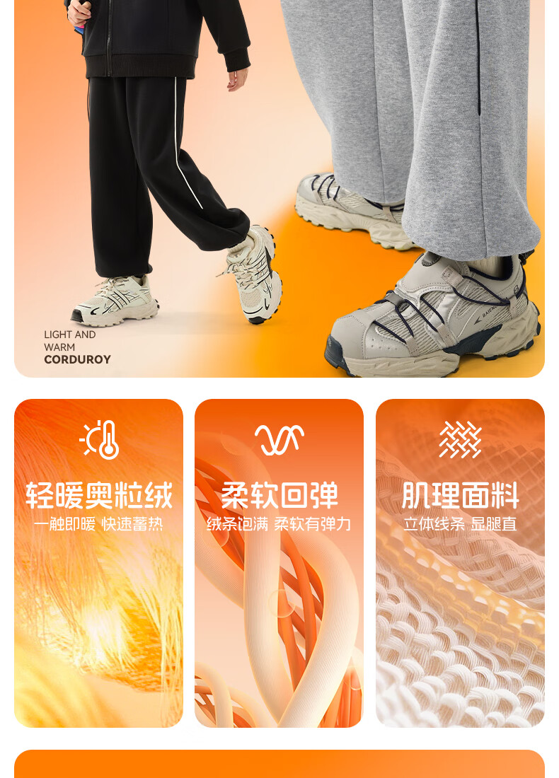 真维斯童装儿童加绒裤2025新款男童保暖卫裤秋冬运动裤女童宽松冬装长裤