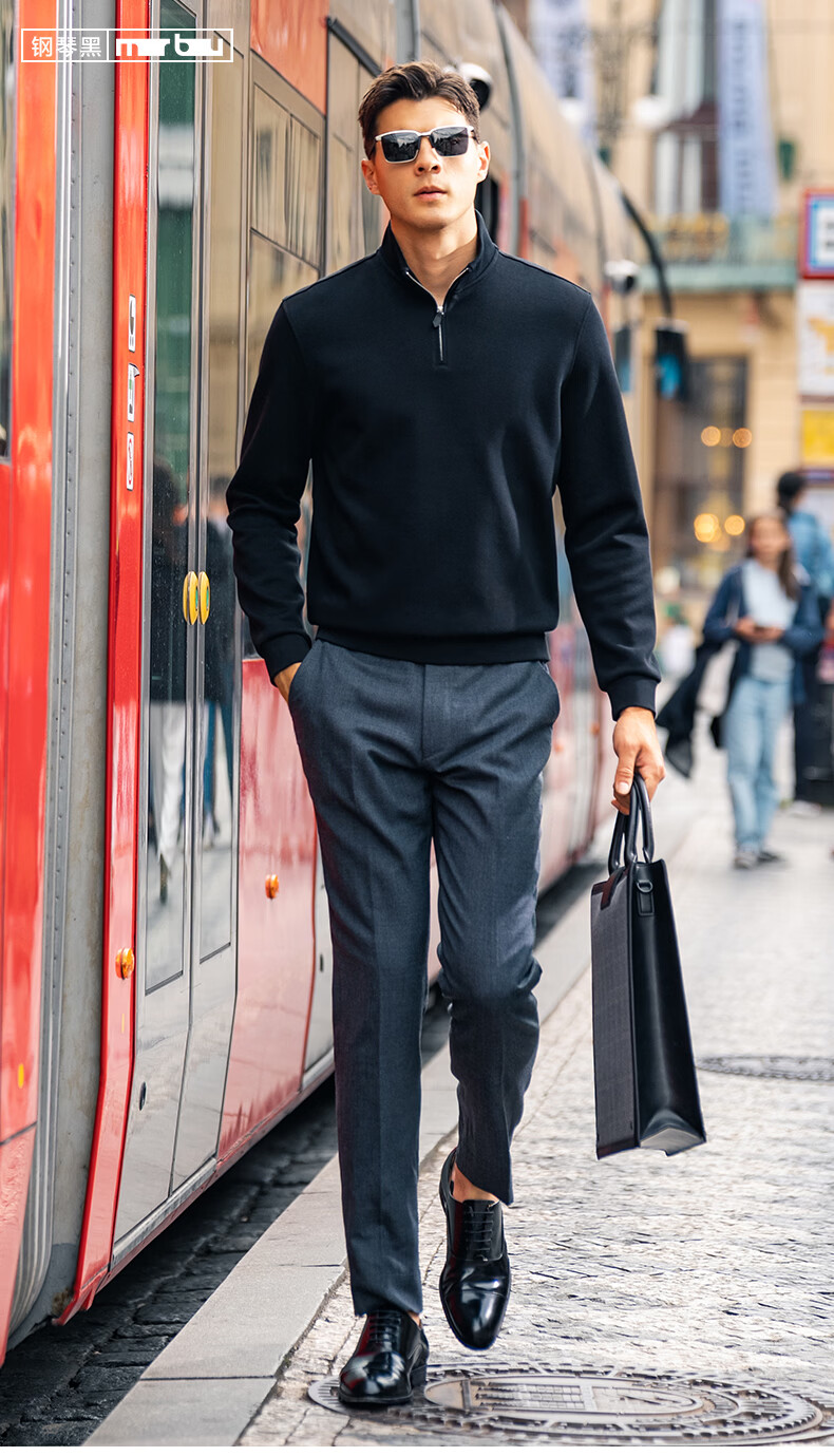 Mr. Bu half turtleneck zipper pullover thickened long-sleeved sweatshirt close-fitting and comfortable top Piano Black L (175)