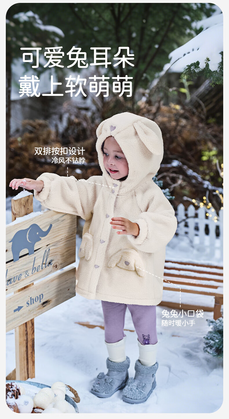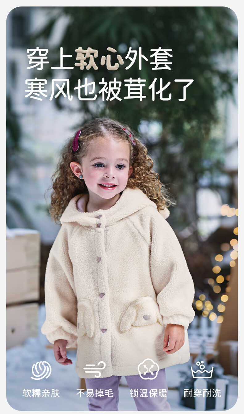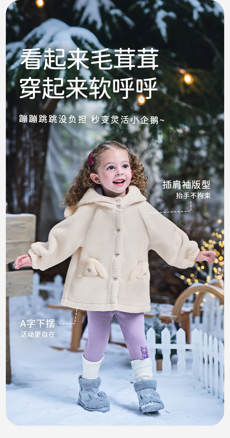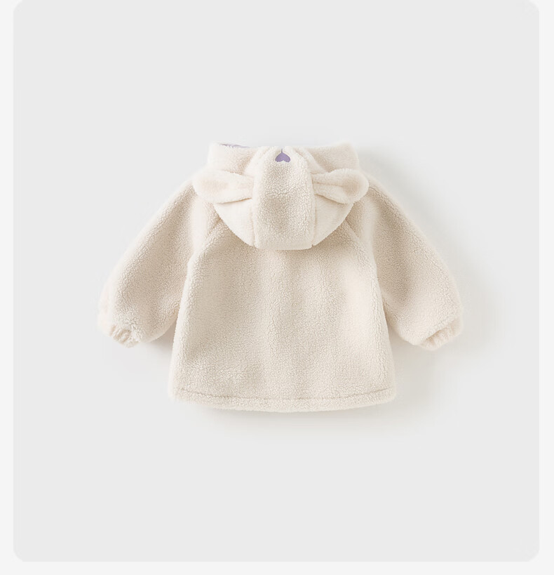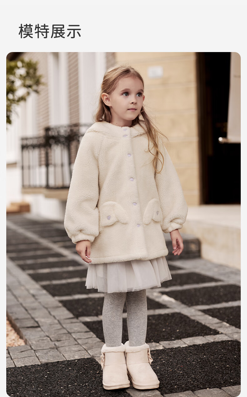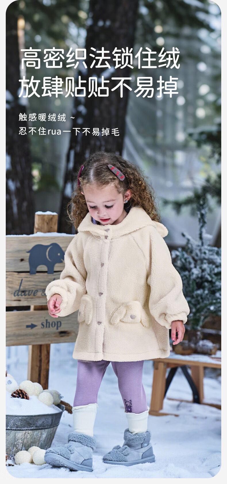 戴维贝拉秋冬女童毛绒外套宝宝连帽外衣儿童上衣童装