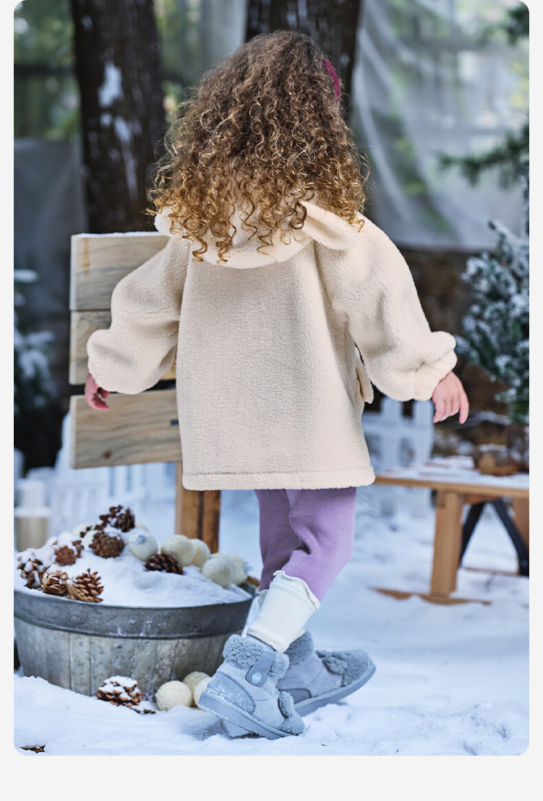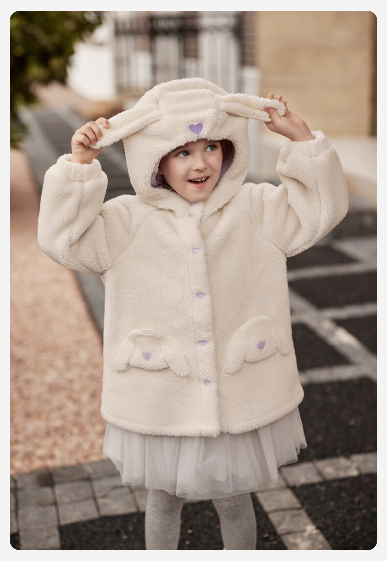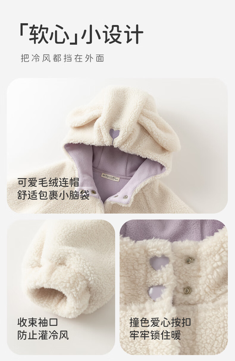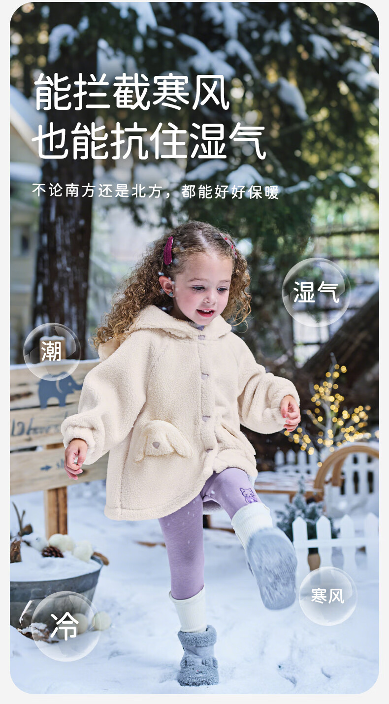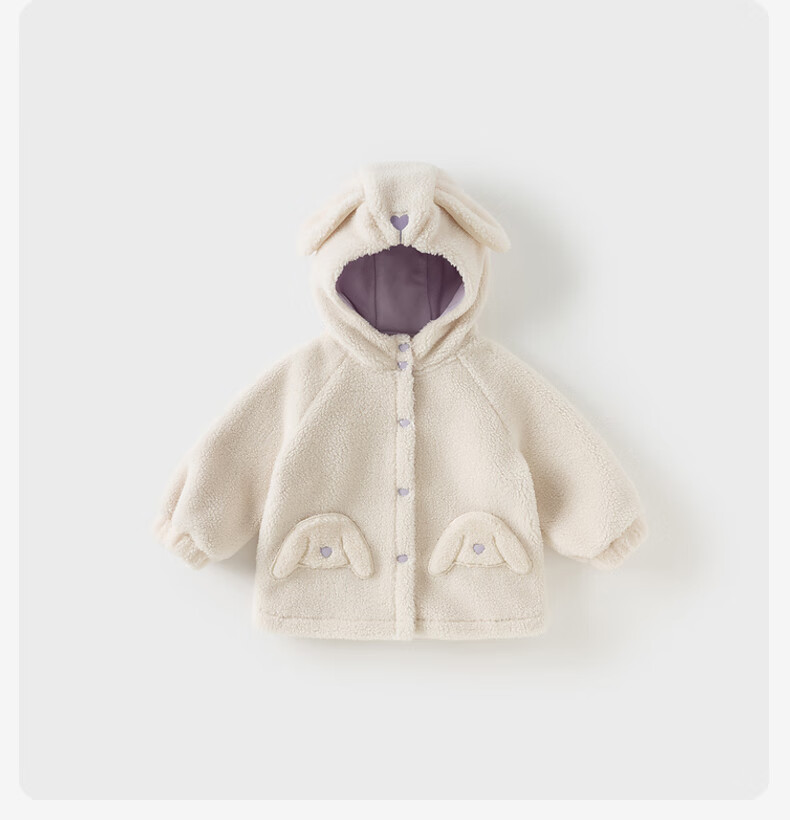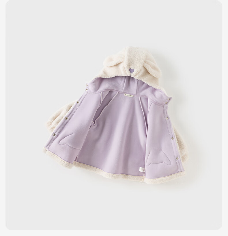 戴维贝拉秋冬女童毛绒外套宝宝连帽外衣儿童上衣童装