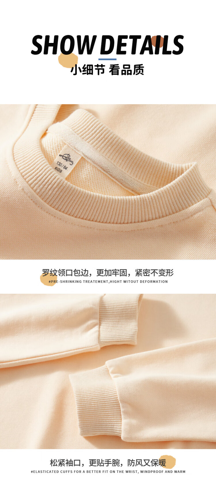 唐狮女童休闲套装秋季国风薄款卫衣中大童灯芯条直筒裤 奶油杏 160