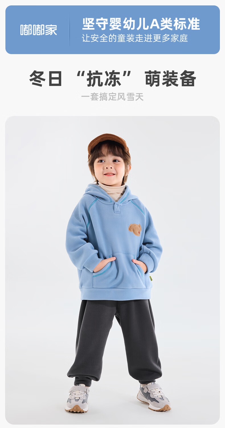 嘟嘟家宝宝套装冬季男童裤子女童可爱卫衣冬款儿童亲肤两件套冬 粉色100