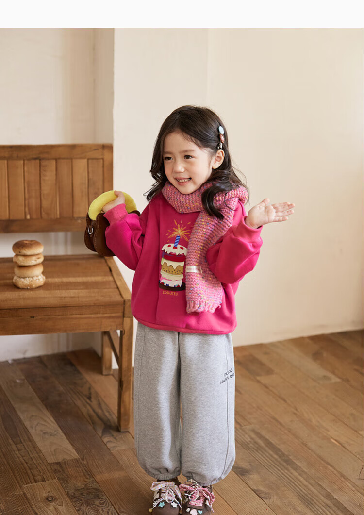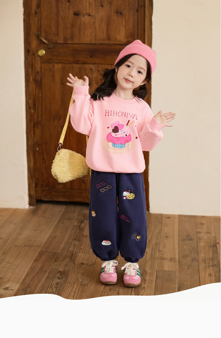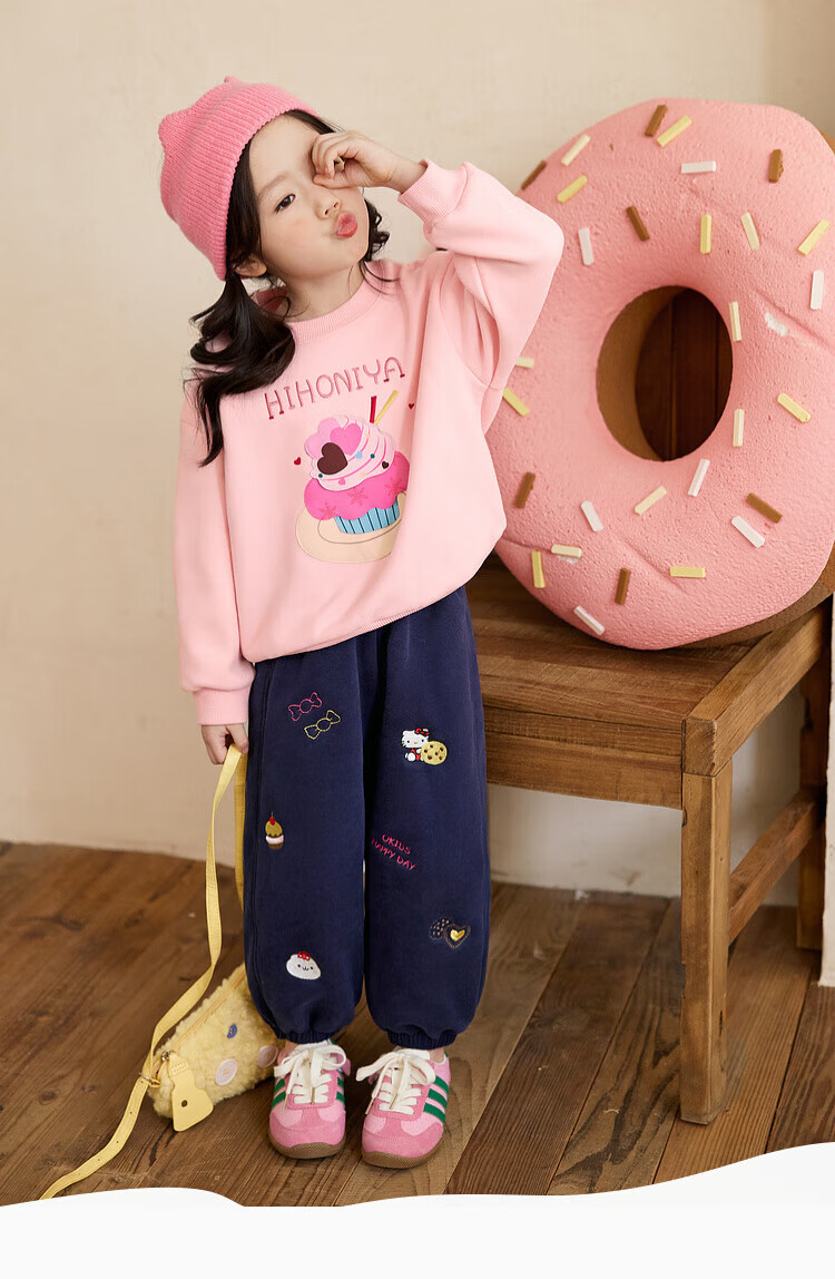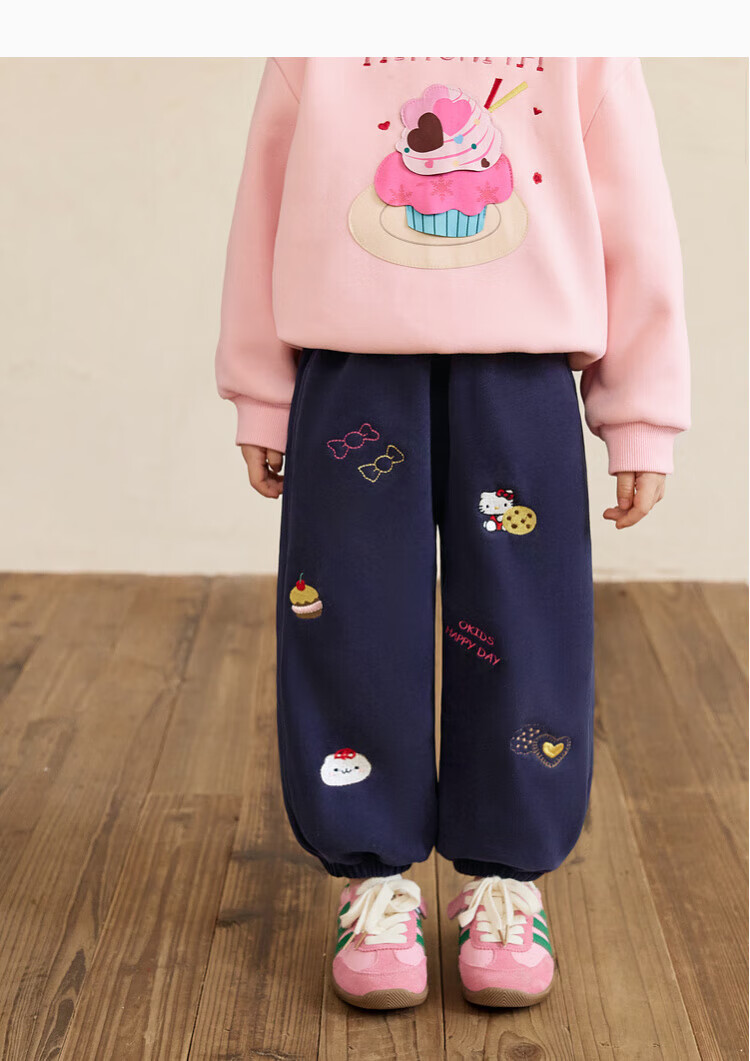 LUSON Xiao O Bao children's clothing baby velvet pants women's winter 2025 new girls embroidered kindergarten sweatpants sweatpants
