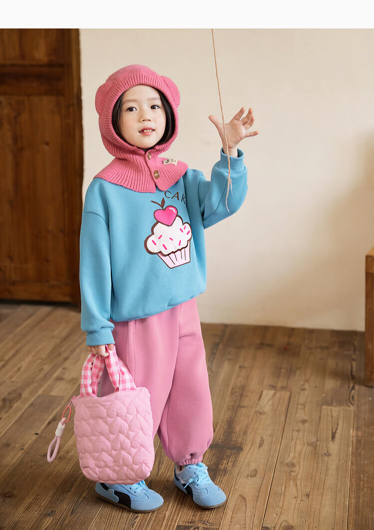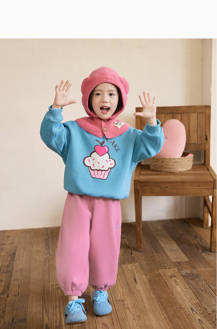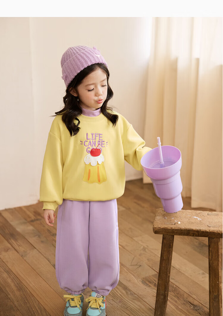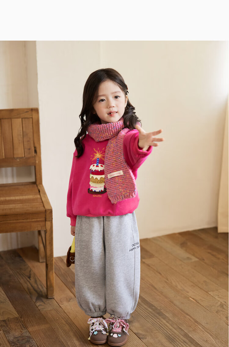 LUSON Xiao O Bao children's clothing baby velvet pants women's winter 2025 new girls embroidered kindergarten sweatpants sweatpants