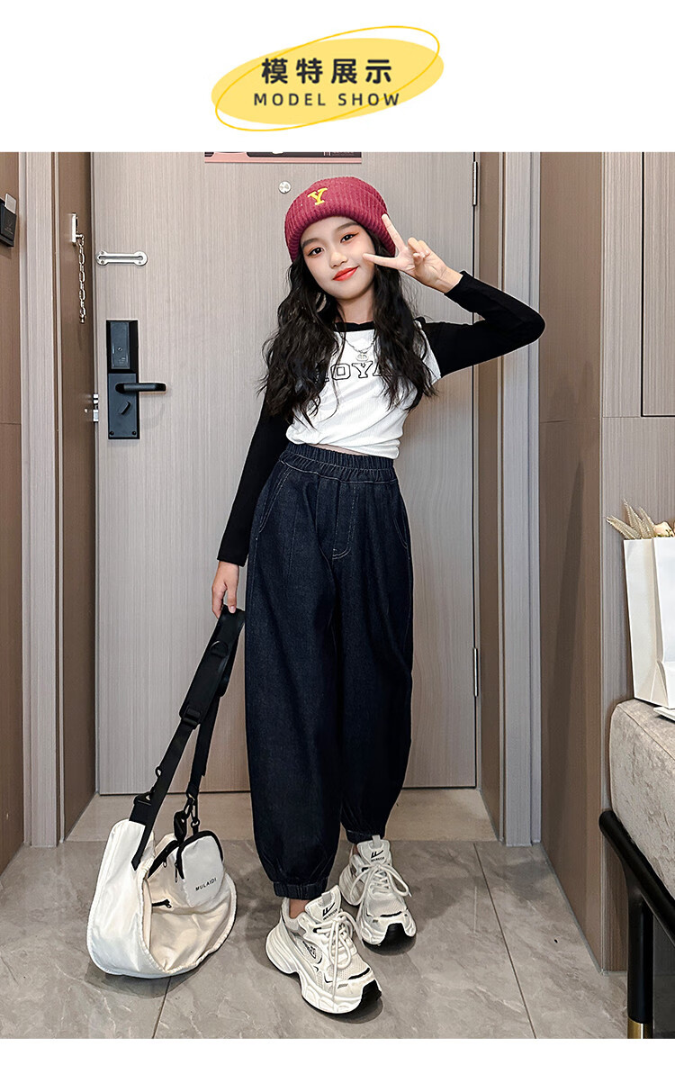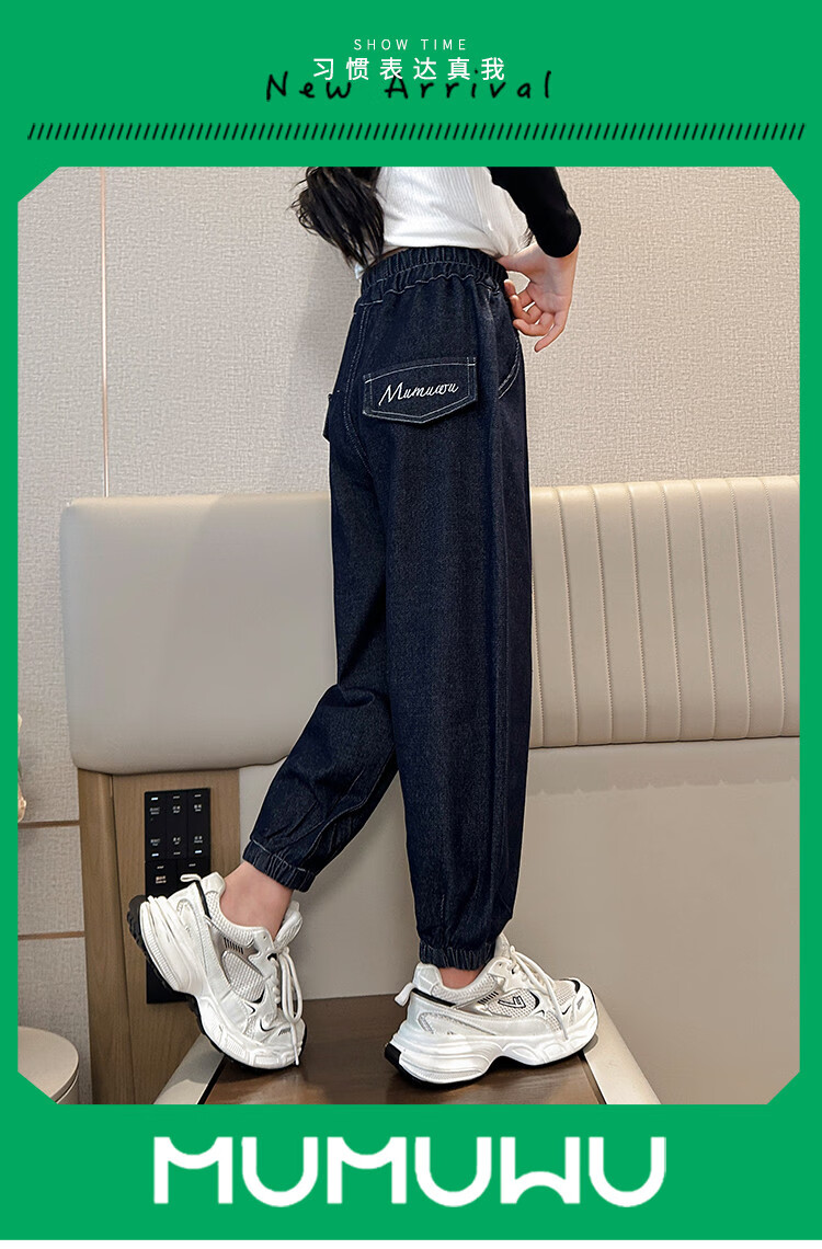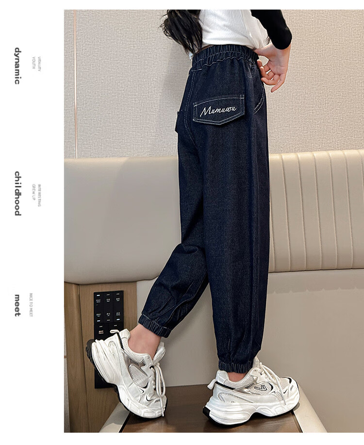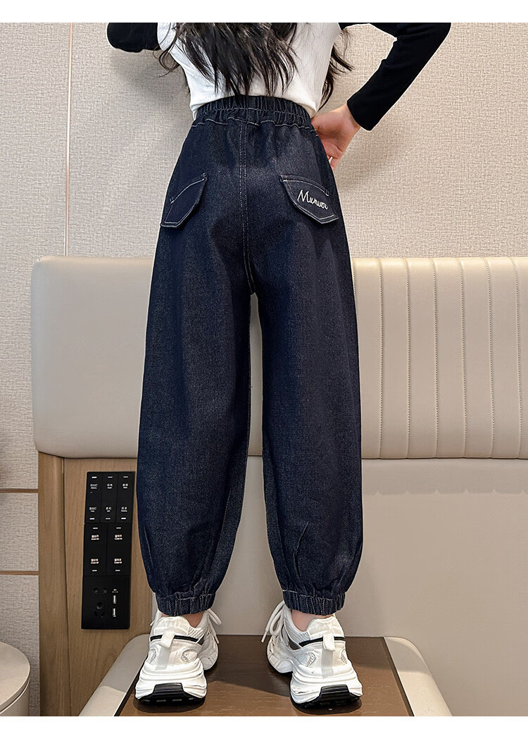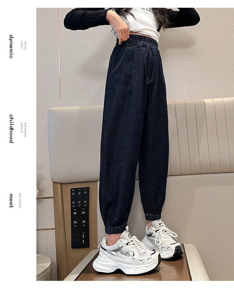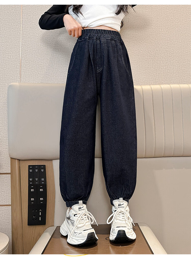 木木屋(mumuwu)女童裤子秋冬款2025儿童中大童加厚外穿百搭牛仔裤加绒束脚裤