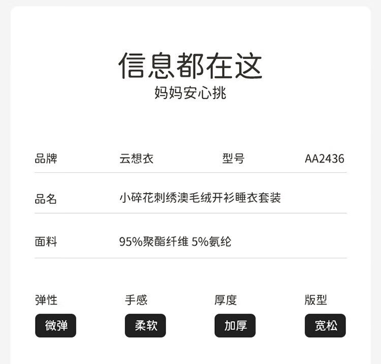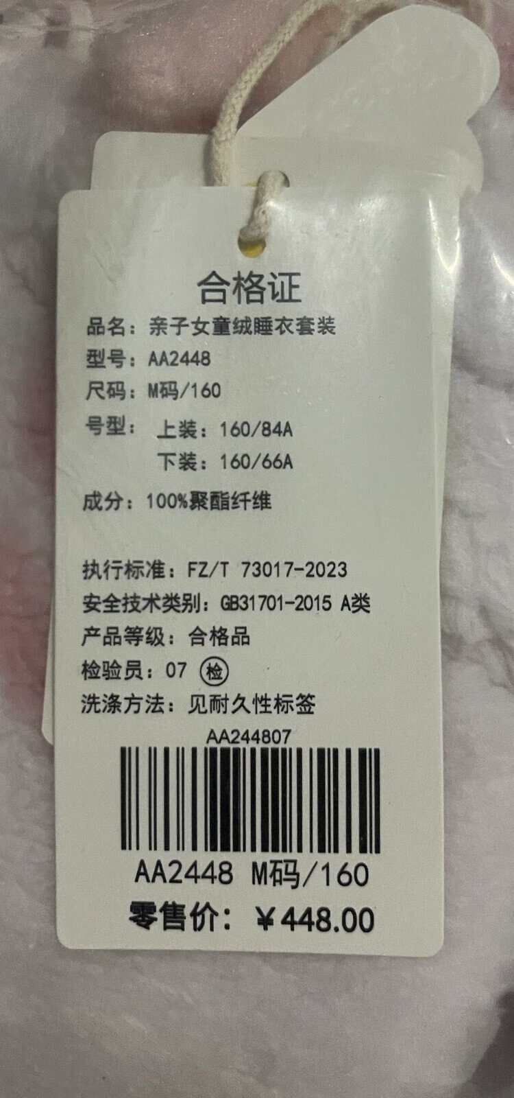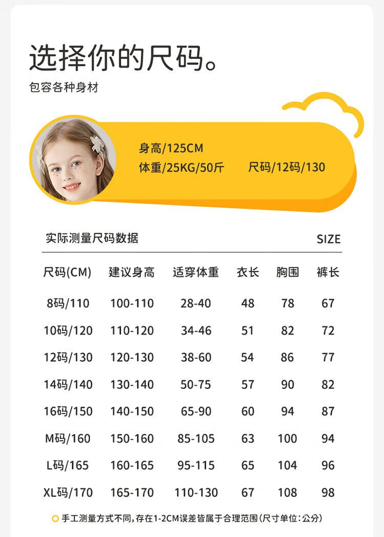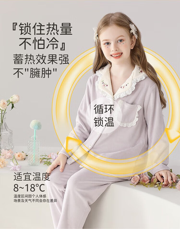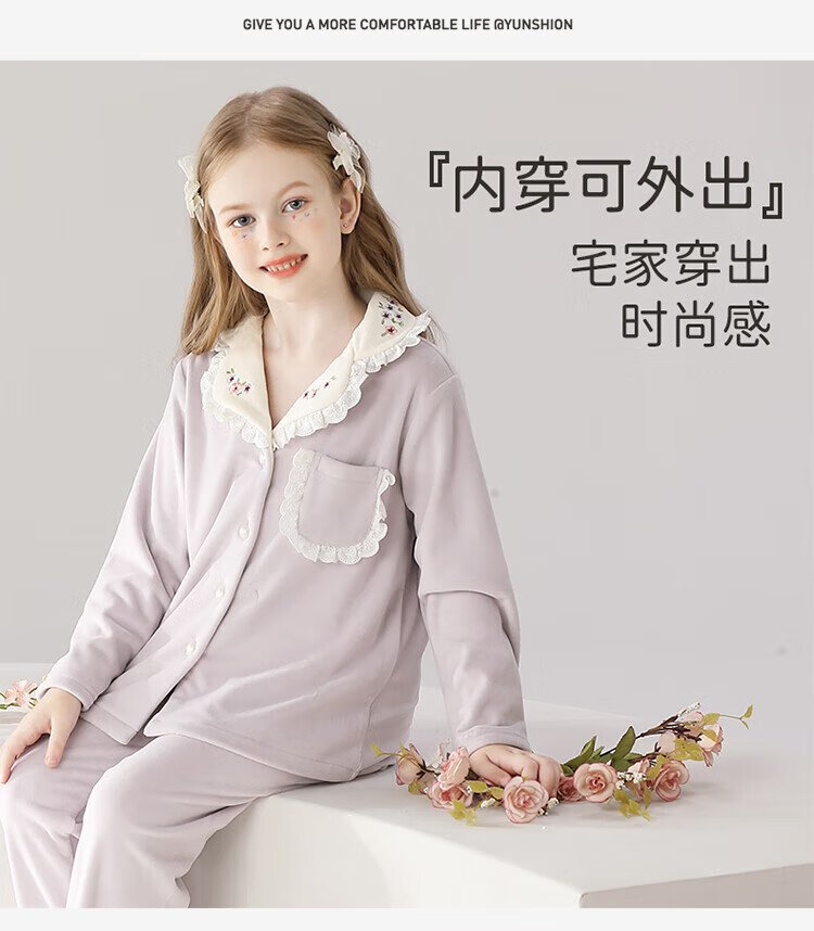 云想衣儿童睡衣女童睡衣秋冬季保暖A类防静电小碎花刺绣澳毛绒睡衣16码