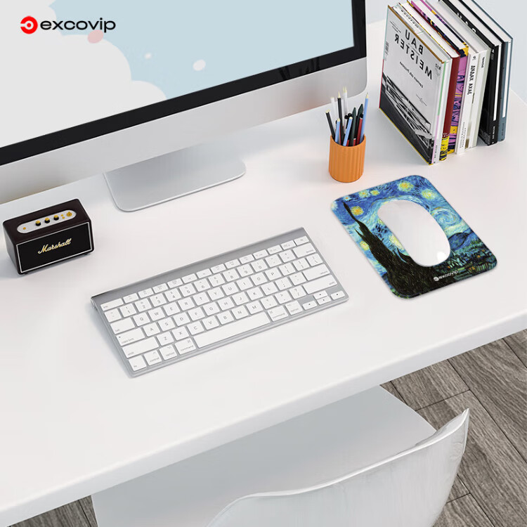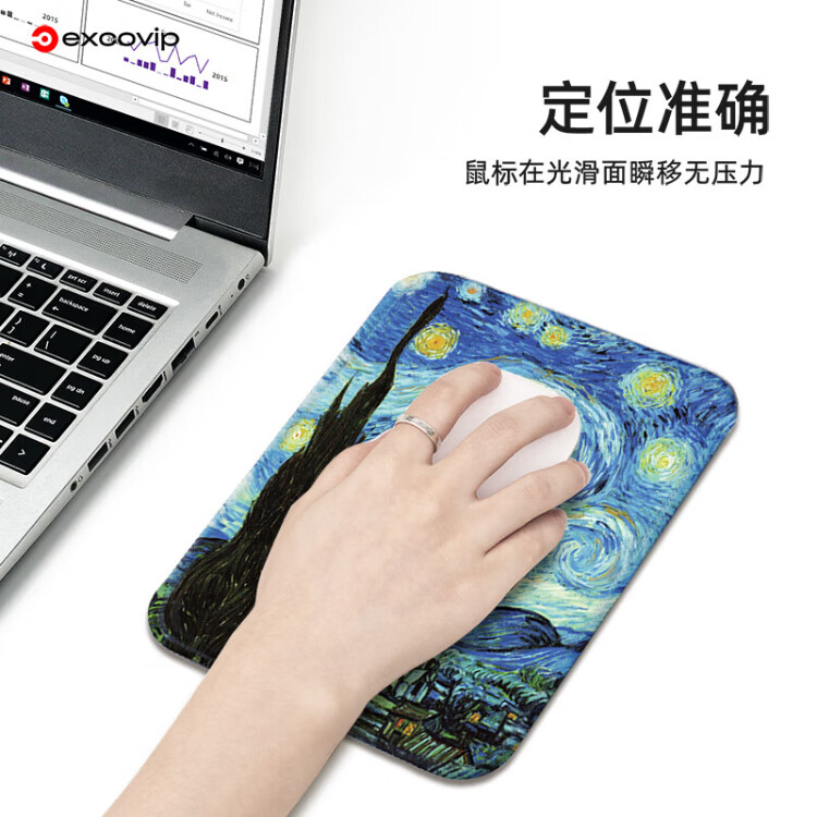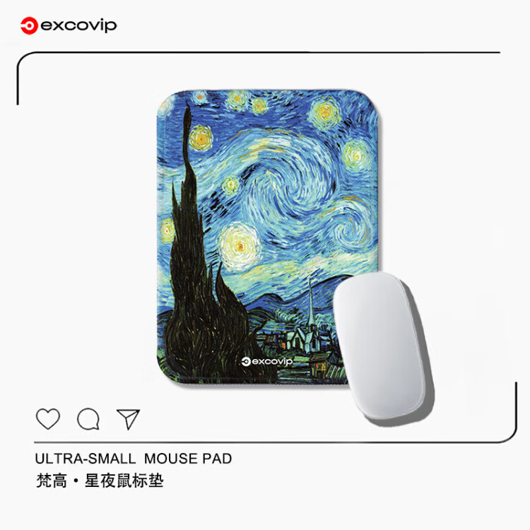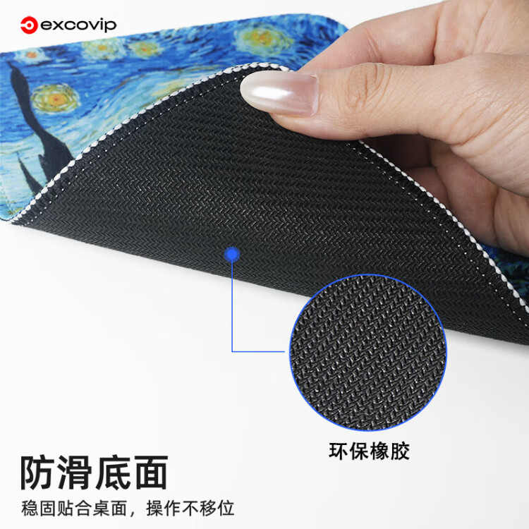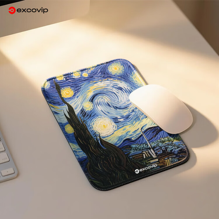 宜适酷(EXCO)梵高星空鼠标垫小号方形 包边电脑办公携带桌垫电竞鼠标托键盘书桌垫可水洗0578