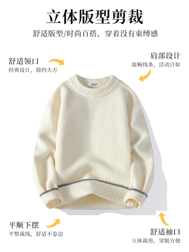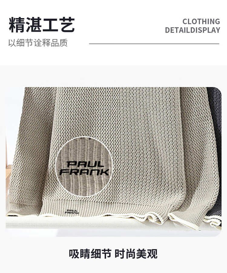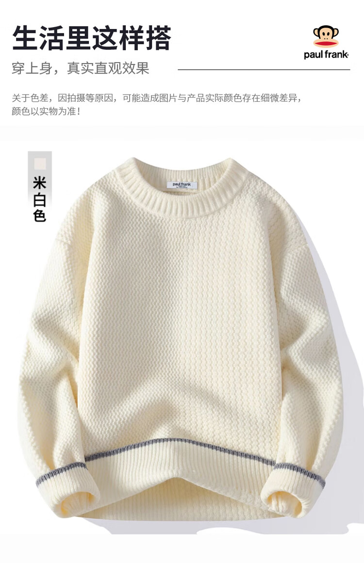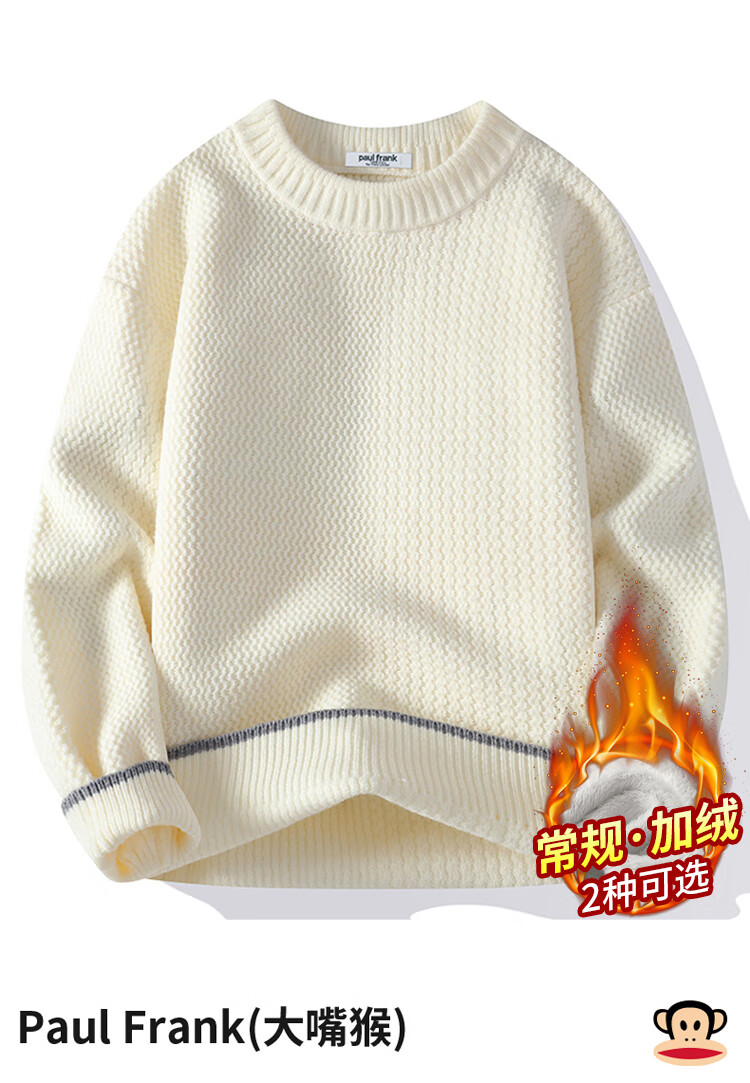 Big mouth monkey (paul frank) sweater men's autumn and winter round neck warm sweater men's bottoming shirt casual top men's off-white XL