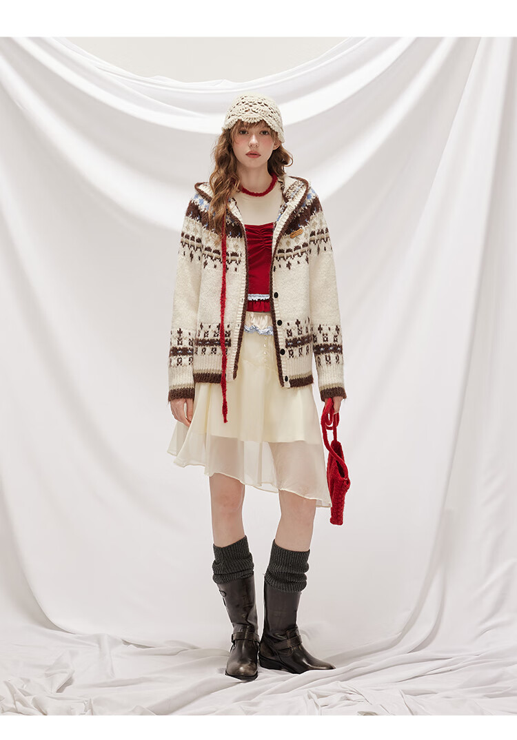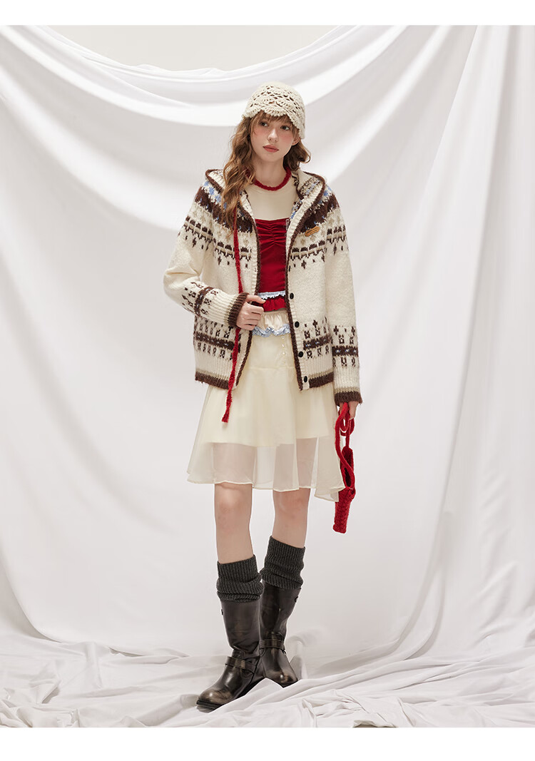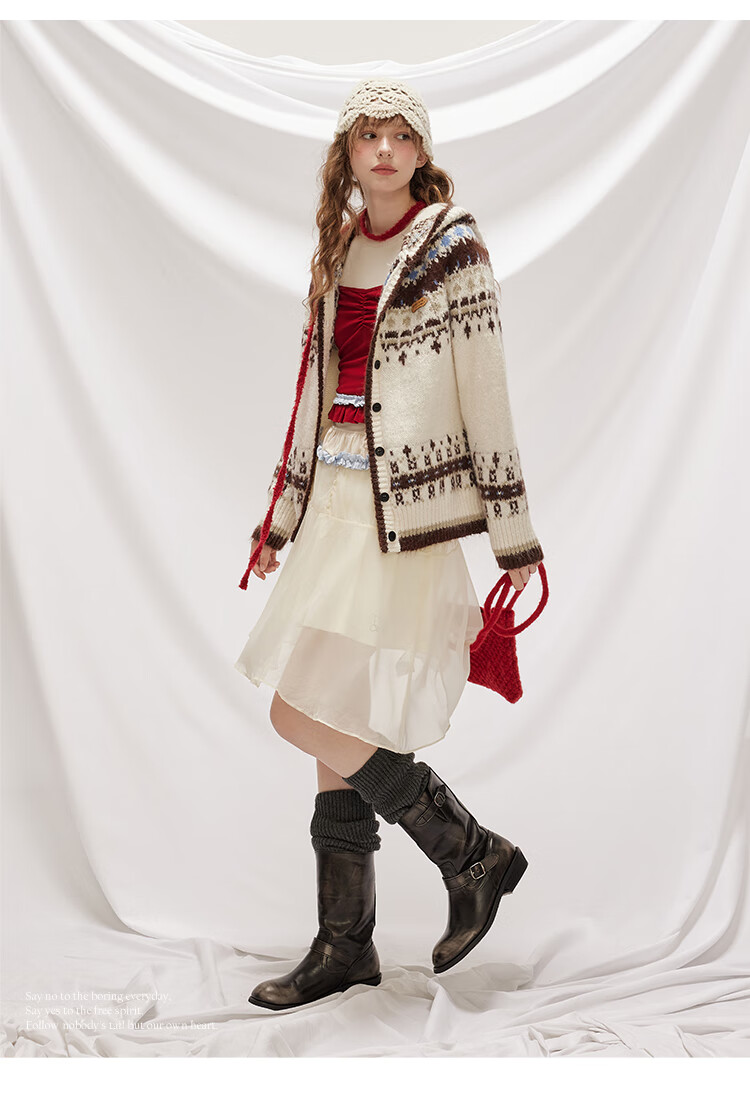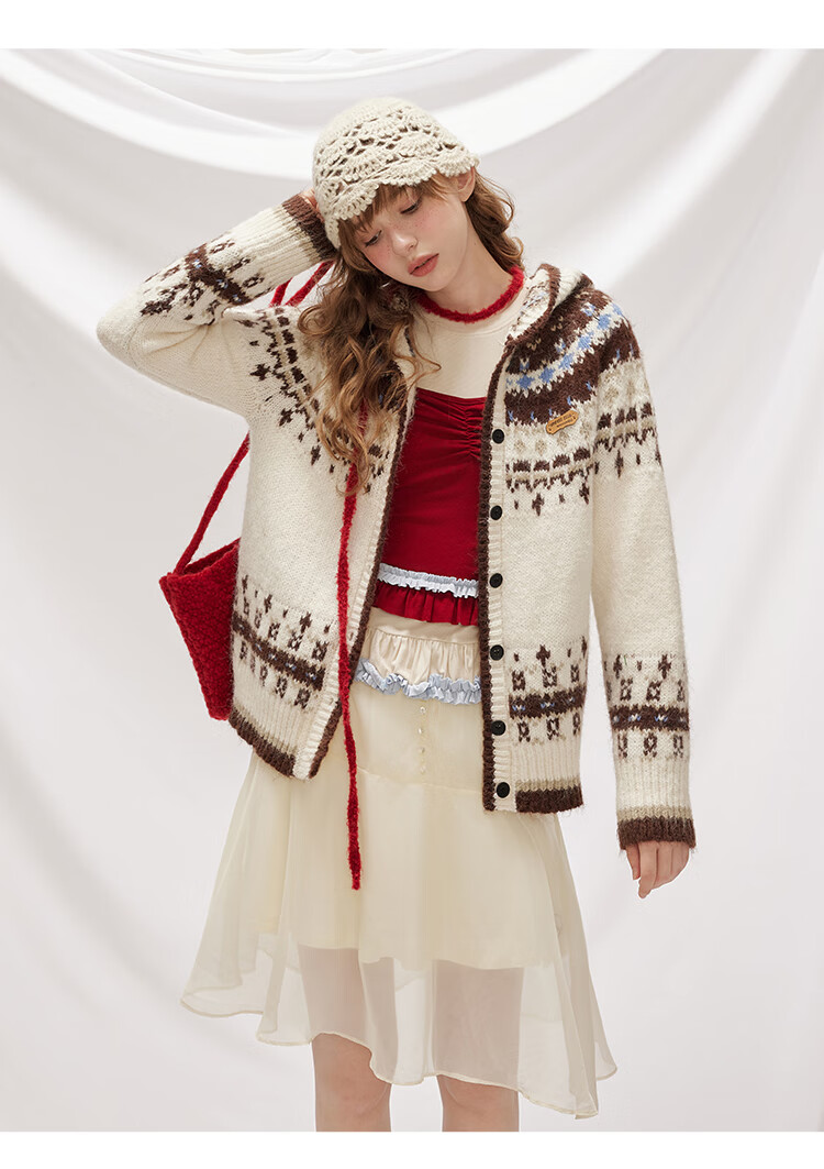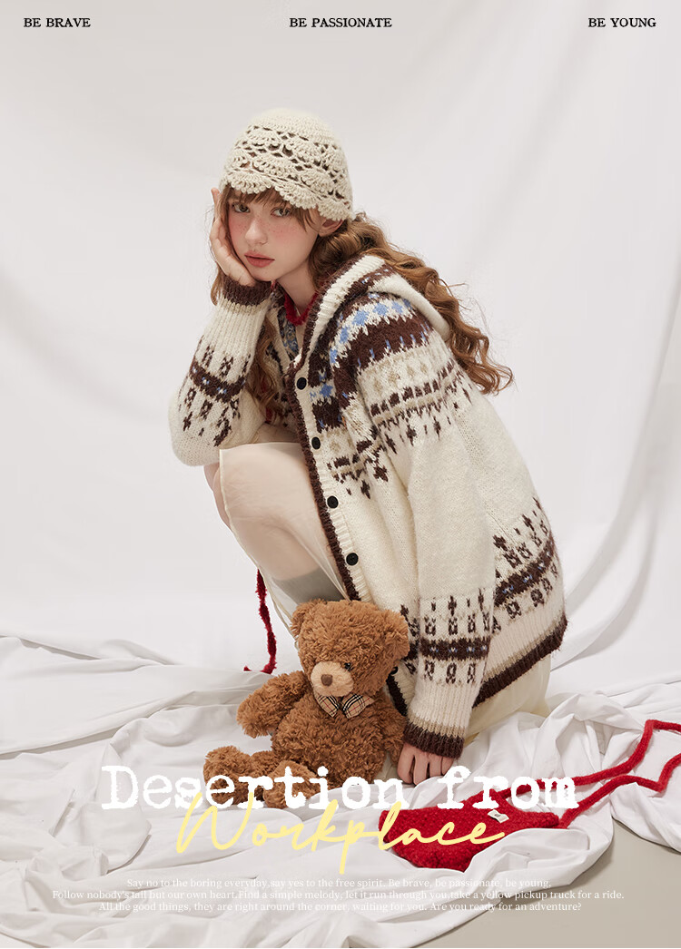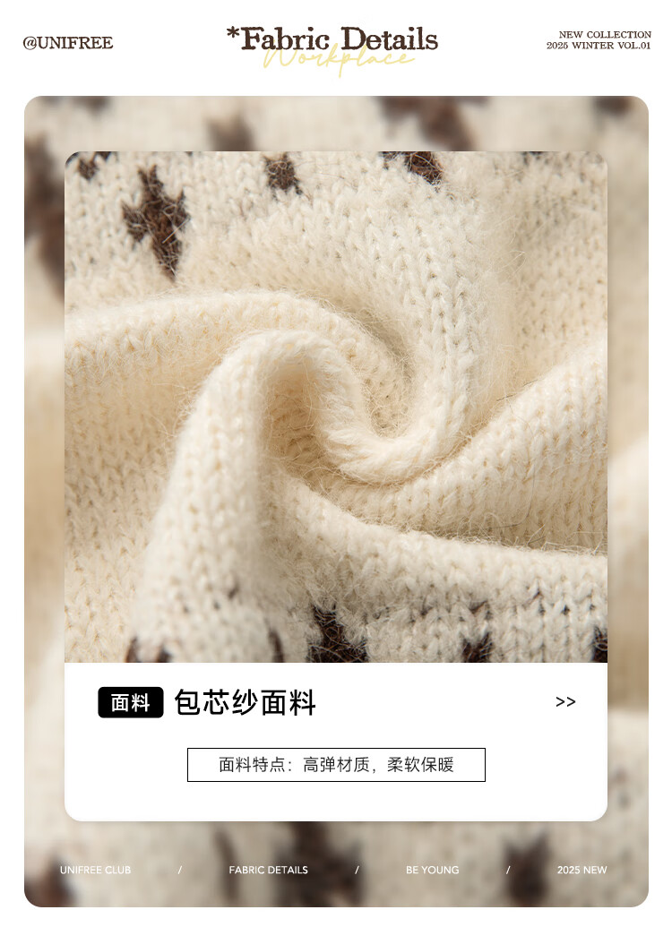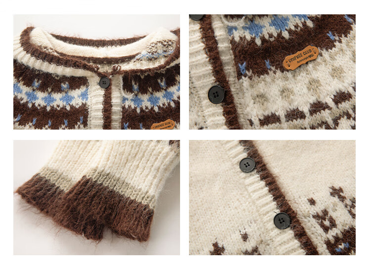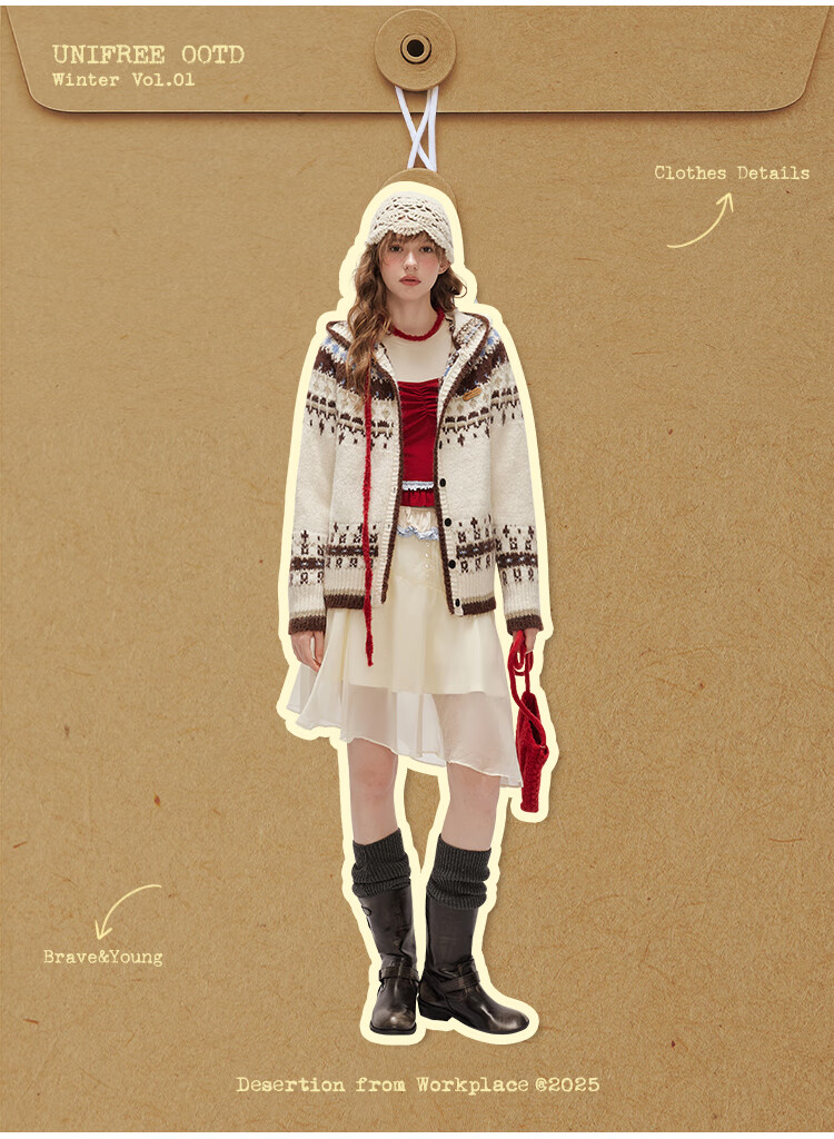 UNIFREE费尔岛毛针织衫女秋季新款柔软连帽宽松百搭修身开衫 杏色 均码