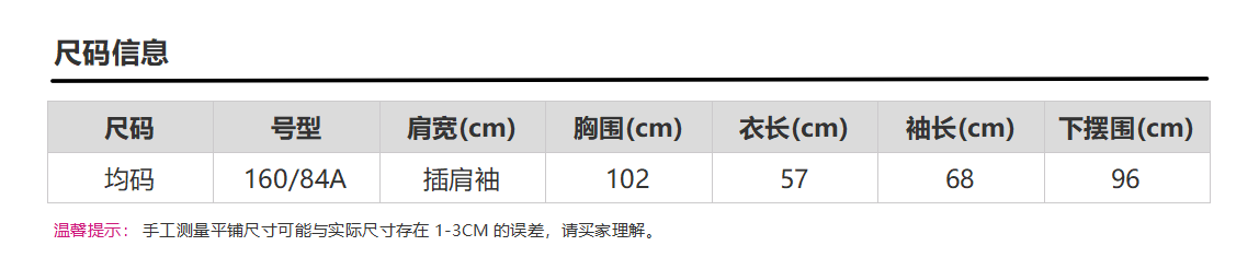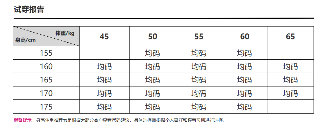 China (cm) 160-165/84-86 165-170 / 88-90 167-172 / 92-96 168-173 / 98-102 170-176 / 106-110