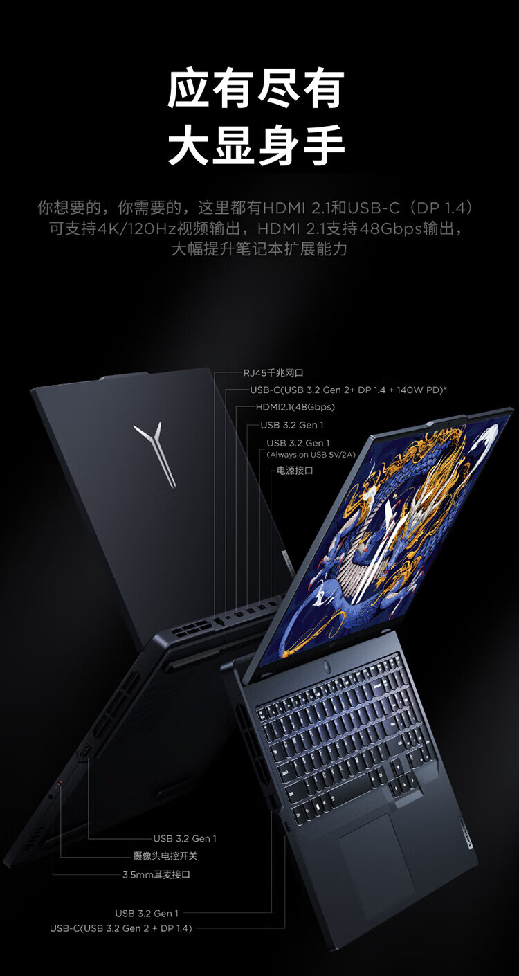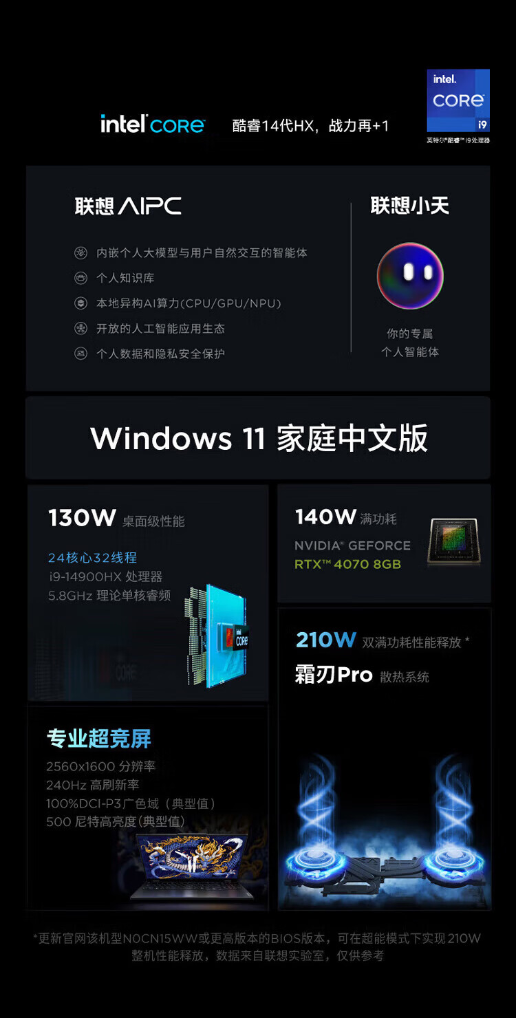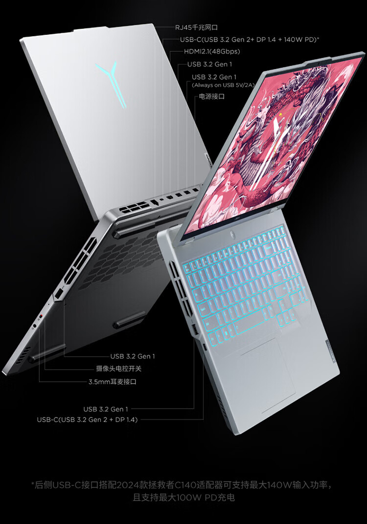 Lenovo Rescuer Y9000P 2024 Play Black Myth Wukong E-Sports Gaming Laptop Full Blood Version RTX4070 14th Generation 24-Core Core i9-14900HX 32G 1TB Solid State Titanium Crystal Gray AI Yuanqi Edition Standard 16-inch 2.5K Ultra HD 240Hz Professional E-Sports Screen