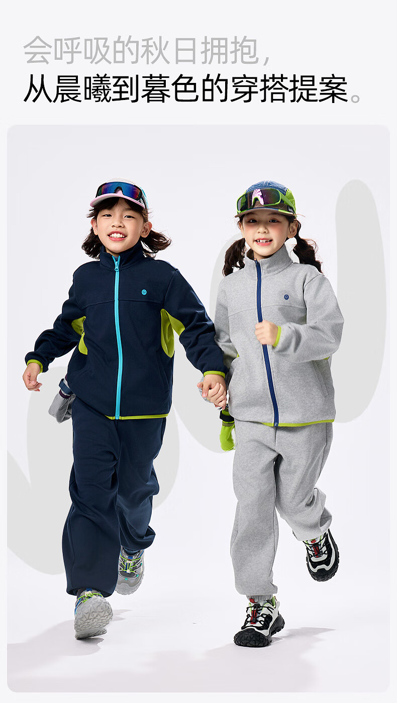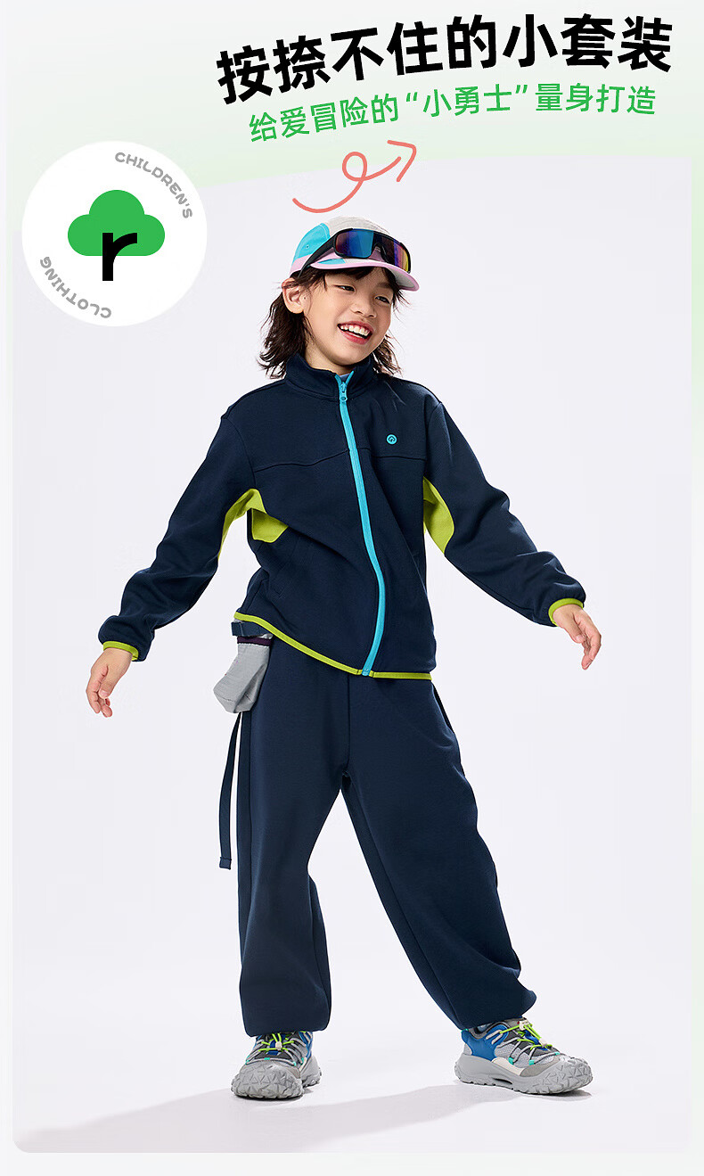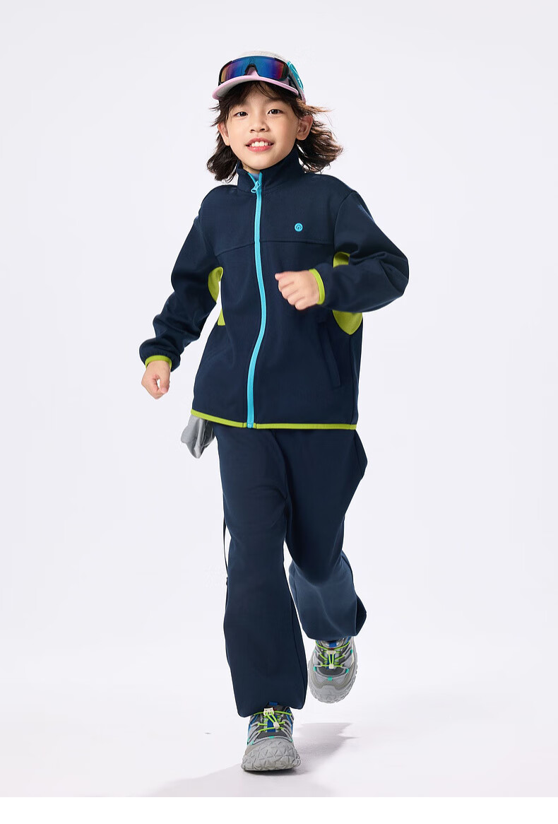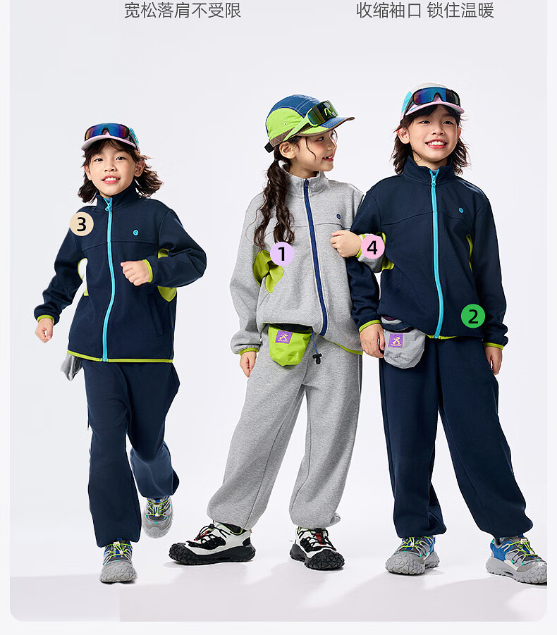 EBAER童装儿童套装秋冬男女童运动两件套开衫外套裤子 子夜蓝加绒 110