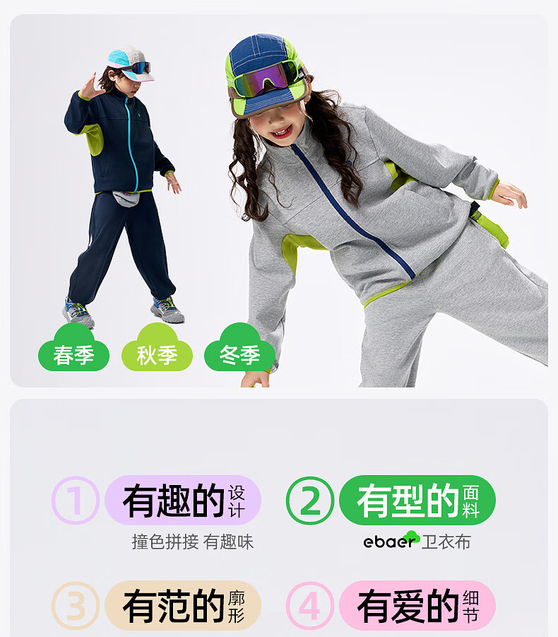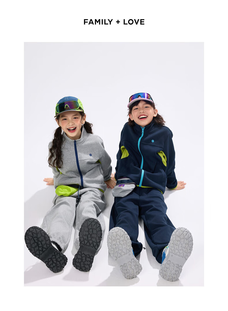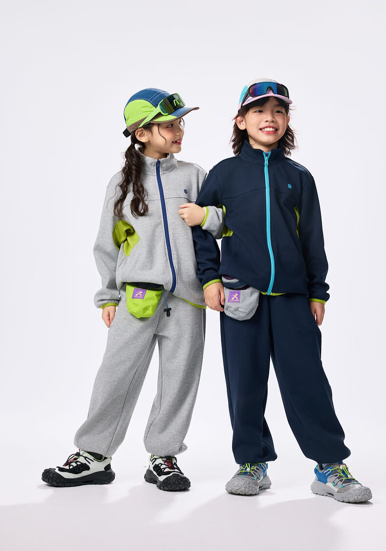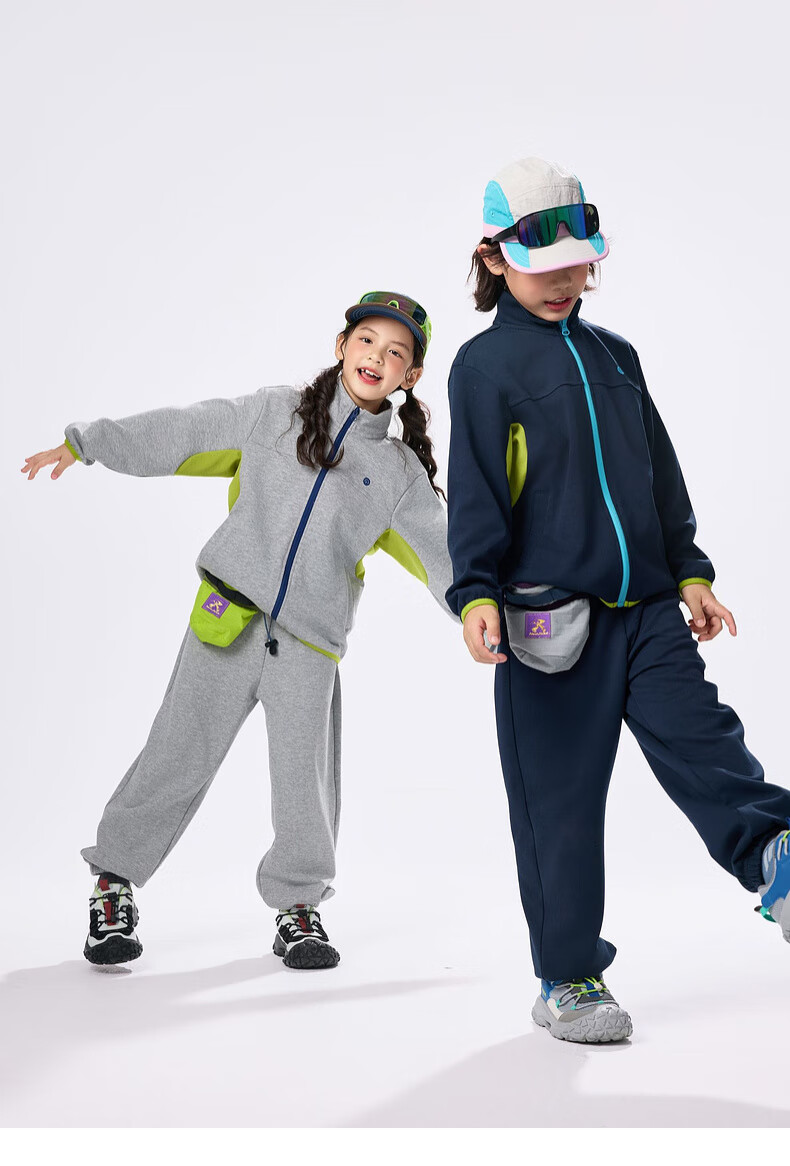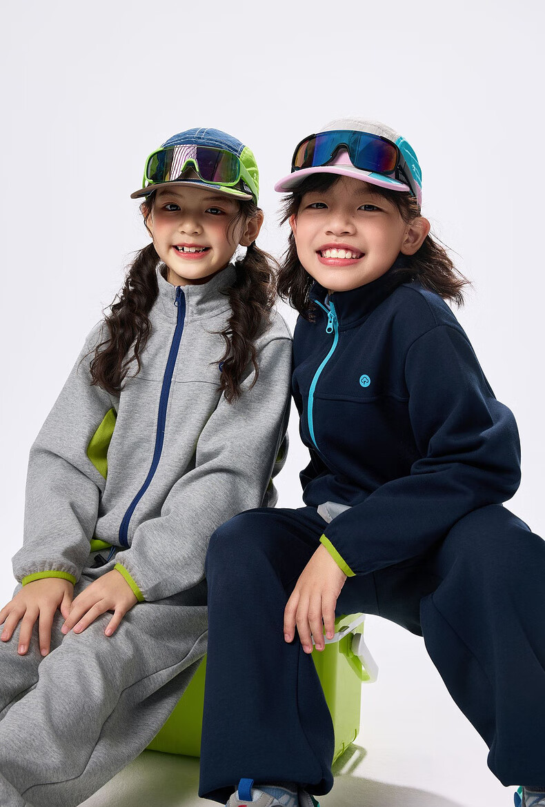 EBAER童装儿童套装秋冬男女童运动两件套开衫外套裤子 子夜蓝加绒 110