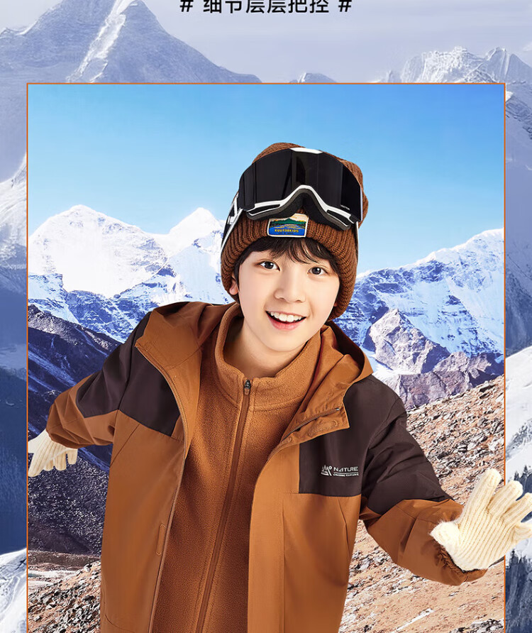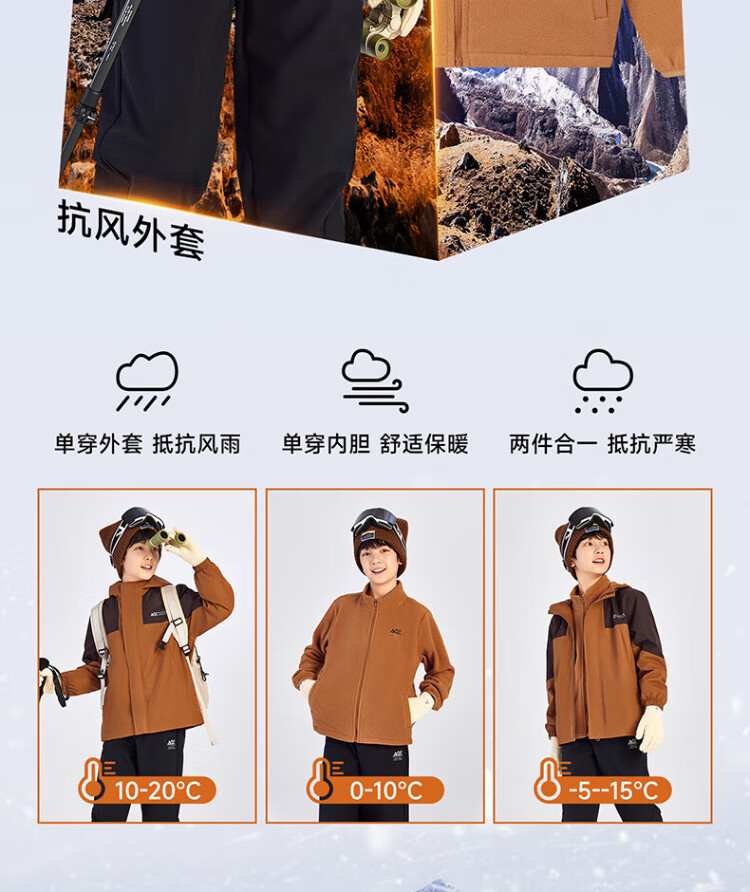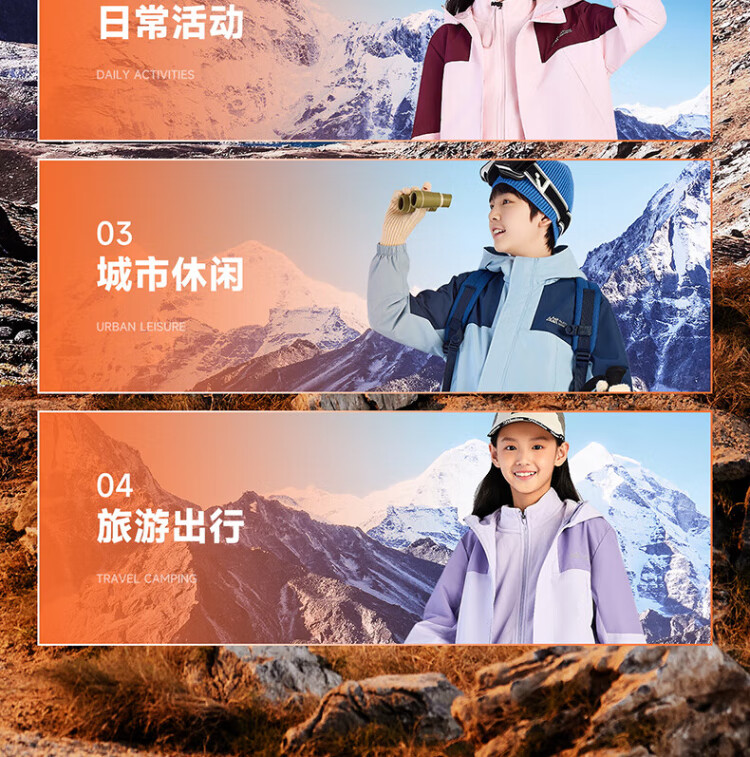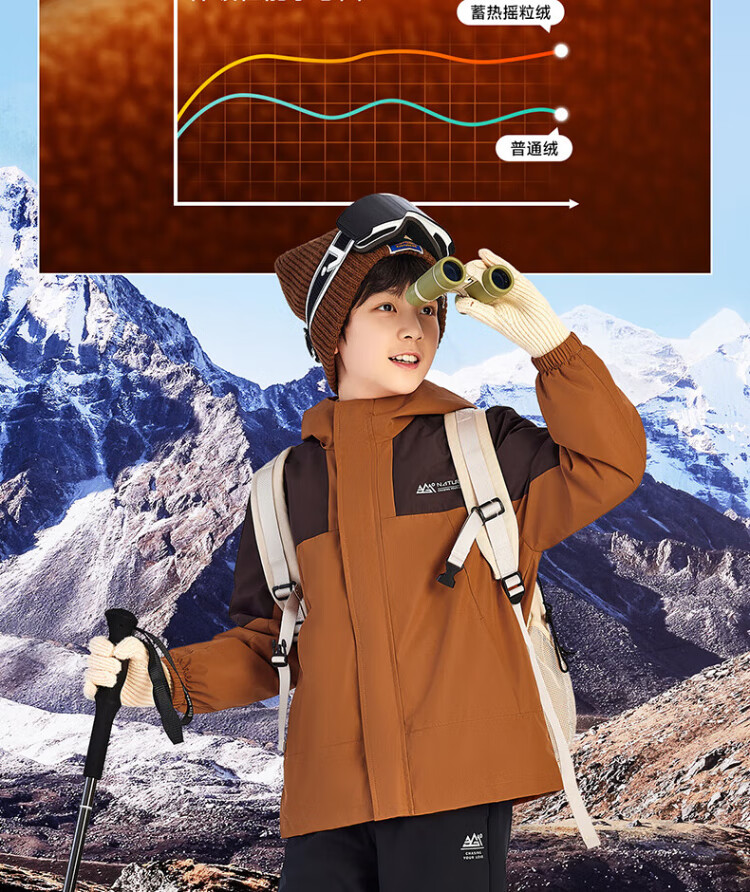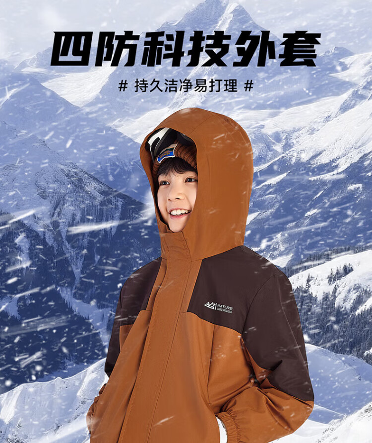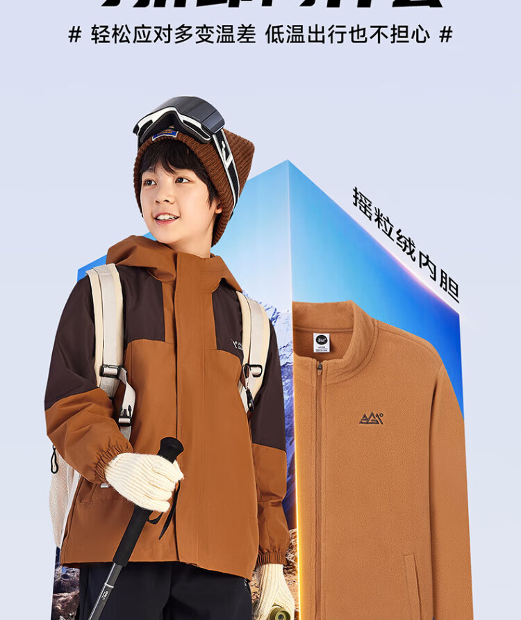 361°儿童外套2025冬男女中大童四防保暖摇粒绒上衣两件套 橙150