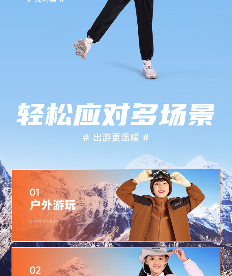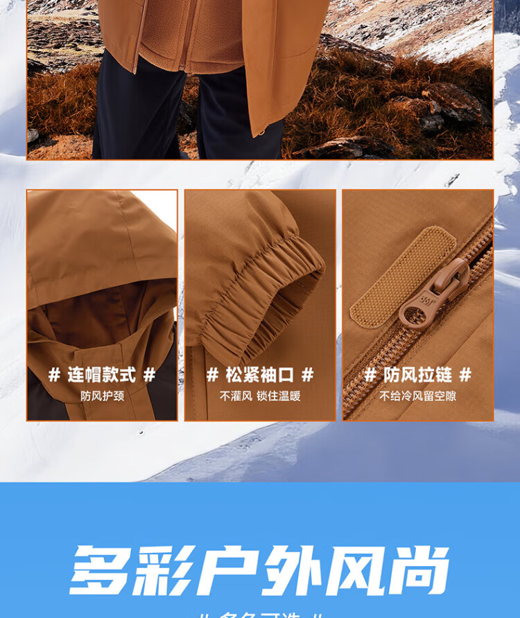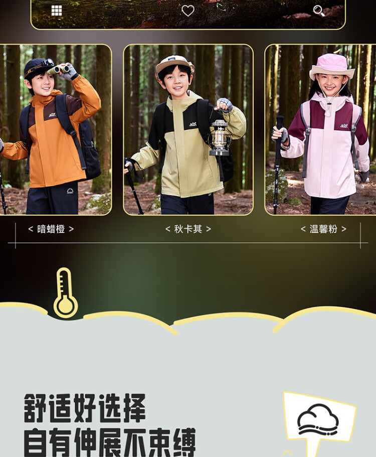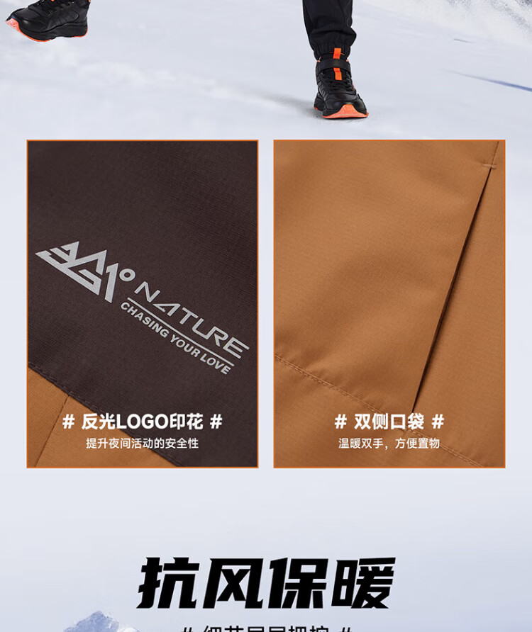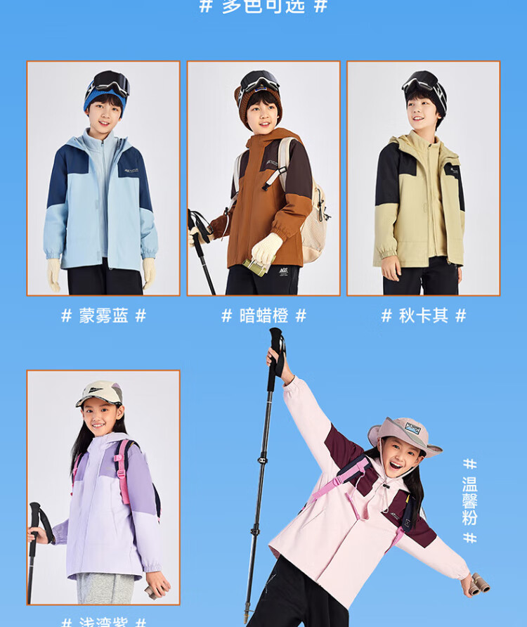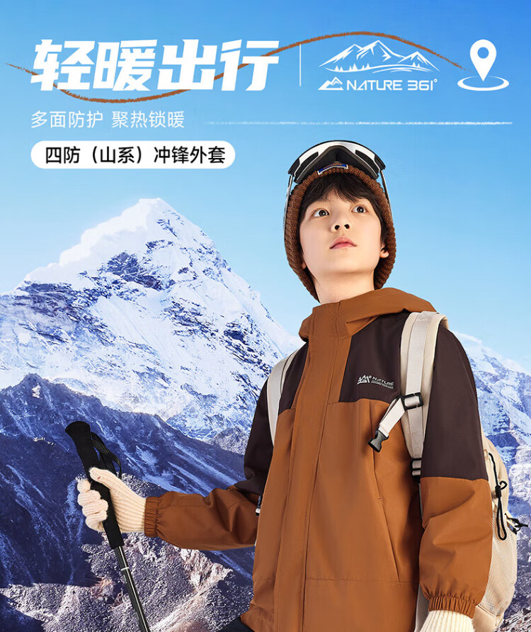361°儿童外套2025冬男女中大童四防保暖摇粒绒上衣两件套 橙150