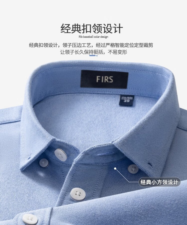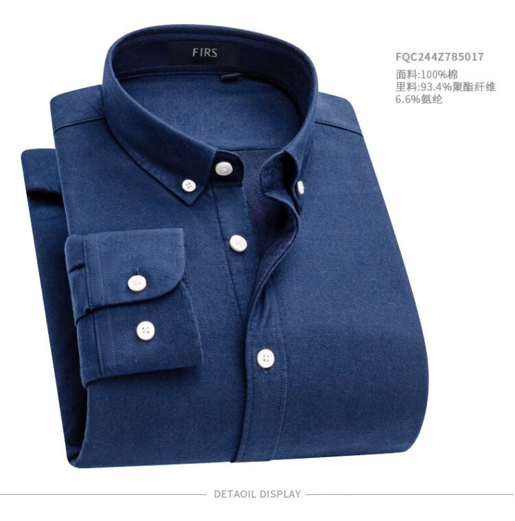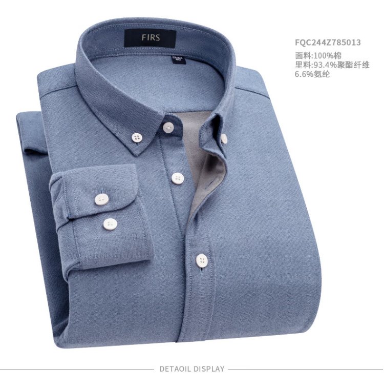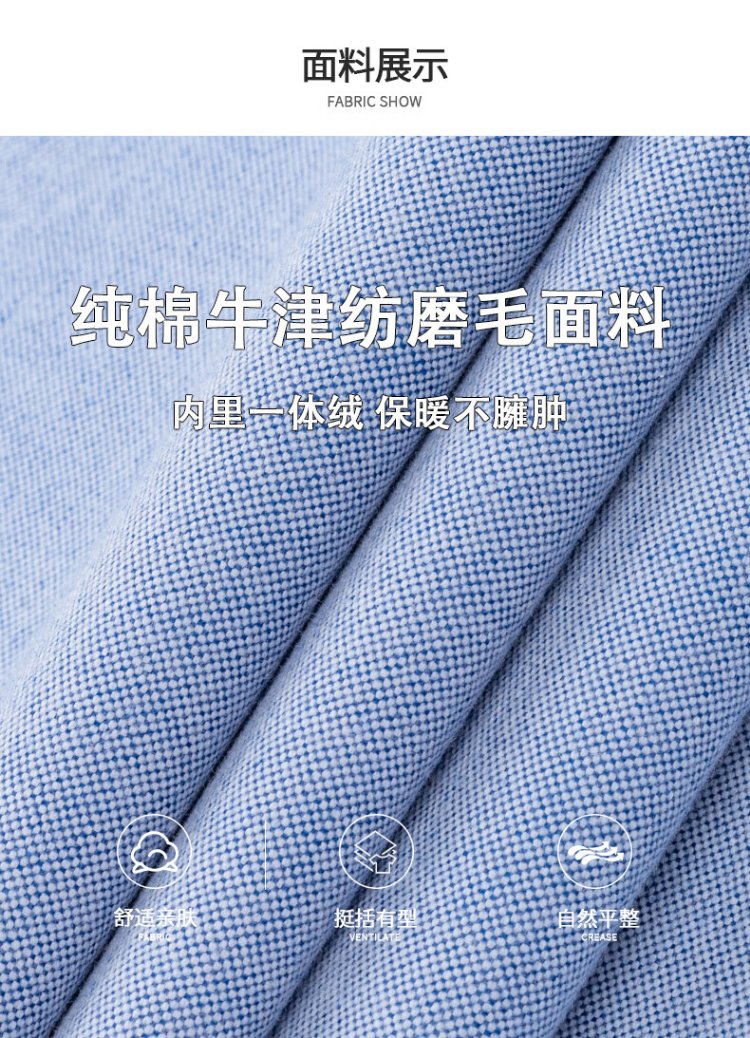 杉杉(FIRS)【牛津纺一体绒】保暖衬衫男冬季纯棉磨毛加绒加厚衬衣 浅蓝色 40