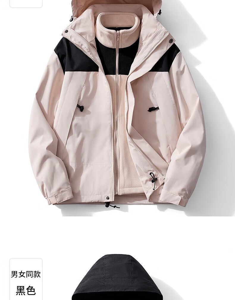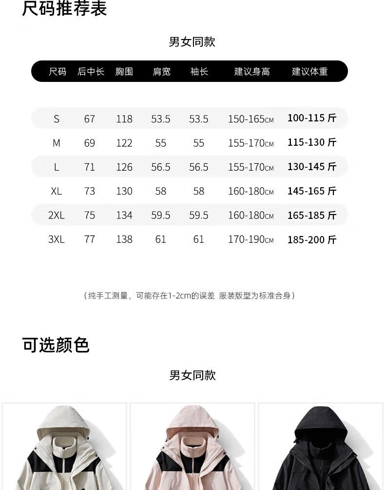 Wassup Sohot Veste Trois-en-Un Automne et Hiver Couple Veste Coupe-Vent et imperméable Vêtements d'alpinisme Rose Trois-en-Un M