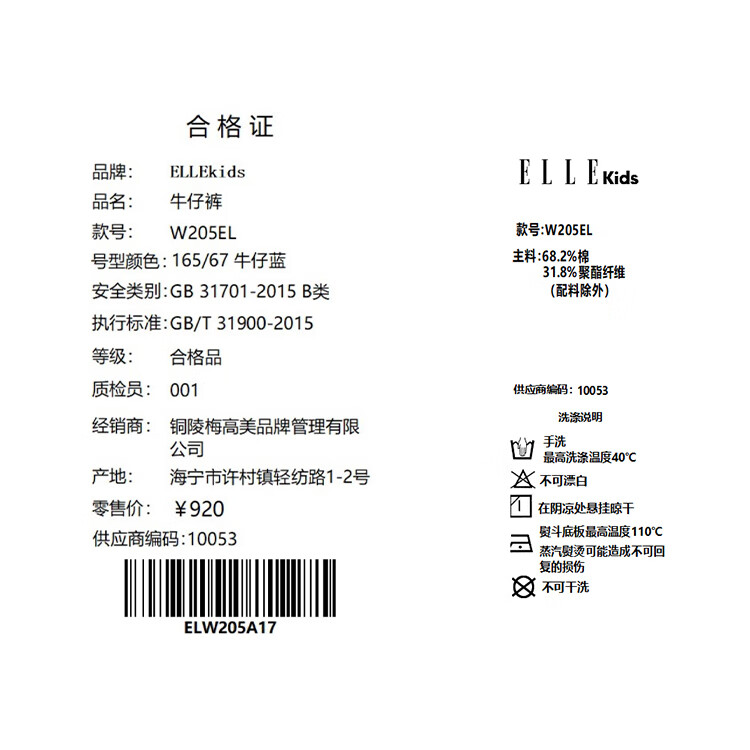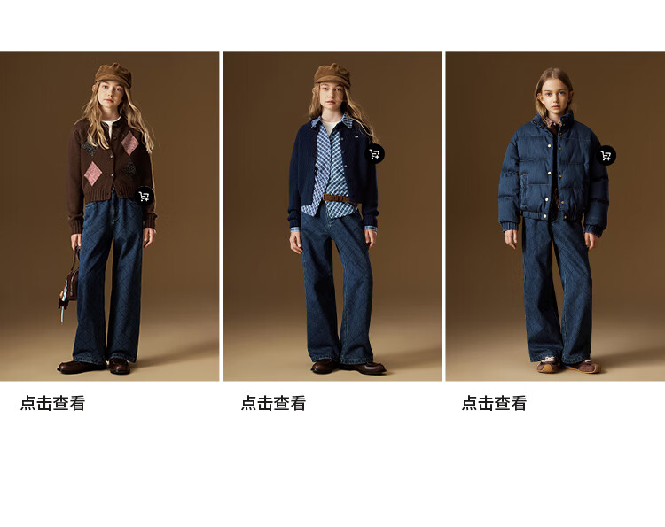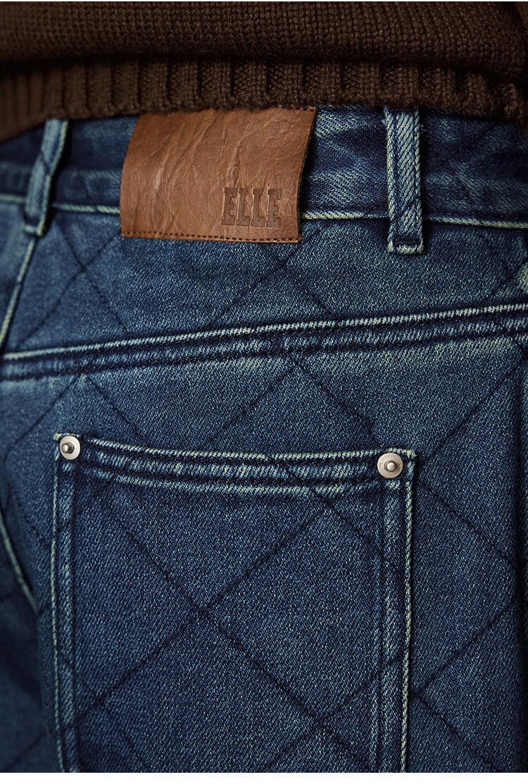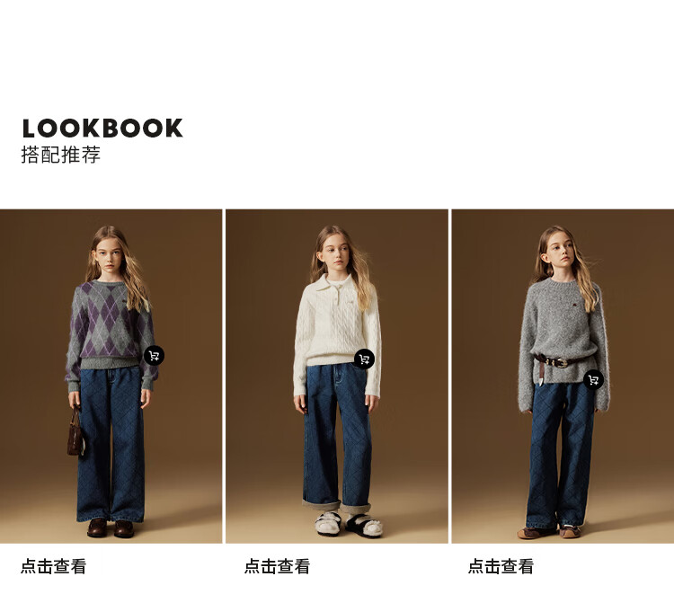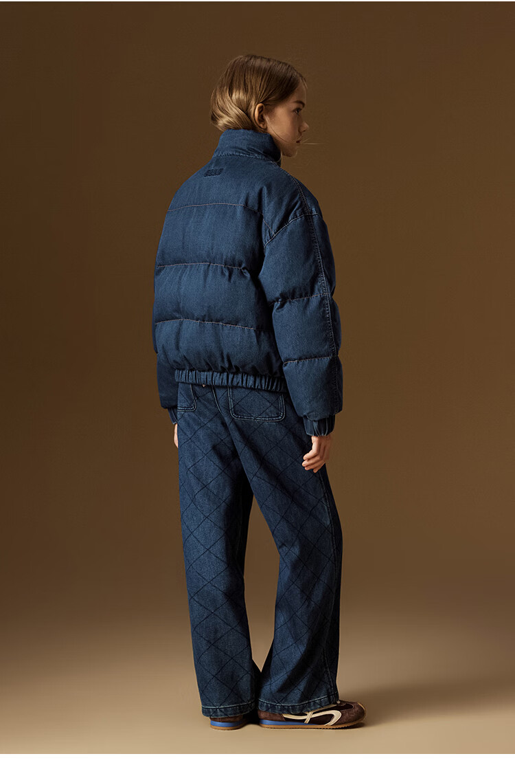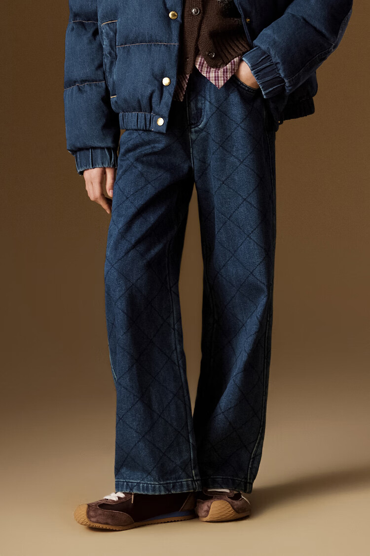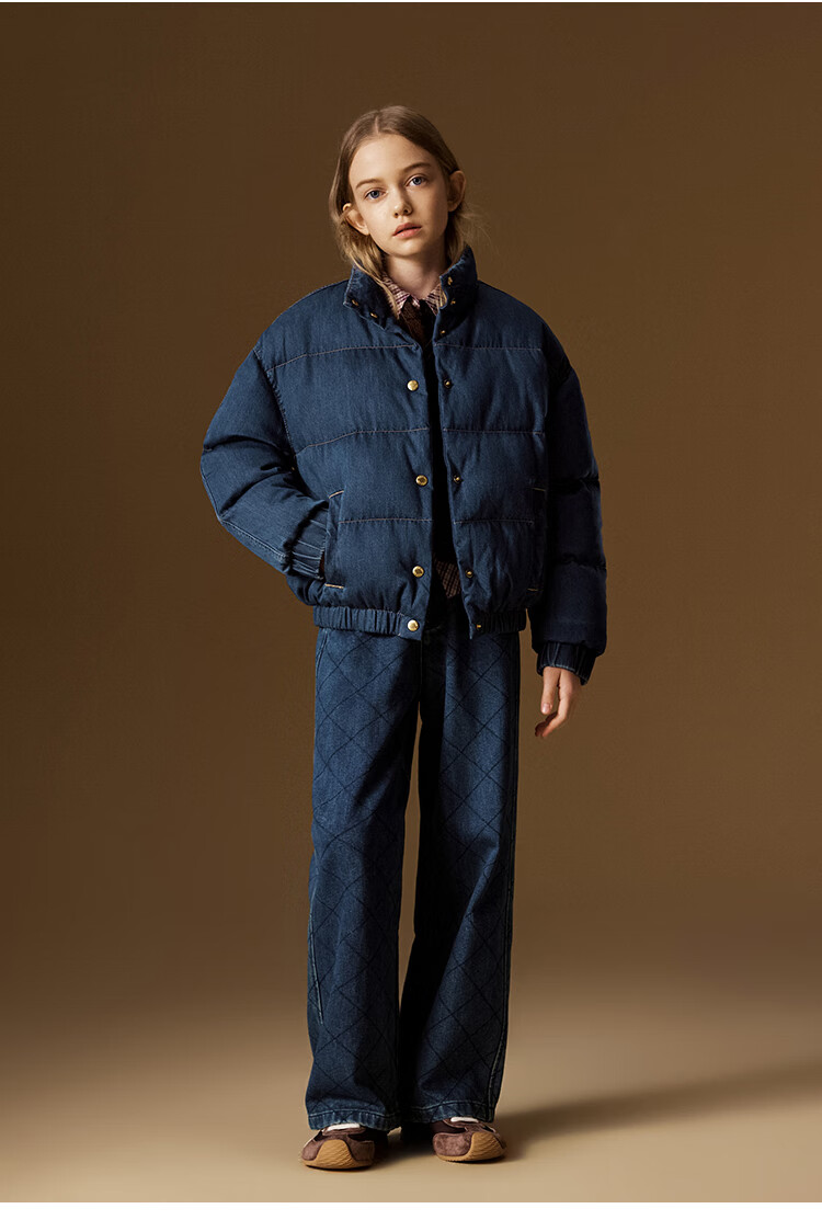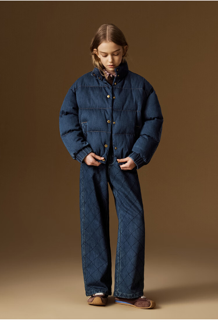 ELLE KIDS复古菱格抓绒直筒女童牛仔裤百搭秋季新款设计感休闲裤子