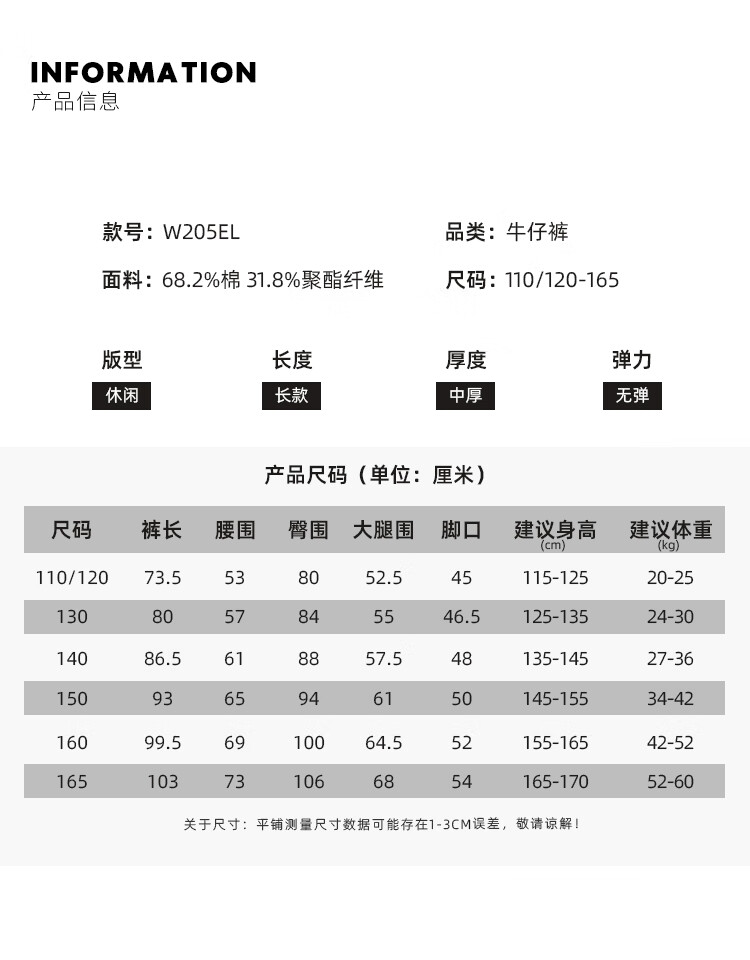 Outseam (cm) 99 cm 101.5 cm 104 cm 106.5 cm 109 cm