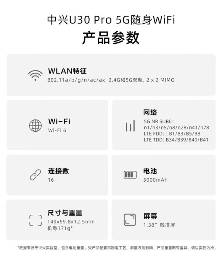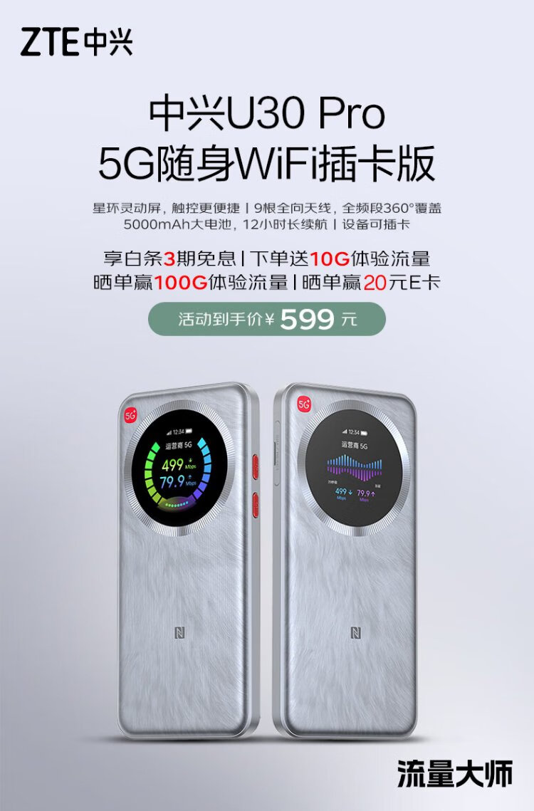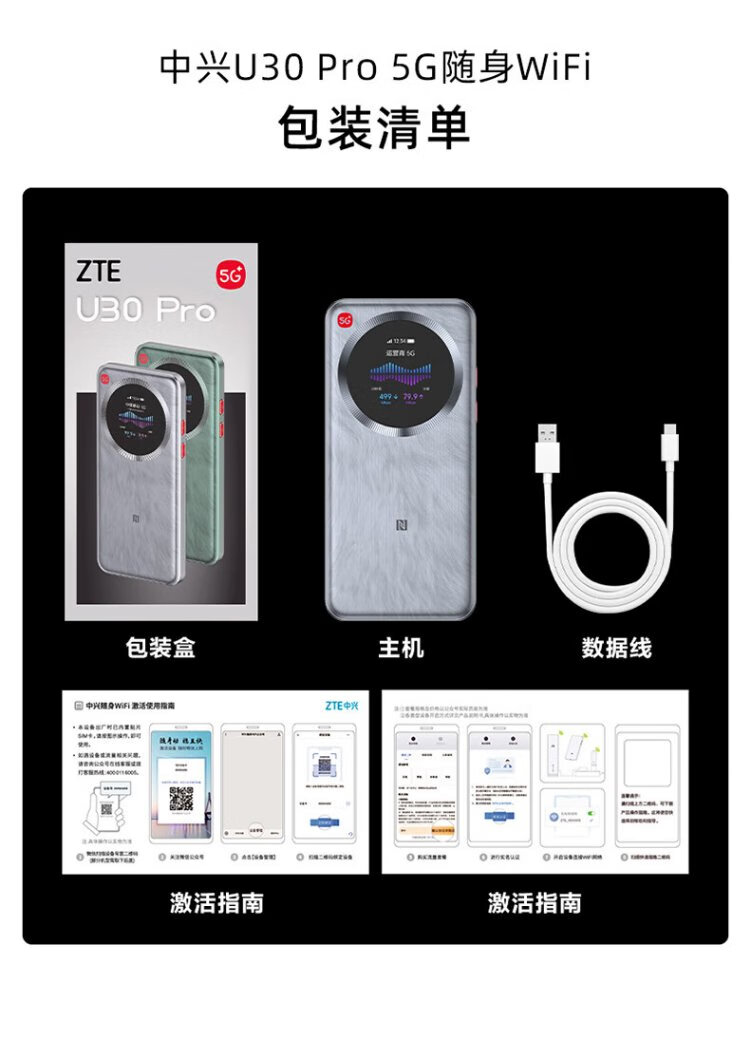 中兴(ZTE)U30 Pro 5G可插卡移动随身wifi无线网卡便携式热点5g路由器无限笔记本电脑通用流量车载卡托2025款
