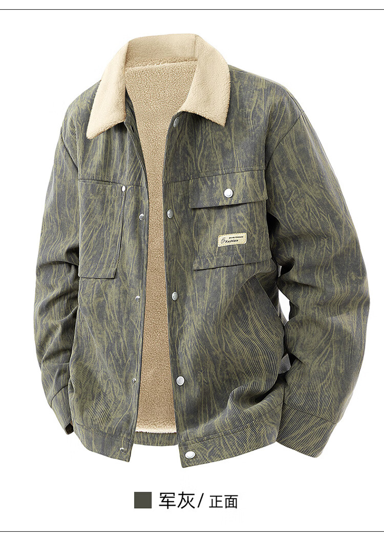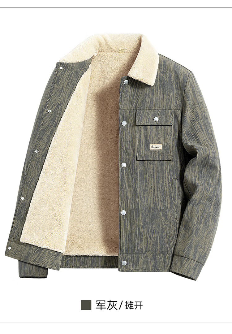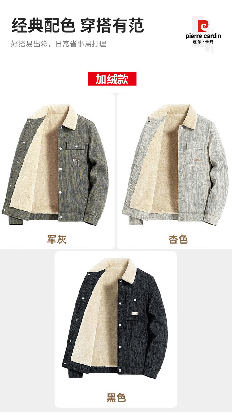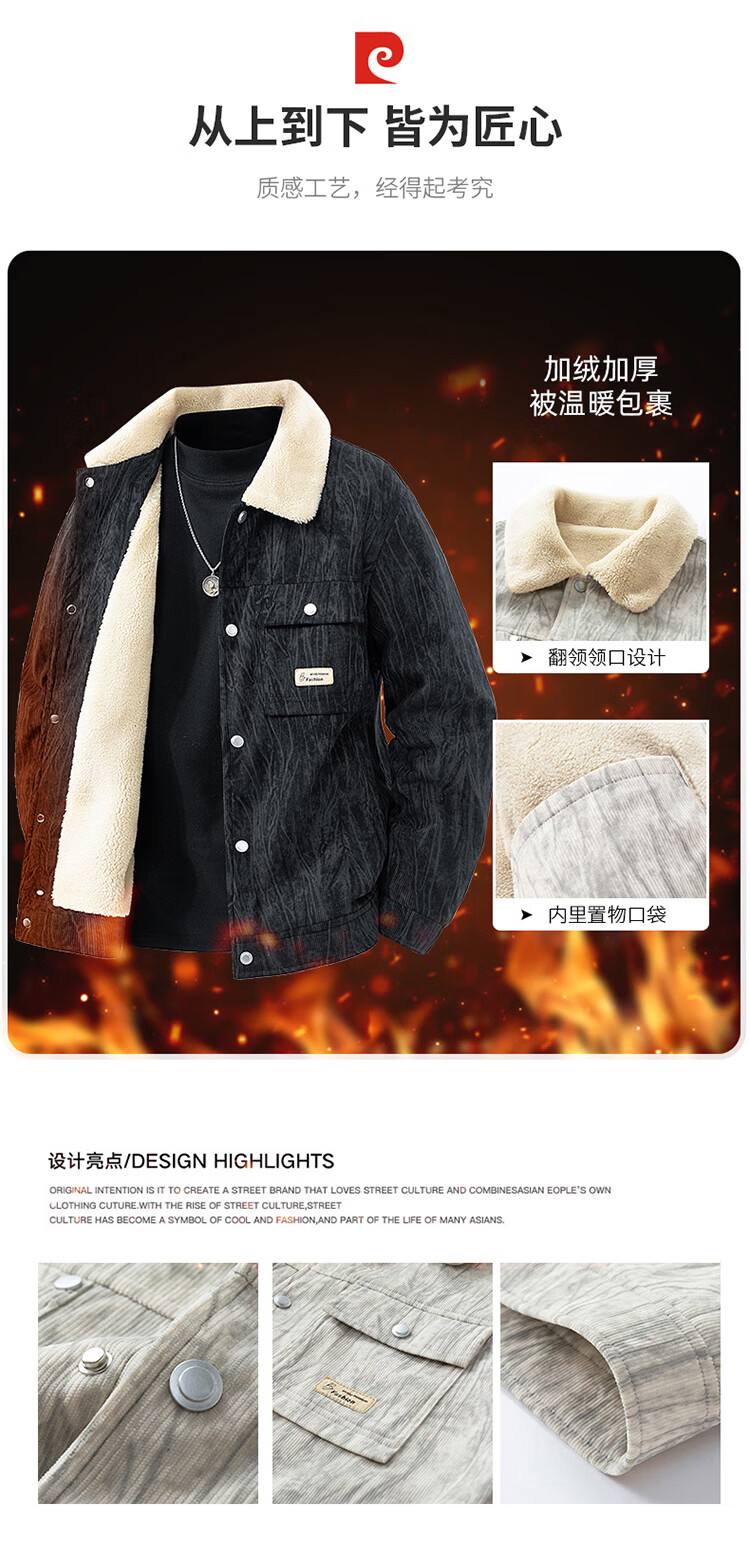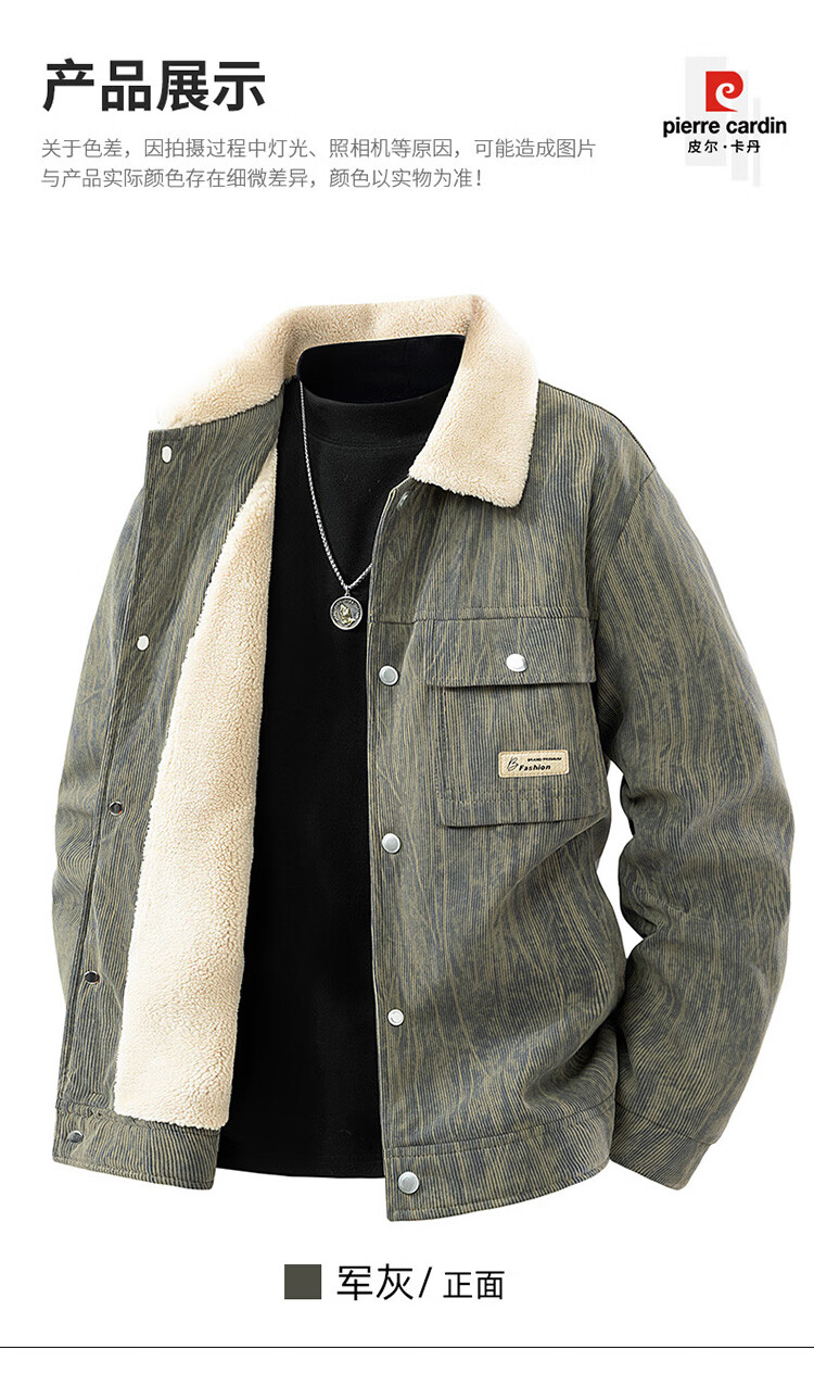皮尔卡丹(pierre cardin)外套男秋冬季加绒保暖工装夹克潮流复古衣服男装 军灰加绒 XL
