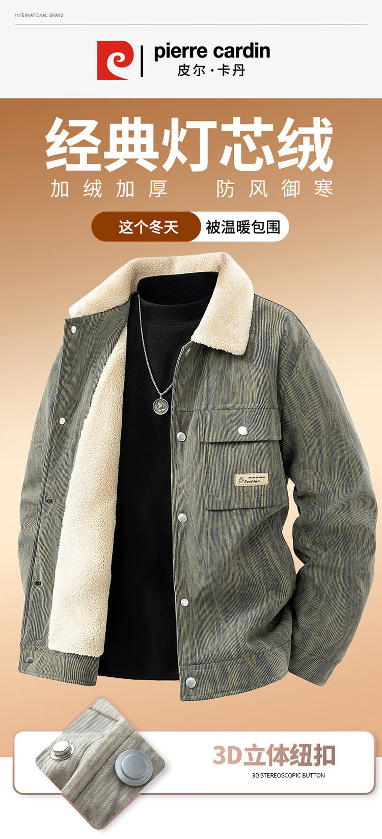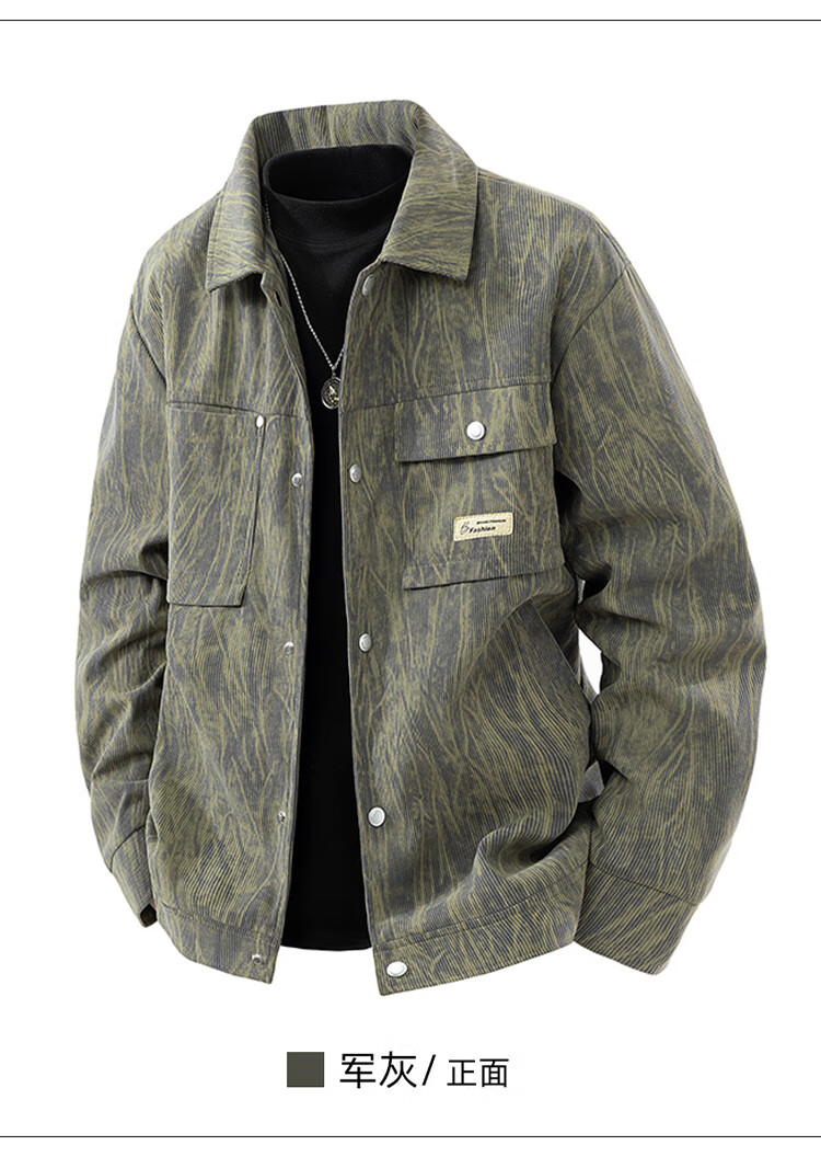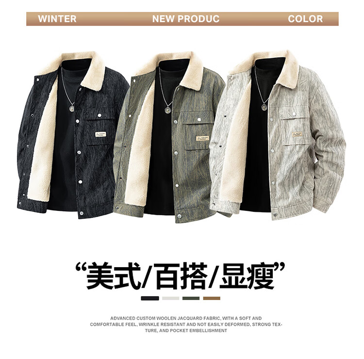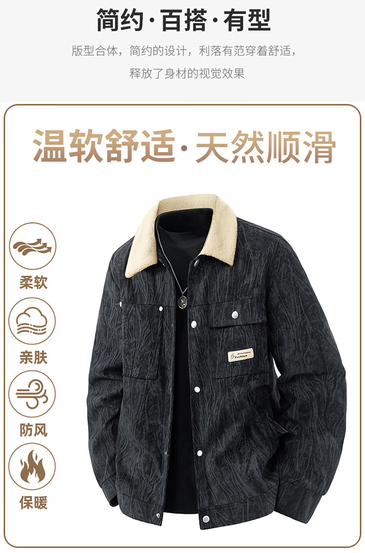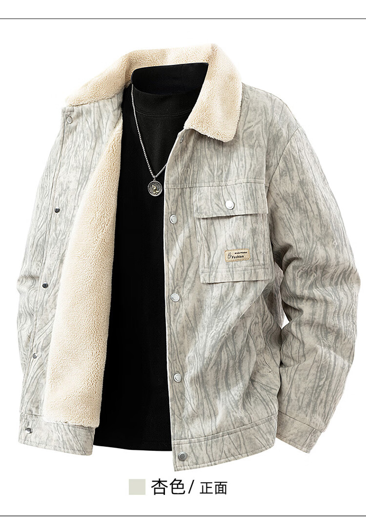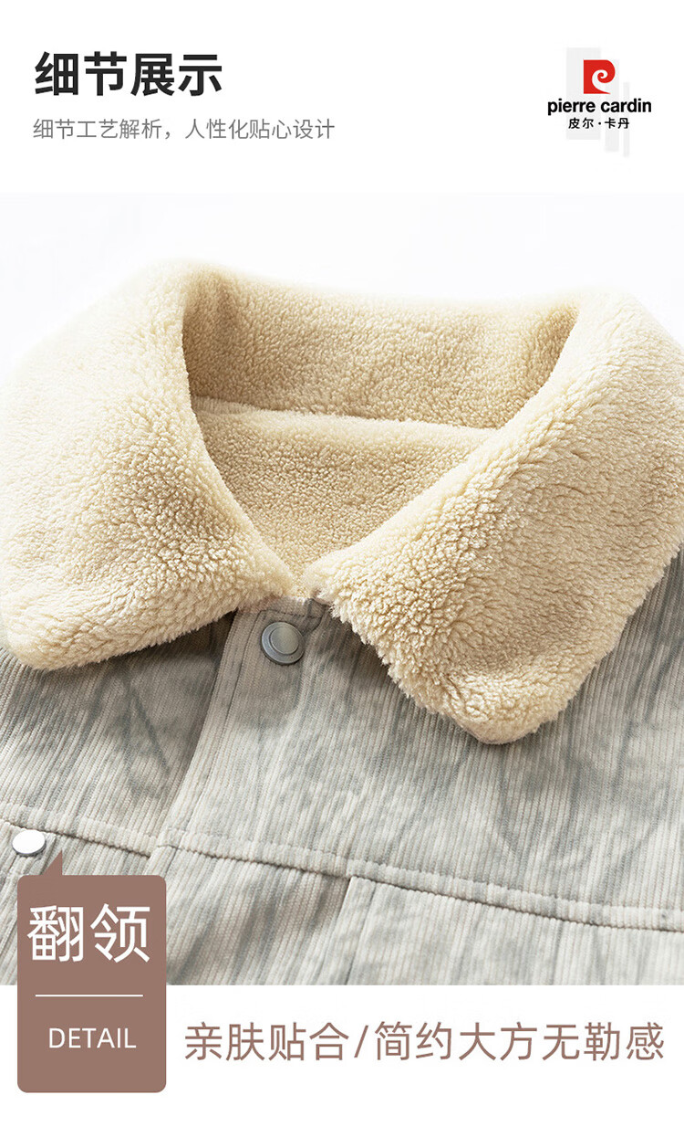皮尔卡丹(pierre cardin)外套男秋冬季加绒保暖工装夹克潮流复古衣服男装 军灰加绒 XL