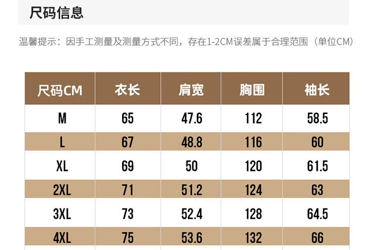 Size (cm) 42 44 46 48 50