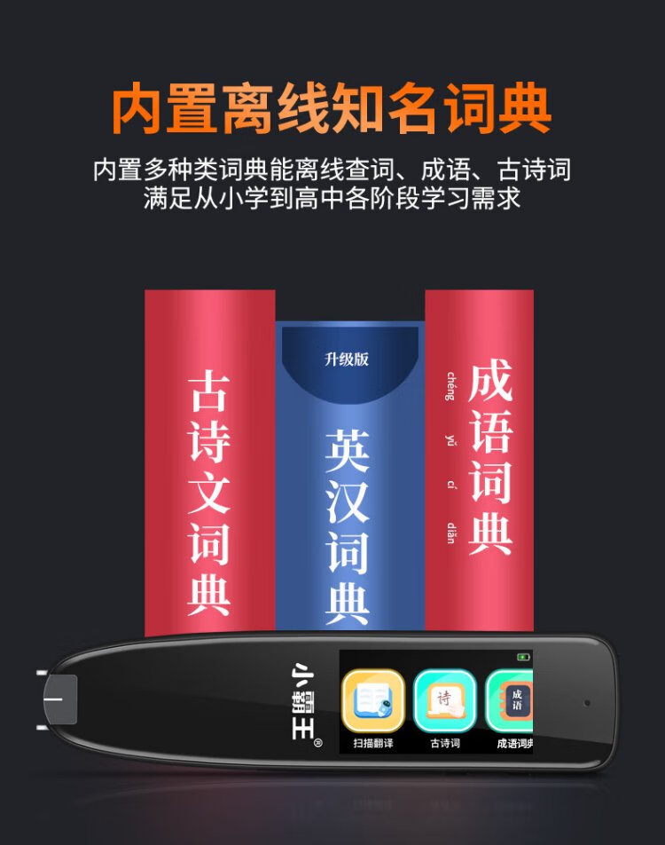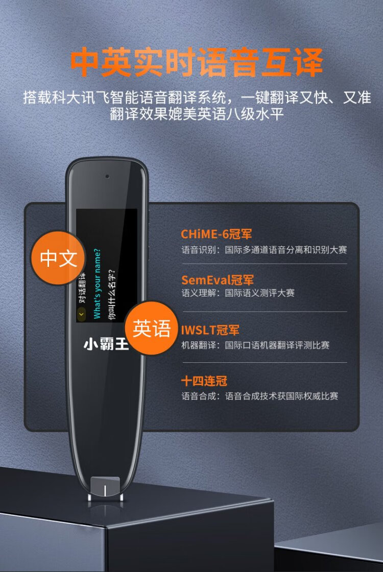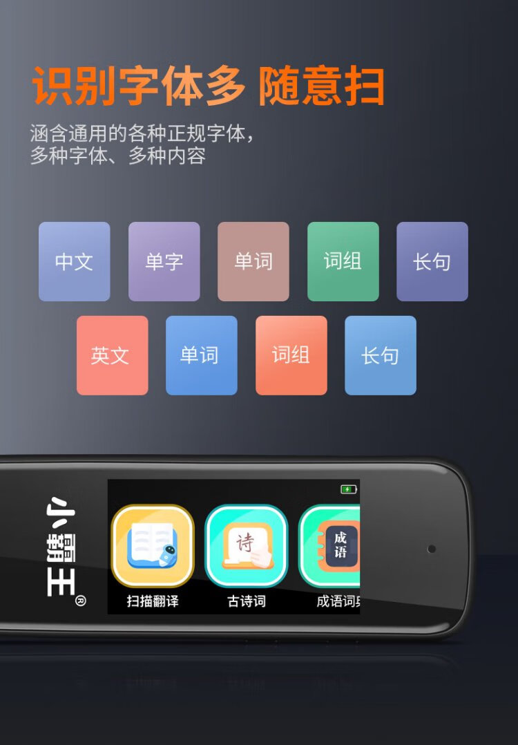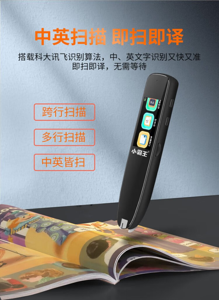 小霸王英语点读笔扫描笔翻译学习机同步儿童小学初中高中生课程通用笔幼儿启蒙绘本书阅读通用点读笔 升级版黑B100【WIFI+不限书籍+多行扫描】
