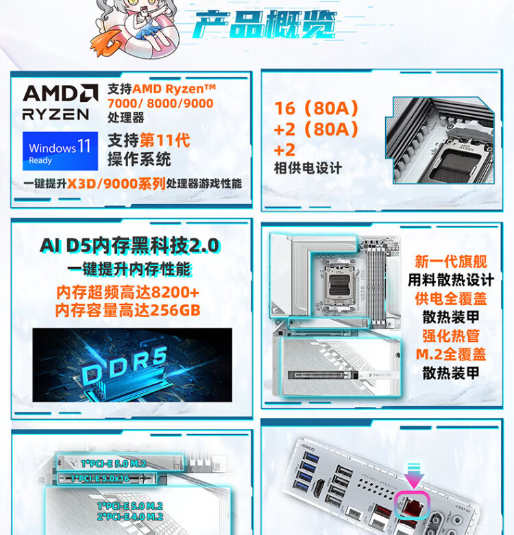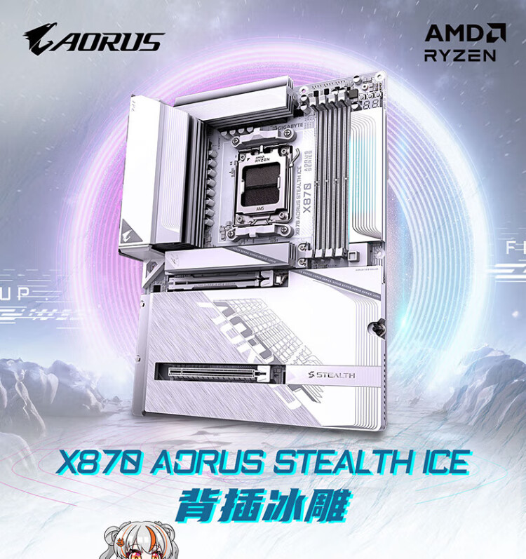GIGABYTE back-mounted ice sculpture X870 AORUS STEALTH ICE motherboard DDR5 supports AMD CPU AM5 9700X 9950X 9900X 9600X
