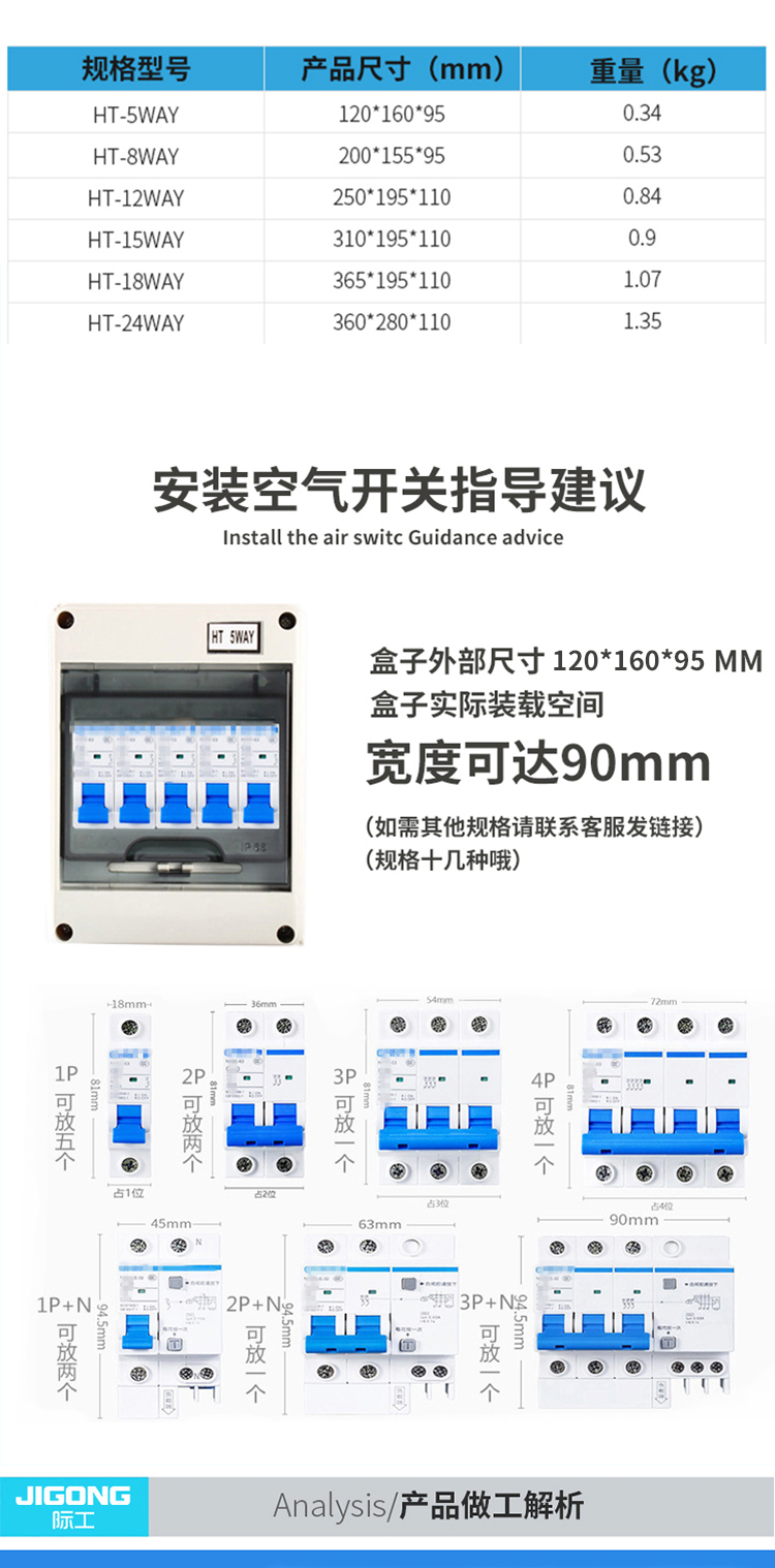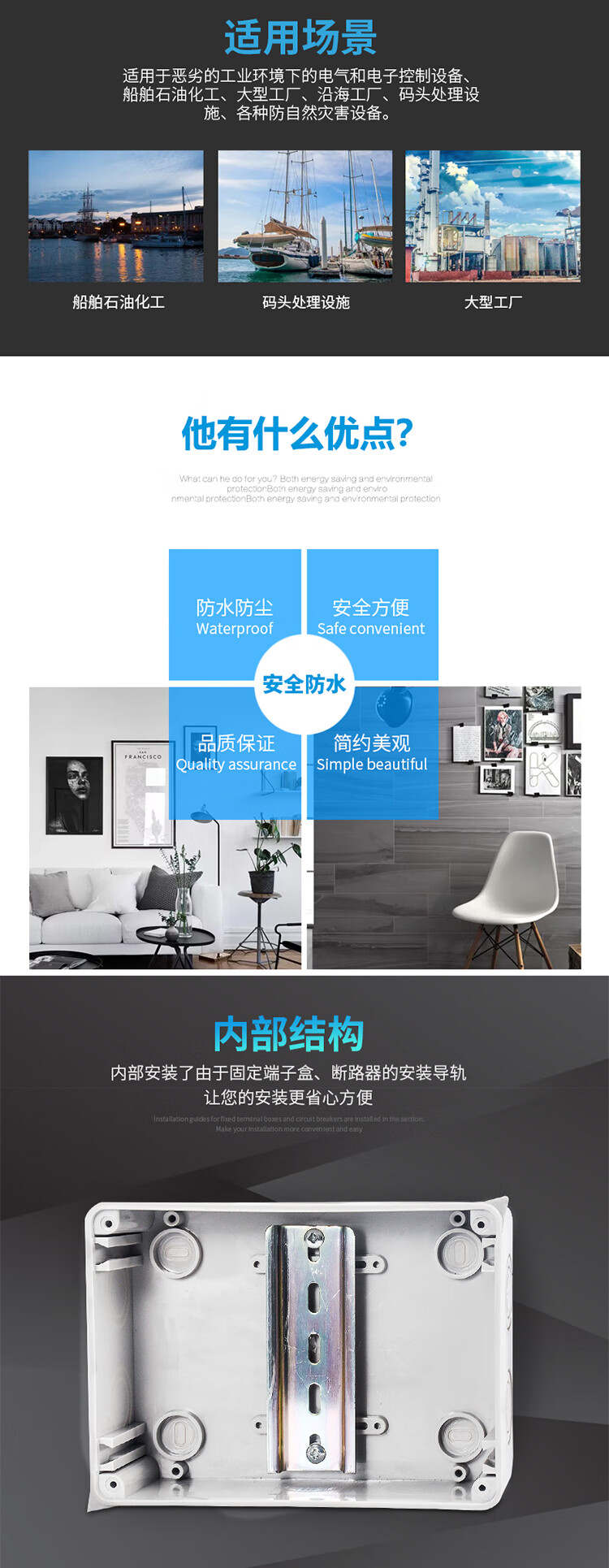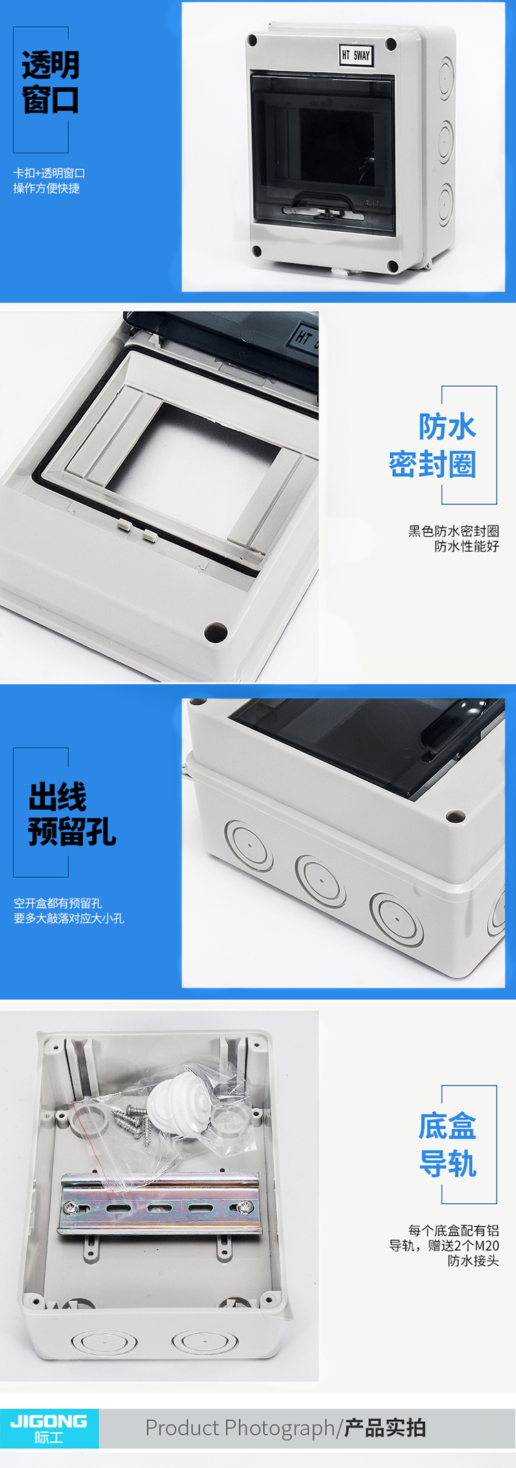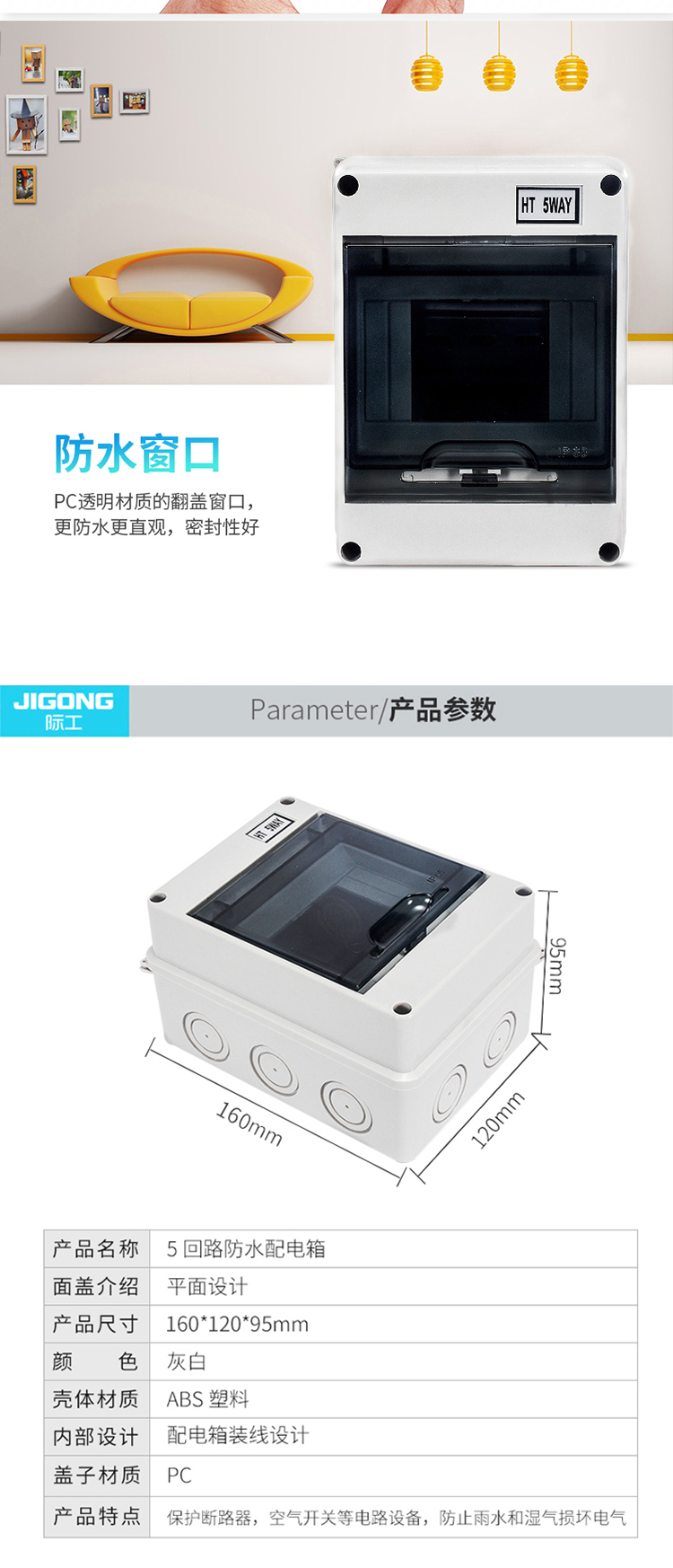 际工 户外防水配电箱强电箱明装塑料空开盒室外布线箱5路-24路配电盒 5回路配电箱