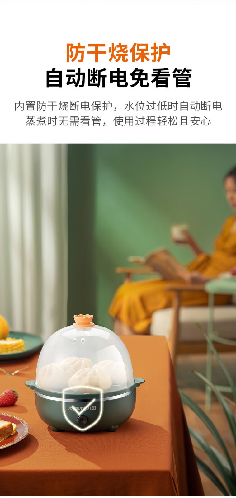 Joyoung egg steamer automatic power off household small multi-functional mini lazy breakfast artifact boiled egg egg cooker single layer retro green