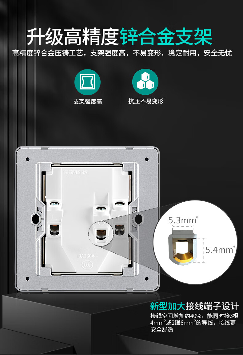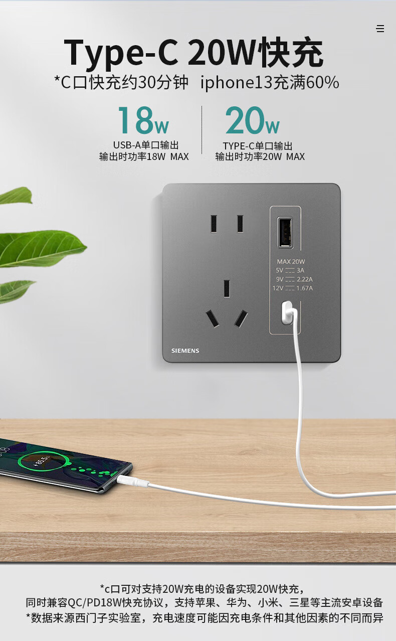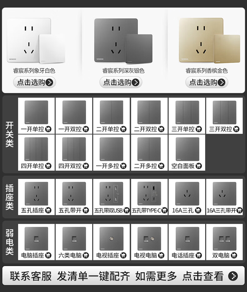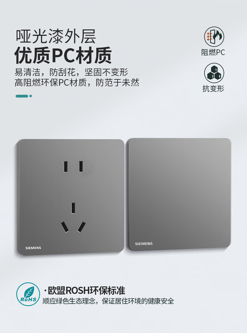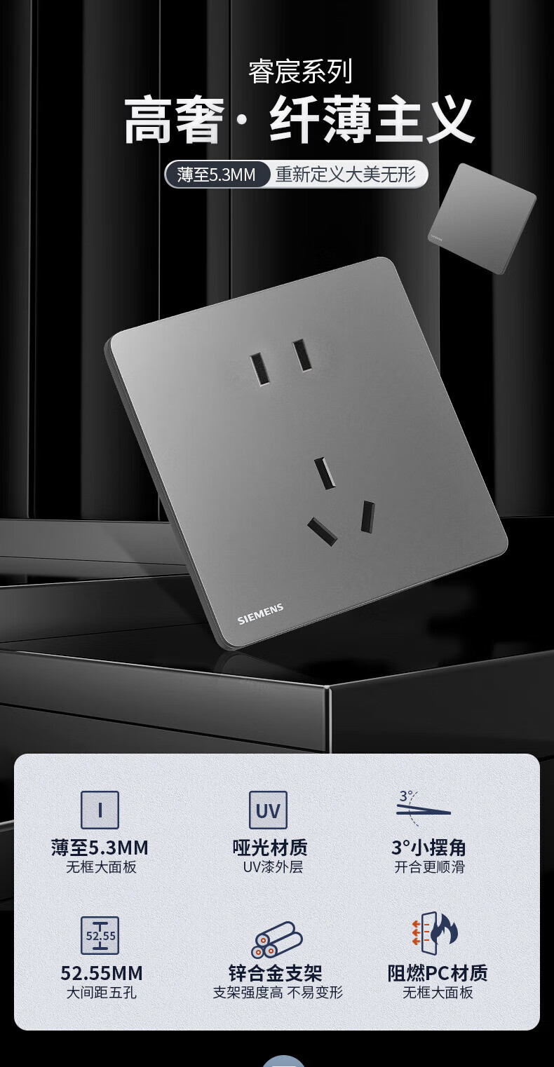 SIEMENS type 86 wall switch socket panel matte frosted Ruichen series dark gray silver five-hole socket set of ten