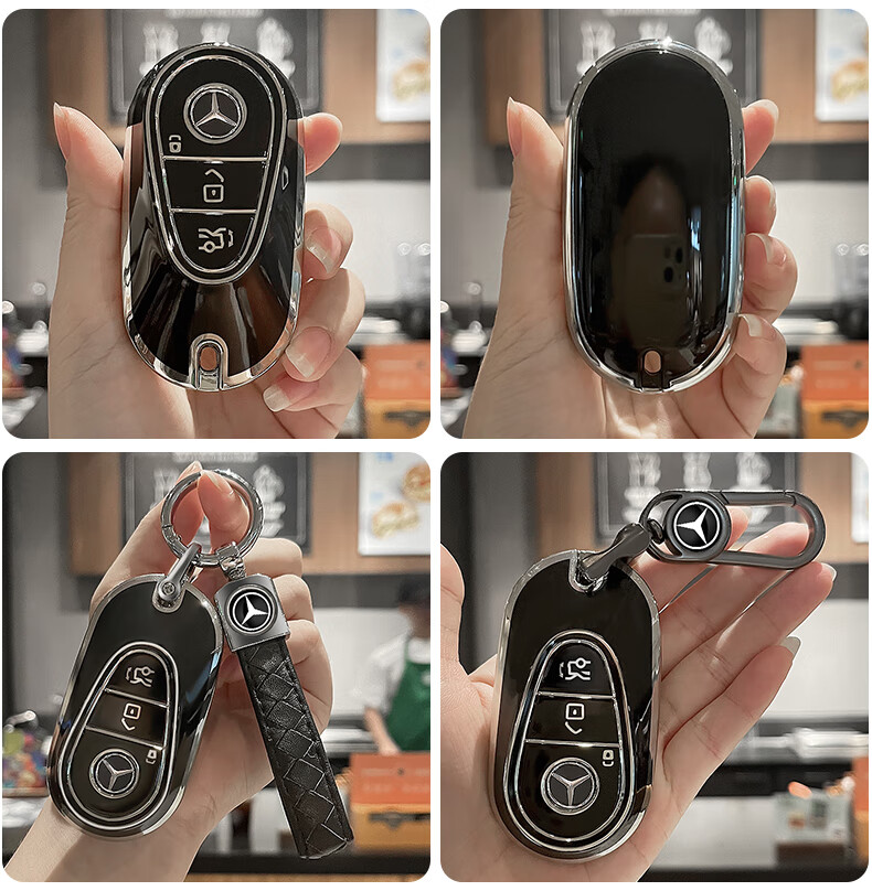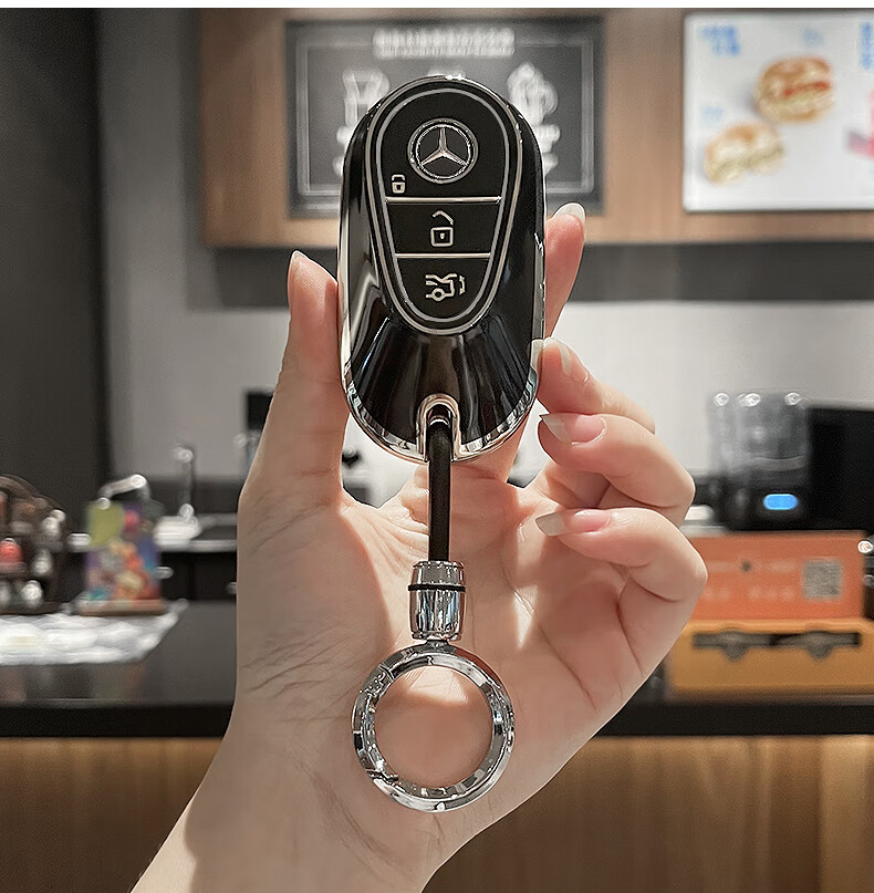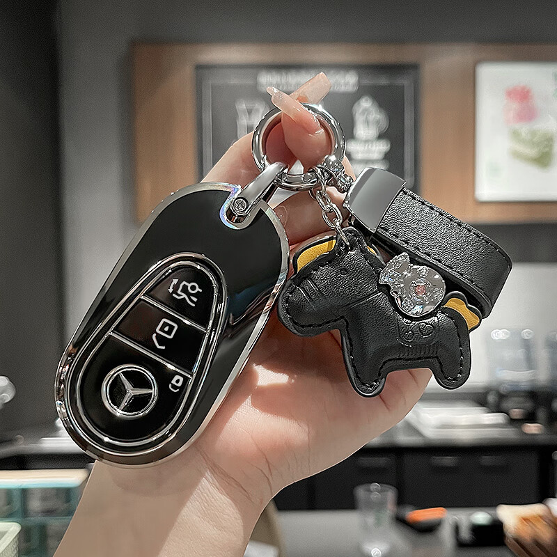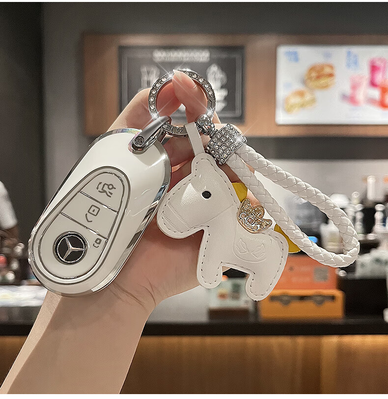 Baicheda Mercedes-Benz key cover suitable for c260l buckle e300l car glc300l female a200l high-end gle350 shell glc C model white + silver full diamond white bear