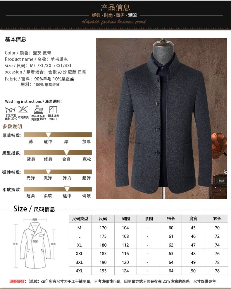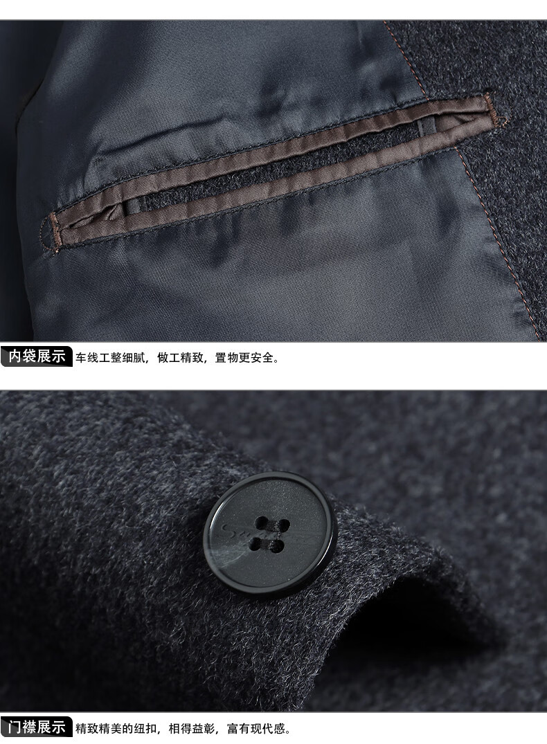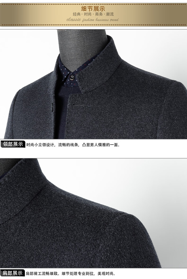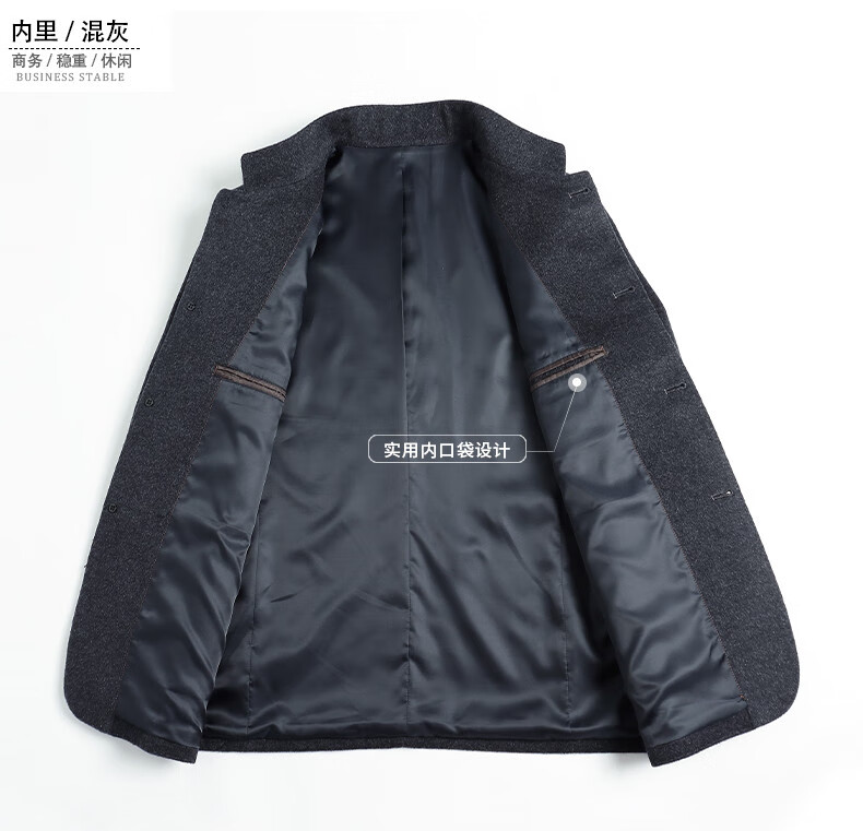 Fazeya恒源祥集团桑蚕丝中山装立领西服男羊毛呢外套修身商务休闲爸爸装 黑色(三颗扣) XL (180) (建议140-160斤)