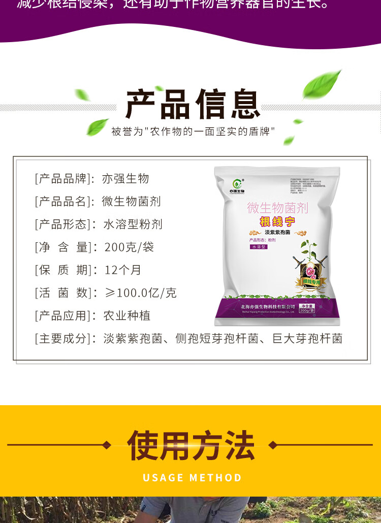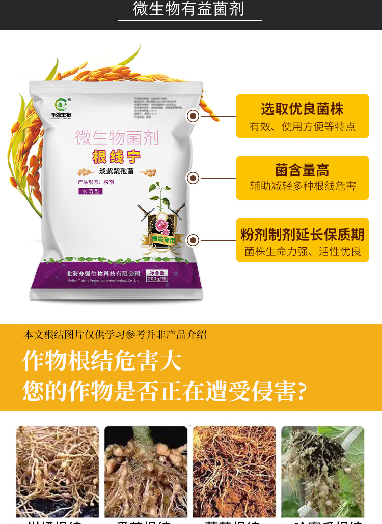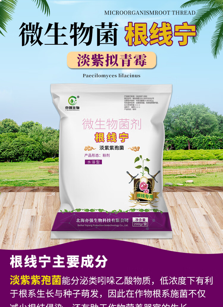 亦强生物(YIQIANGSHENGWU) 根线宁 微生物菌剂淡紫紫孢菌淡紫拟青霉降低根结危害保护根系 200克