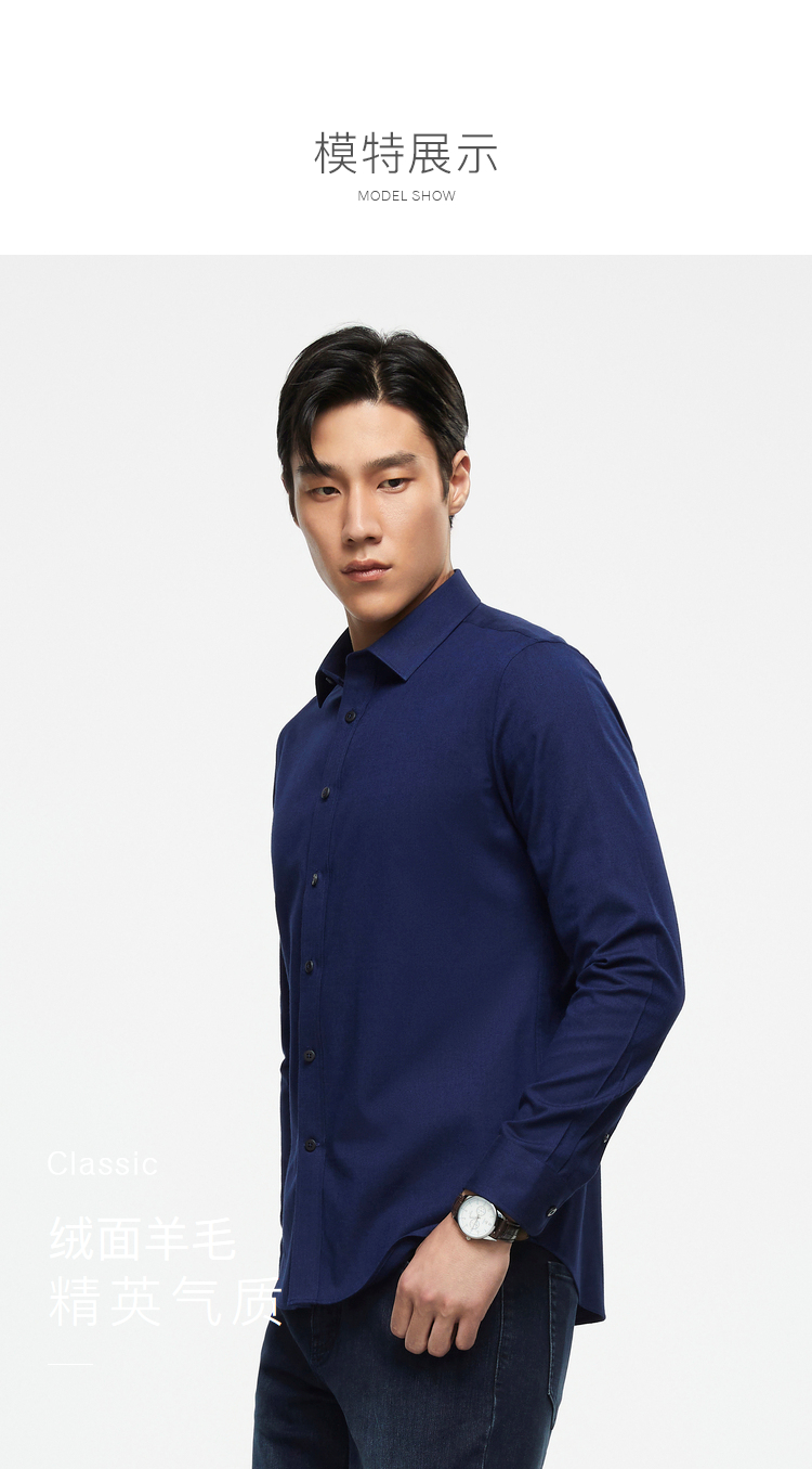 雅戈尔(YOUNGOR)长袖衬衫男素色绒面衬衫棉羊毛磨毛衬衫绒毛细腻柔软秋冬保暖亲肤 VLRM129811FFY 39