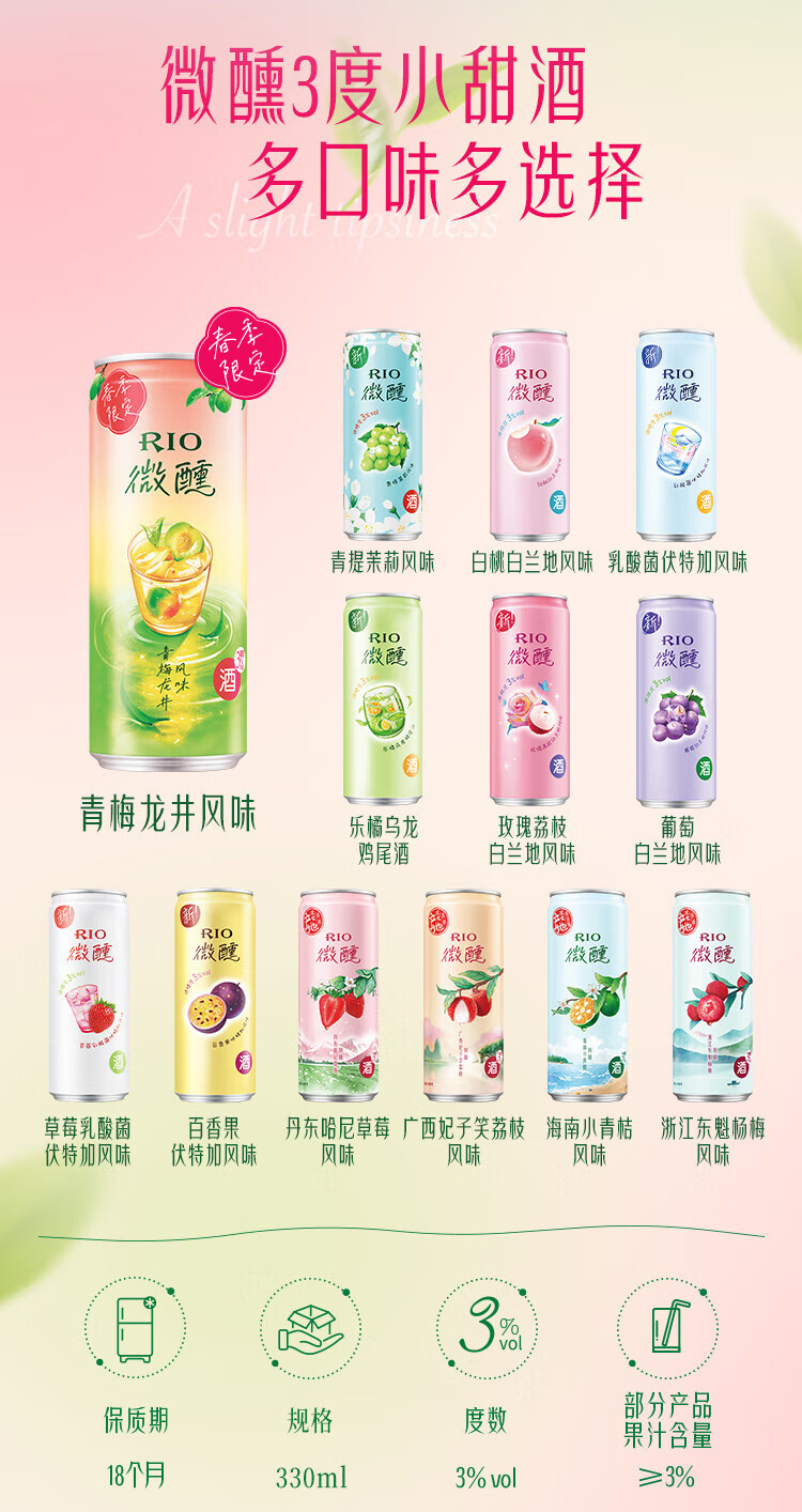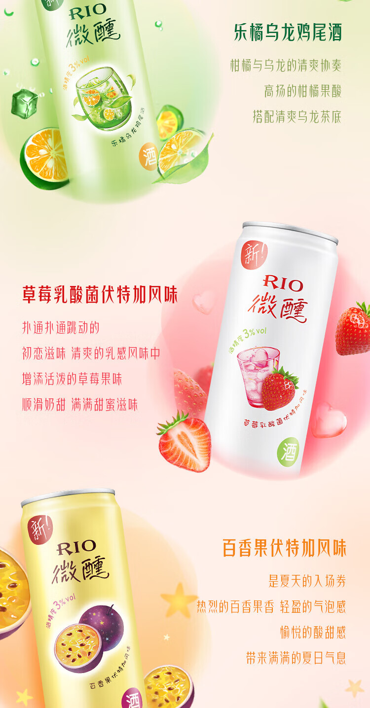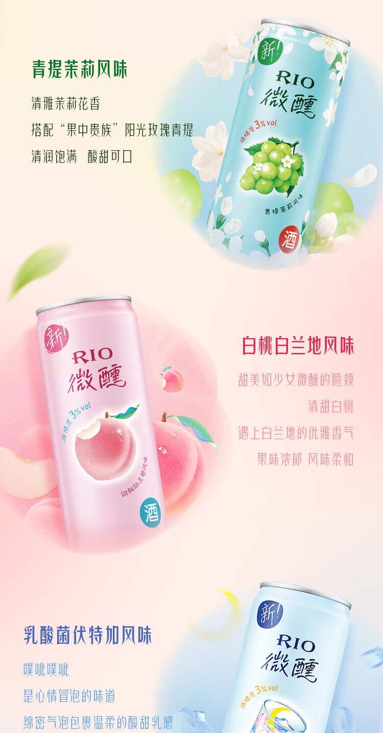 锐澳(RIO)微醺小美好限定系列鸡尾酒预调酒洋酒闺蜜整箱3度330ml伏特加年货 6种口味可自选口味330mL6罐