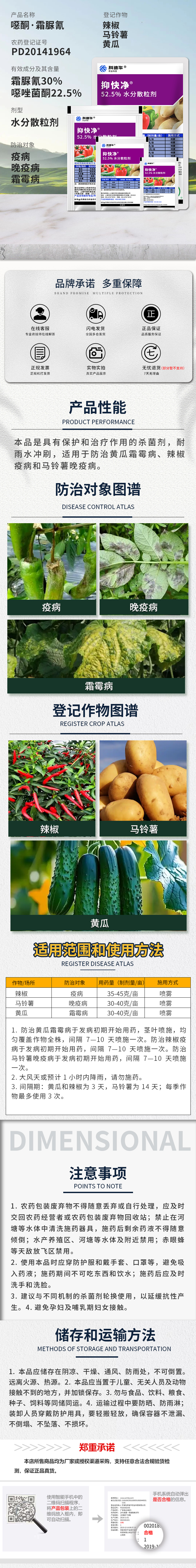 科迪华杜邦 抑快净 噁唑菌酮霜脲氰番茄辣椒黄瓜霜霉晚早疫病农药杀菌剂 9g