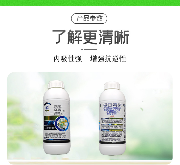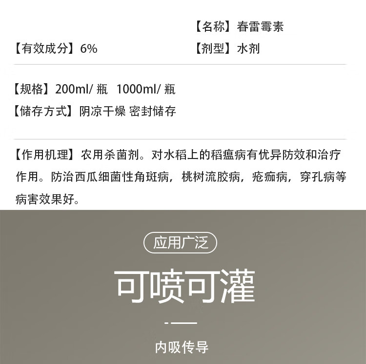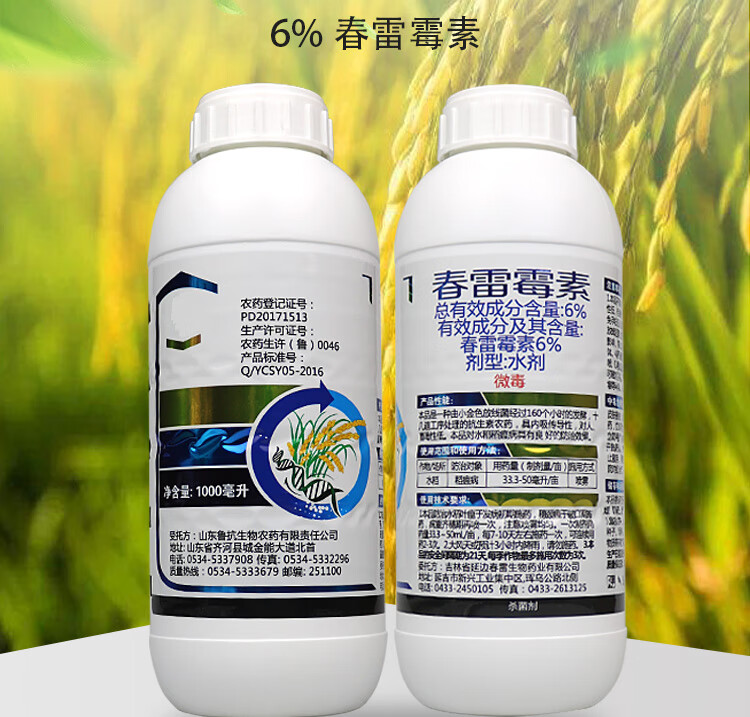 6%春雷霉素杀菌剂叶斑病角斑稻瘟病流胶病柑橘蔬菜软腐细菌病害 1000ml