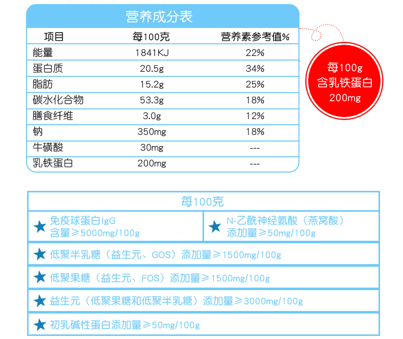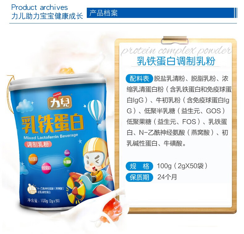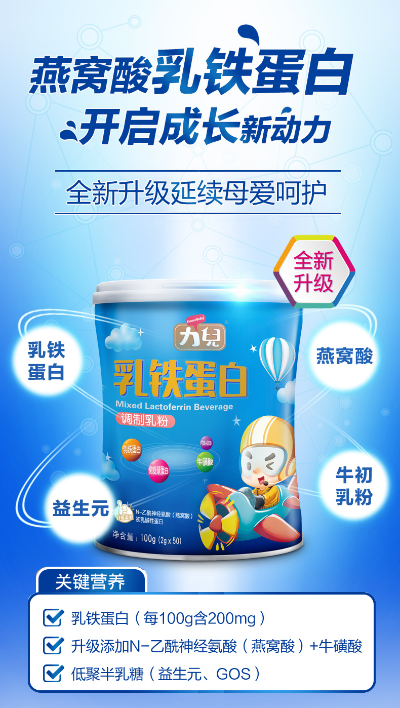 Li'er Lait en poudre modulé à la lactoferrine pour enfants et adolescents Immunoglobuline Nid d'oiseau Acide Taurine Colostrum bovin 1 boîte (2 g x 50 bâtonnets)