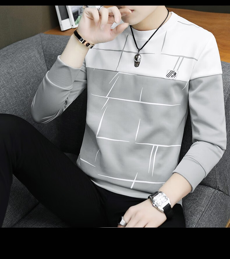 啄木鸟卫衣男秋冬加绒加厚款打底衫长袖t恤青年时尚休闲上衣服帅气男装 903灰色 XL