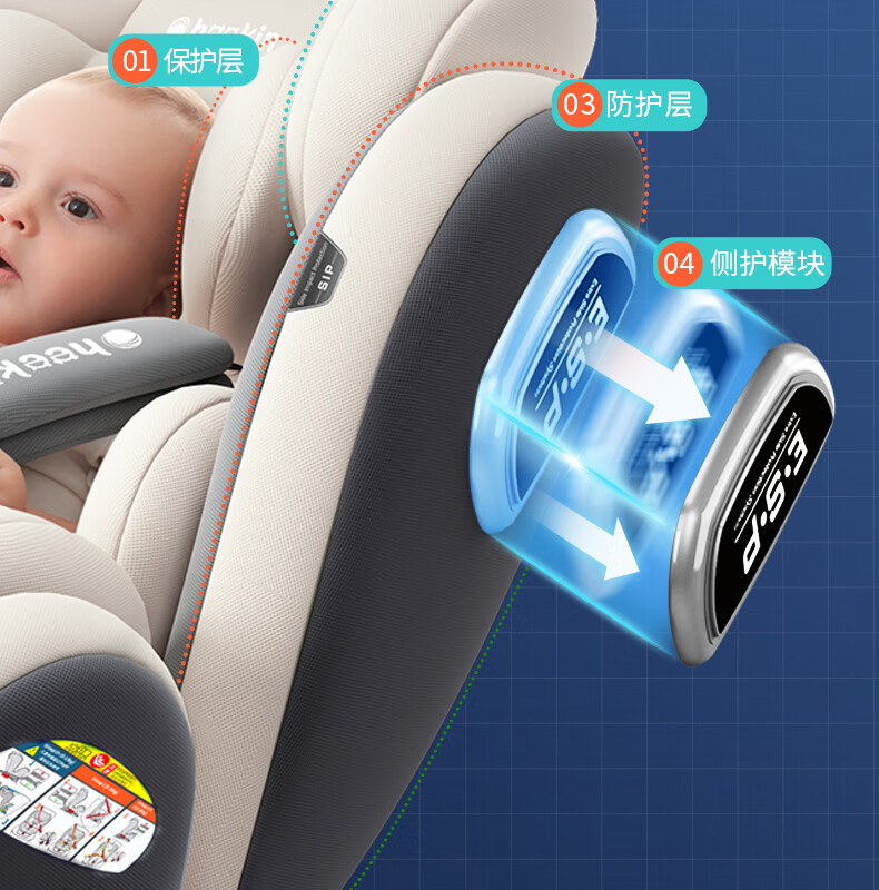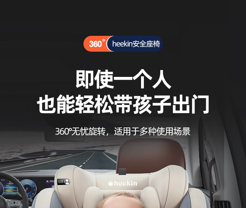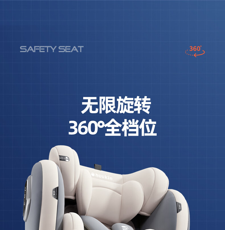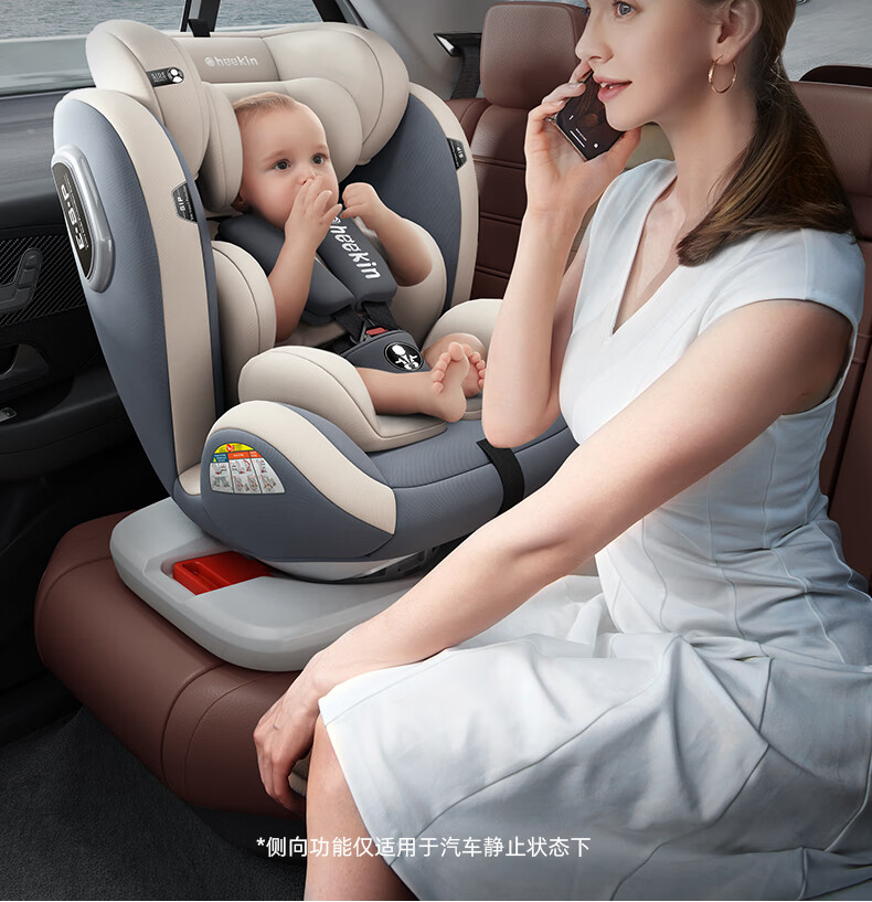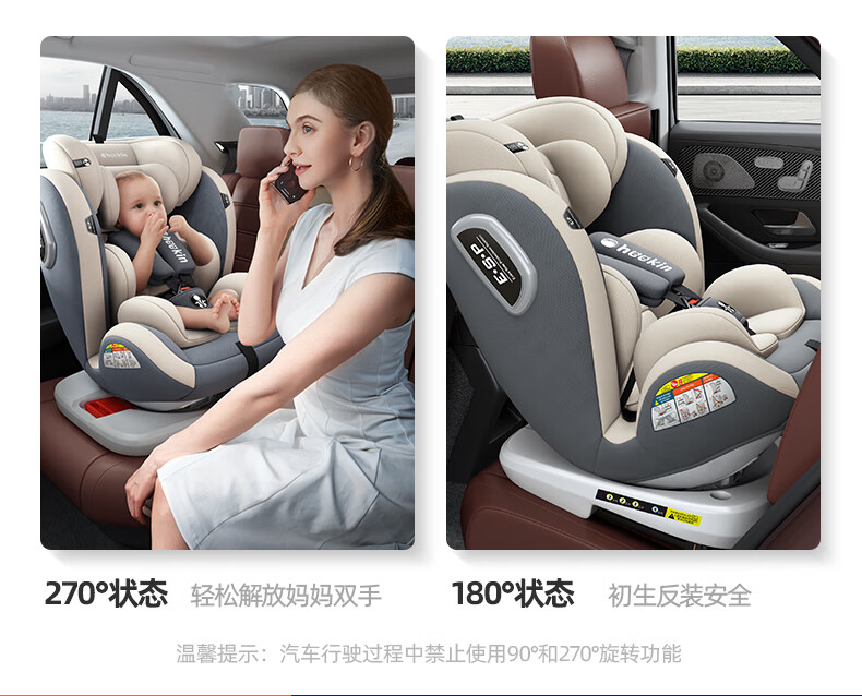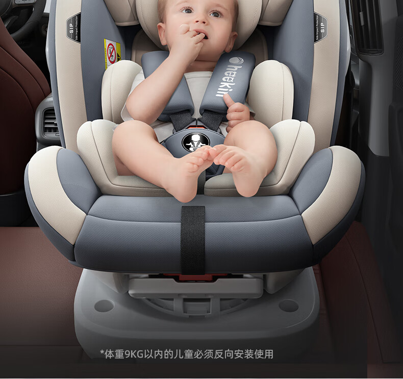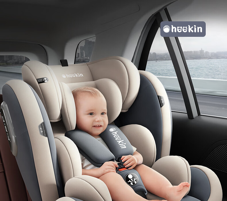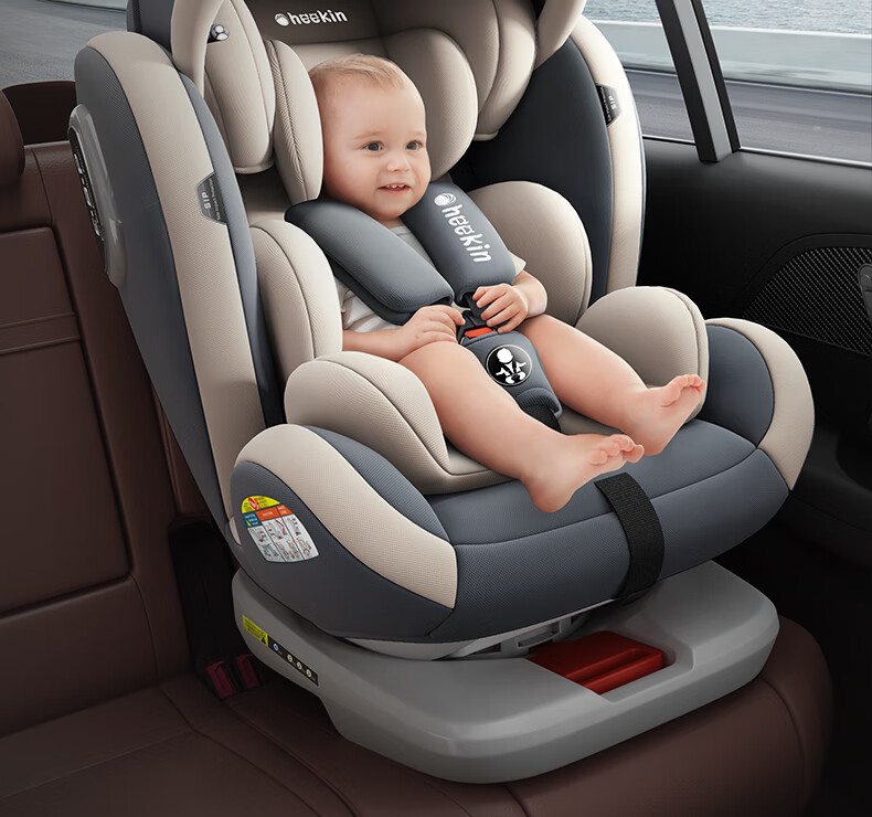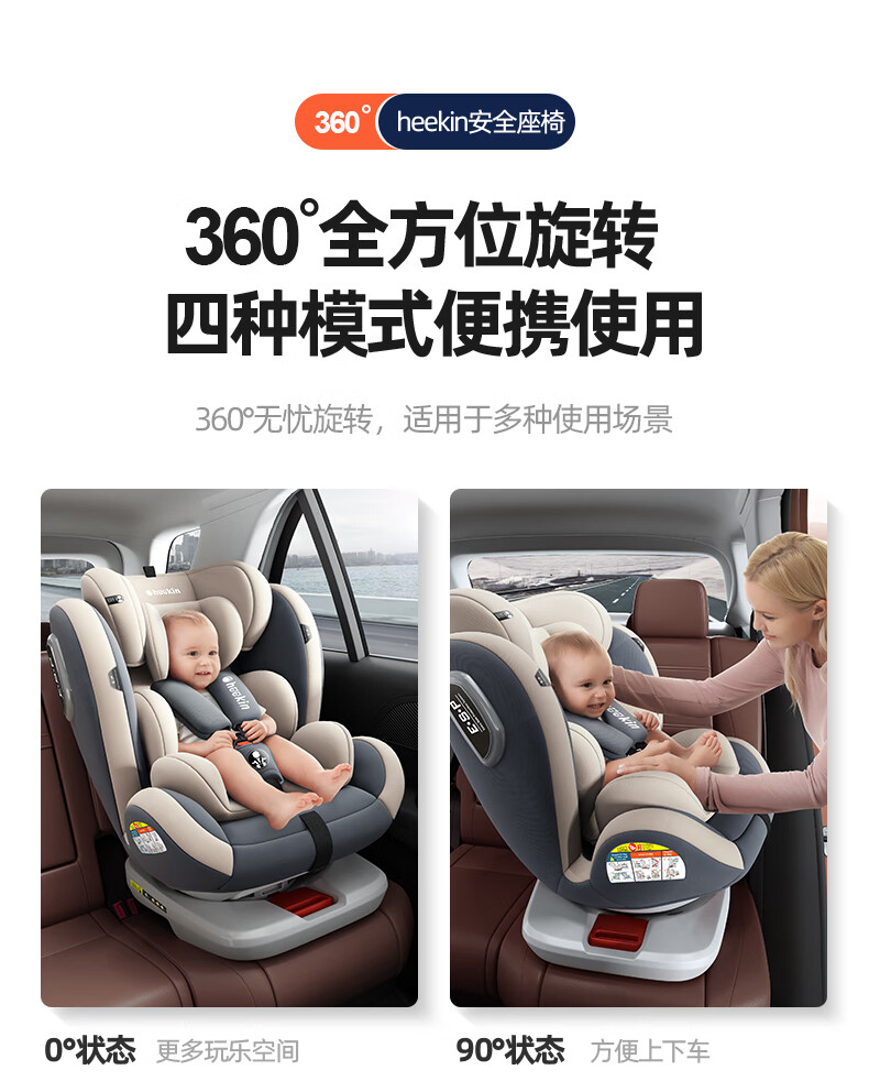 Heekin德国 儿童安全座椅汽车用0-4-12岁婴儿宝宝360度旋转ISOFIX硬接口 尊享灰(遮阳棚+上拉带+侧保护)