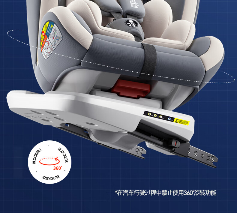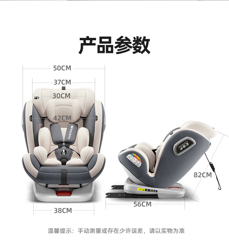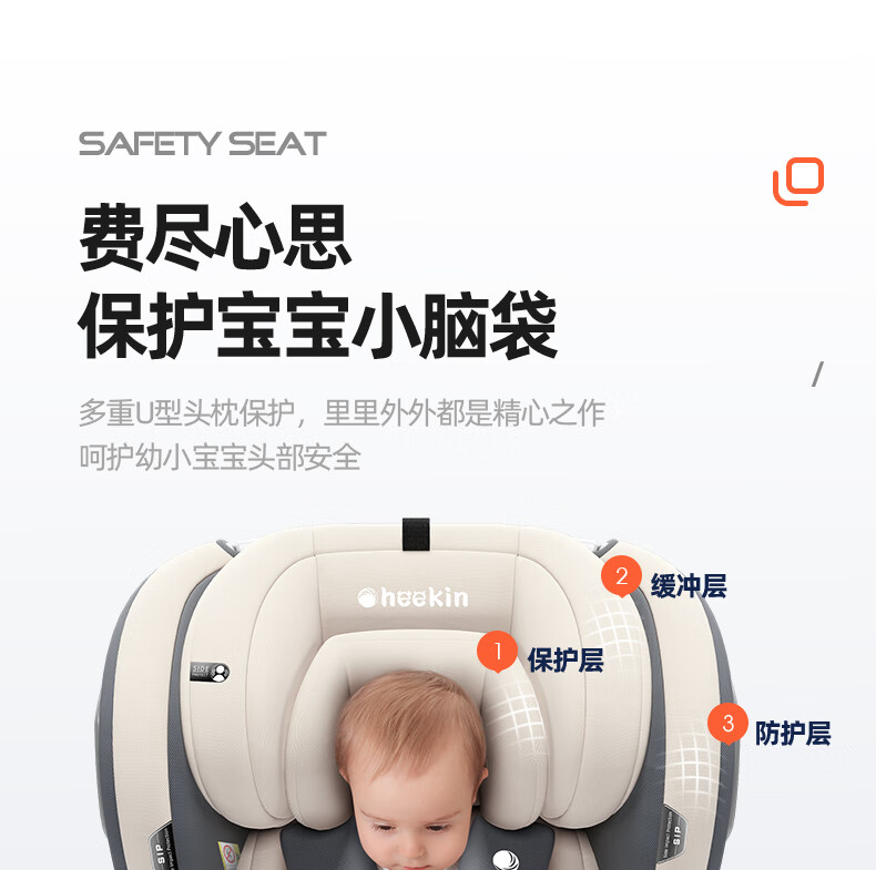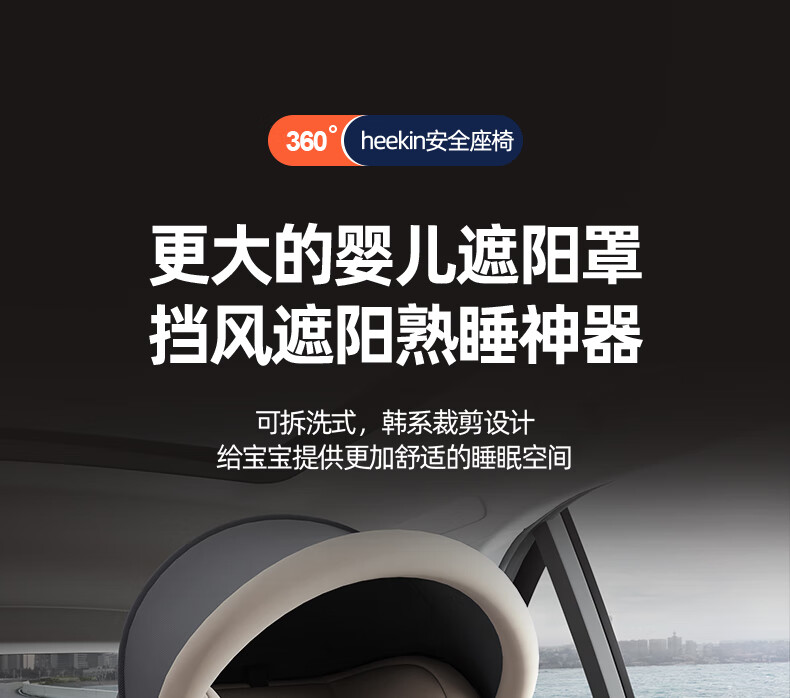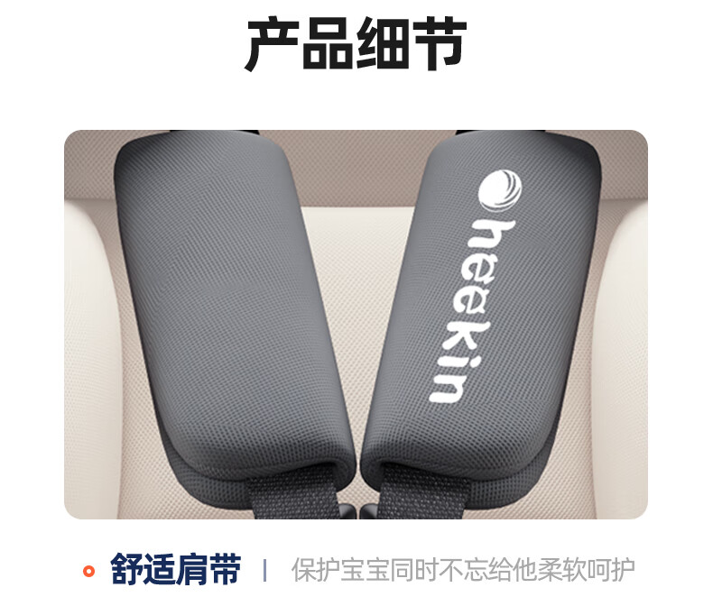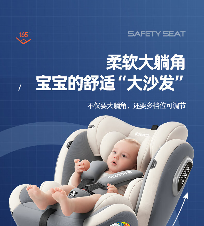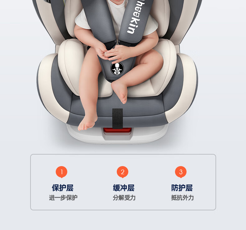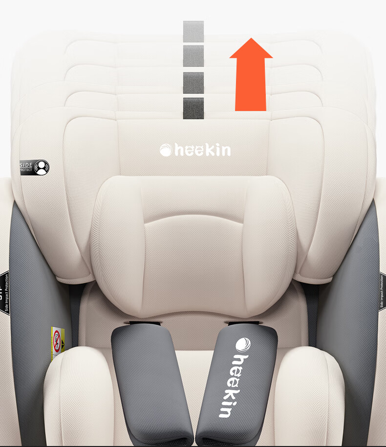 Heekin德国 儿童安全座椅汽车用0-4-12岁婴儿宝宝360度旋转ISOFIX硬接口 尊享灰(遮阳棚+上拉带+侧保护)