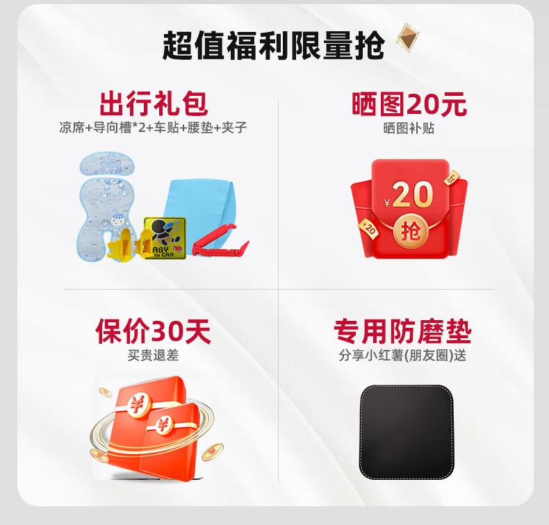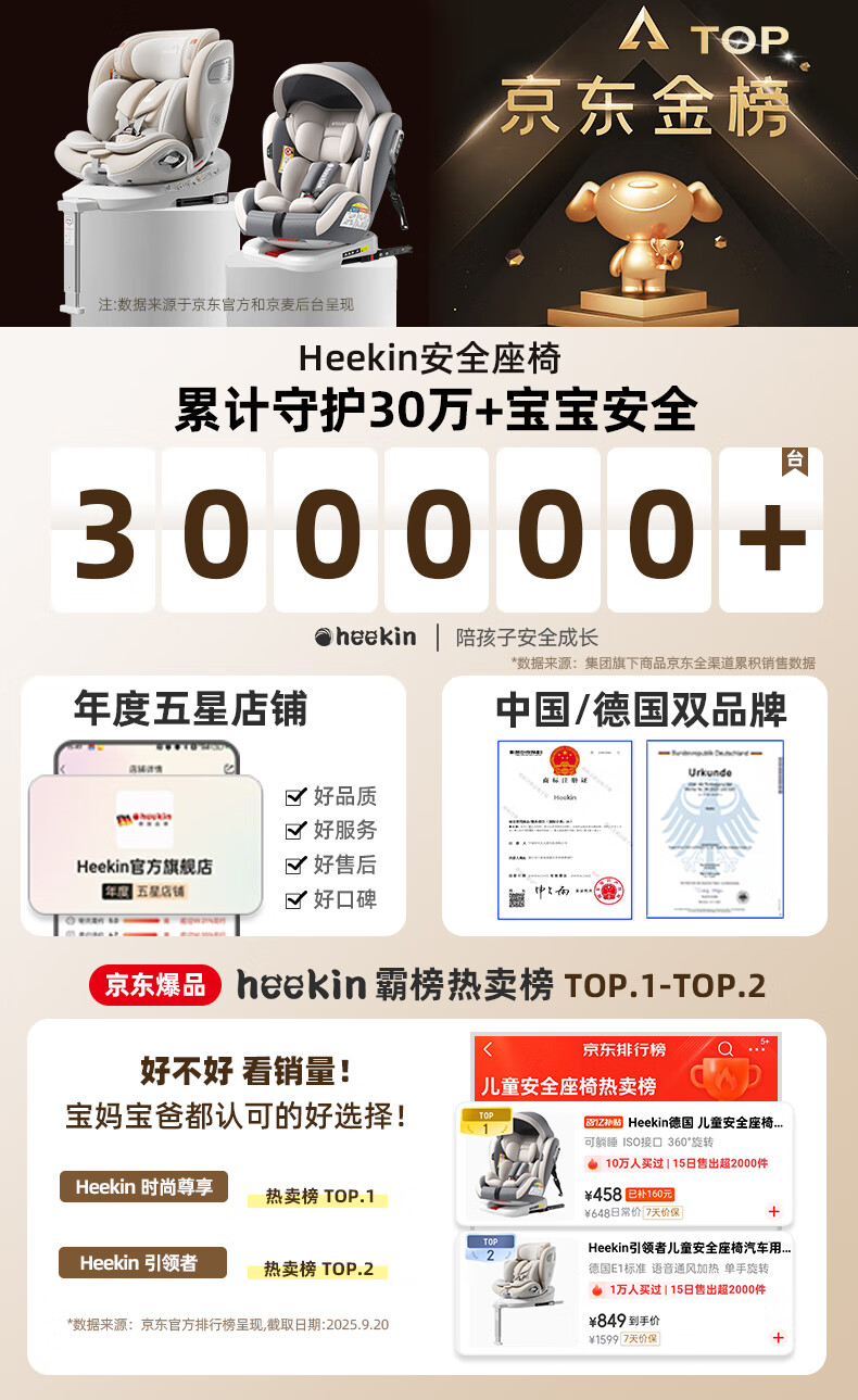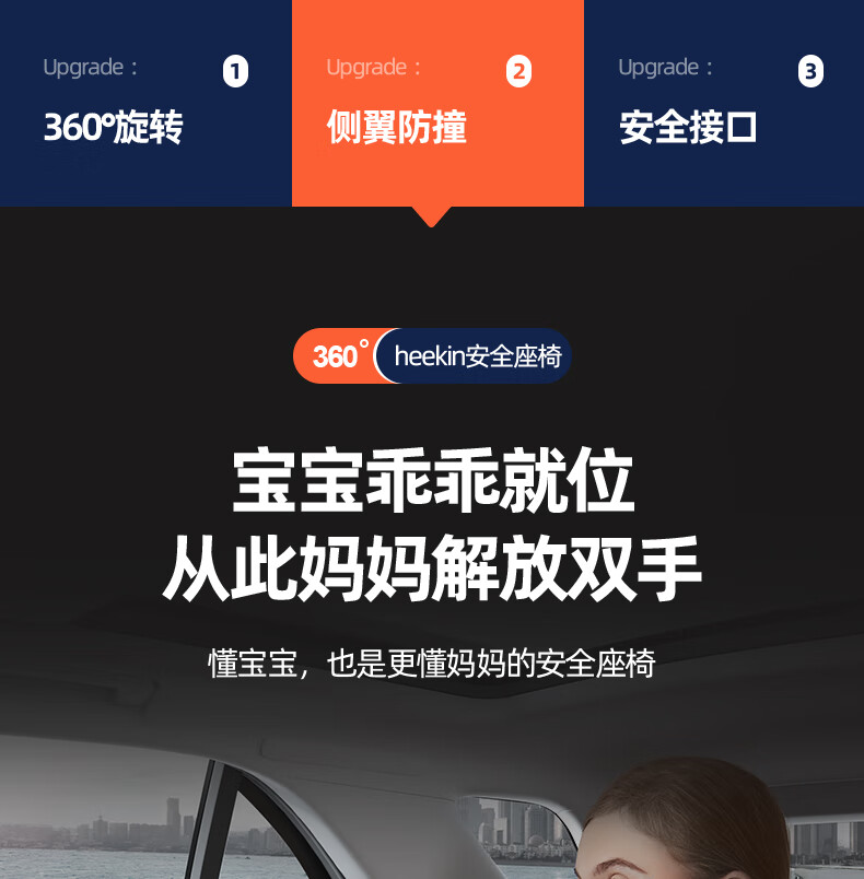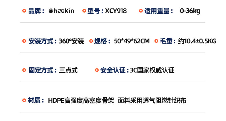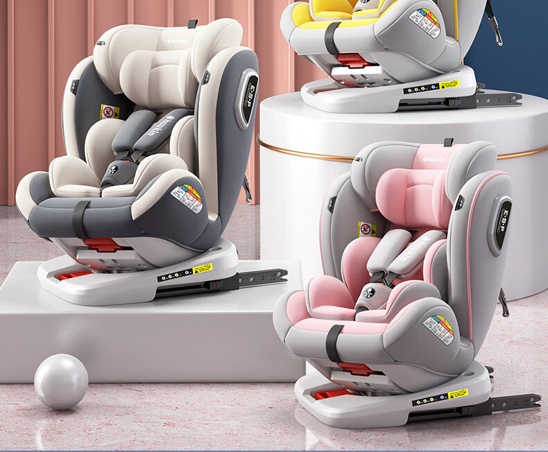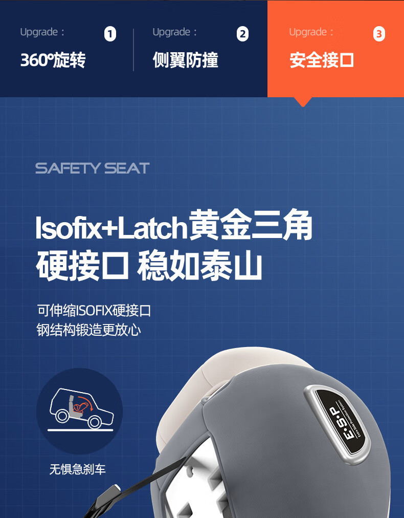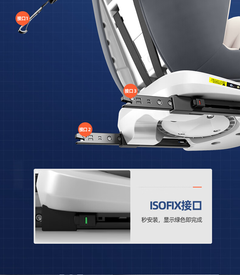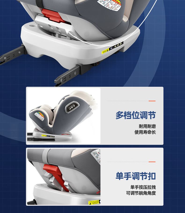 Heekin德国 儿童安全座椅汽车用0-4-12岁婴儿宝宝360度旋转ISOFIX硬接口 尊享灰(遮阳棚+上拉带+侧保护)