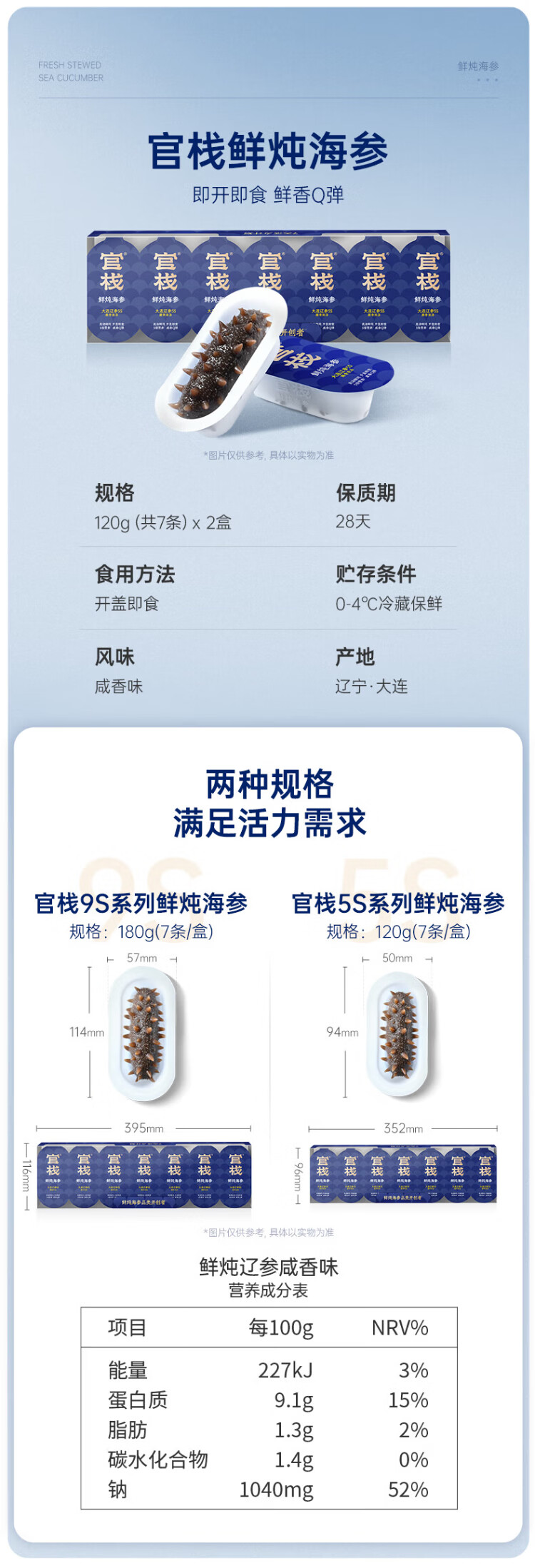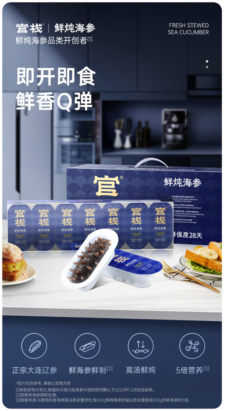 Guanzhan Fresh Stewed Sea Cucumber Dalian Liao Cucumber Nutritional supplements for parents and elders Fresh supplement gift box Fresh stewed sea cucumber 480g 5S monthly package
