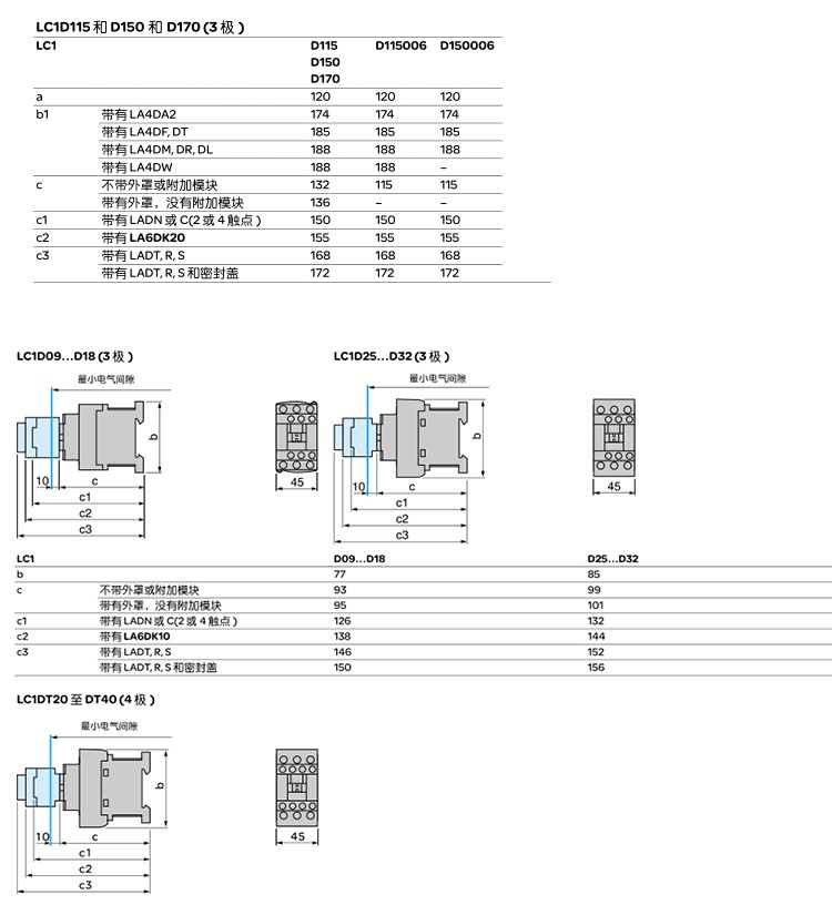 Contacteur AC Schneider série LC1D contacteur triphasé à courant élevé LC1D15000Q7C 150A 380V