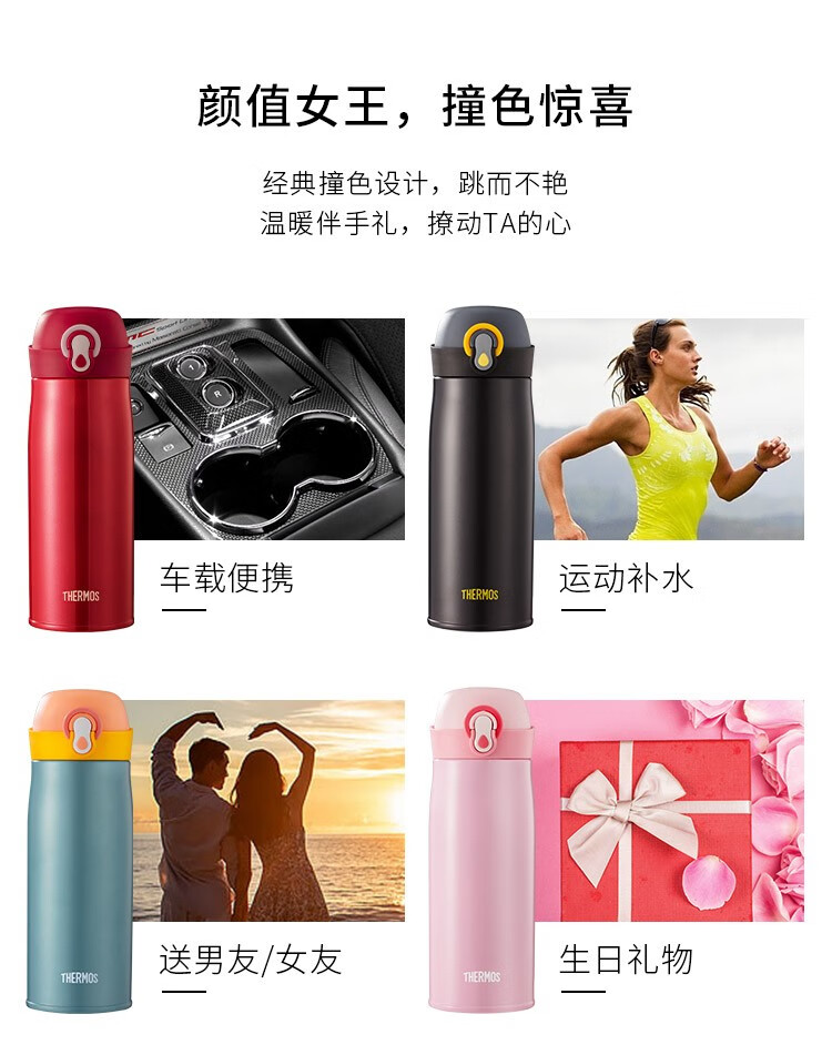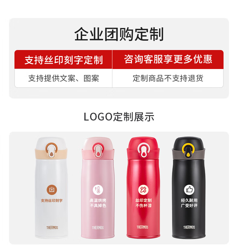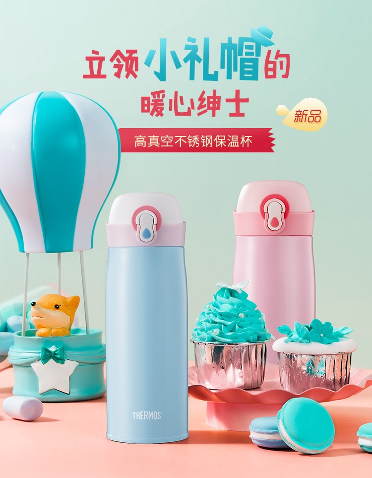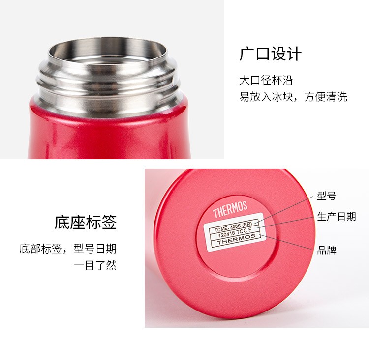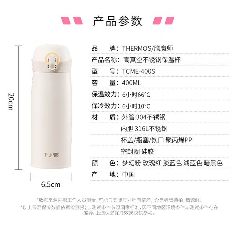THERMOS thermos water cup high vacuum stainless steel student cup birthday gift group purchase customized TCME-400S crescent white 400ml