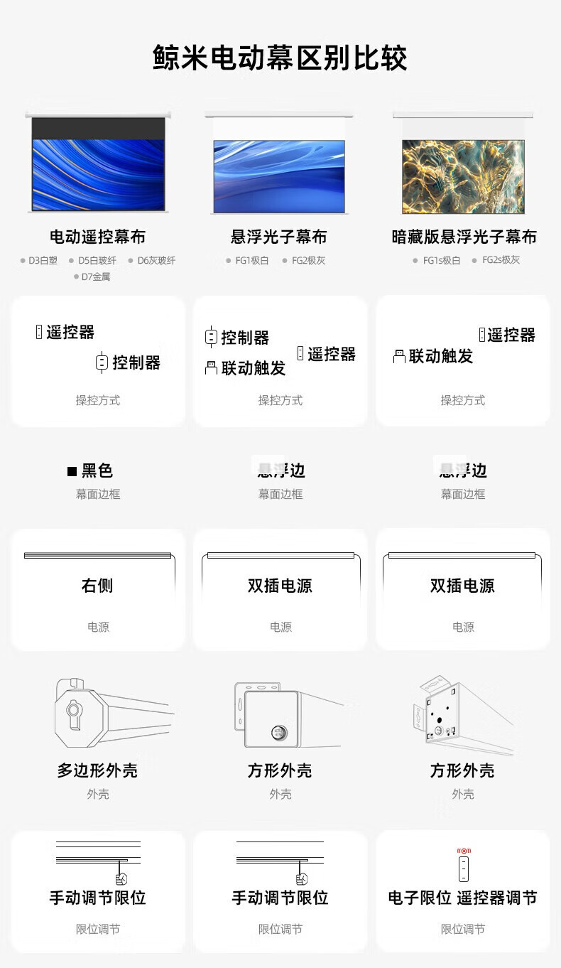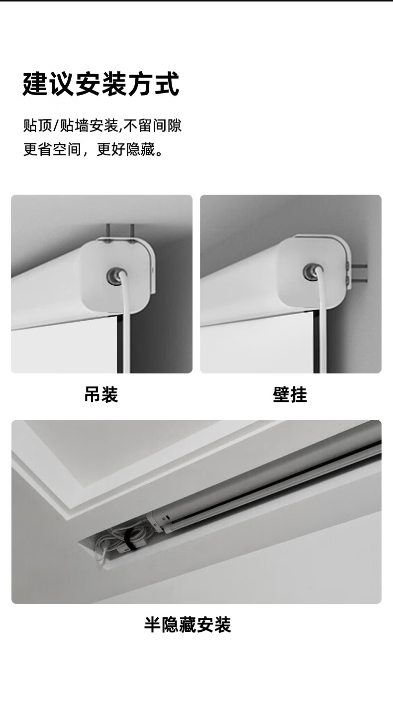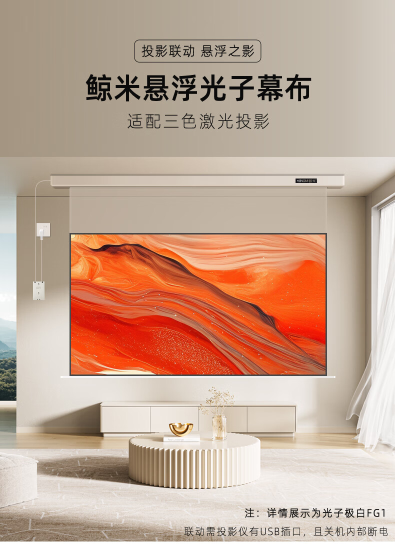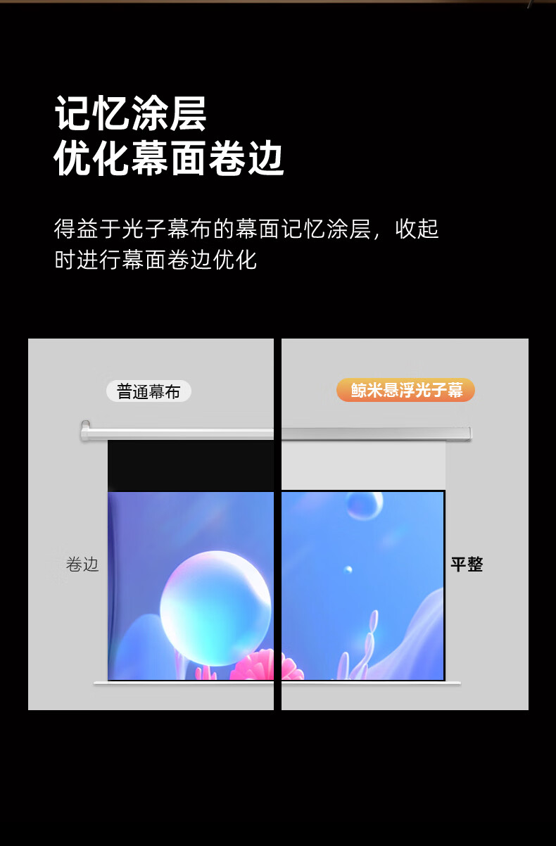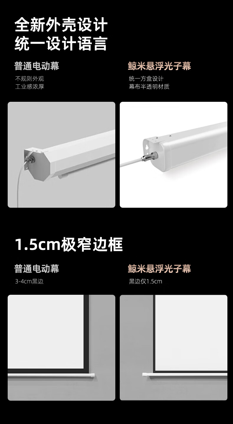 鲸米(JINGMI)投影幕布电动遥控自动升降高清4K家用投影配件玻纤光子幕布客厅卧室壁挂吊顶隐藏投影仪屏幕 【高清4K白玻纤D5-黑边款丨投影百搭丨可侧投】 84英寸16:9(包安装)
